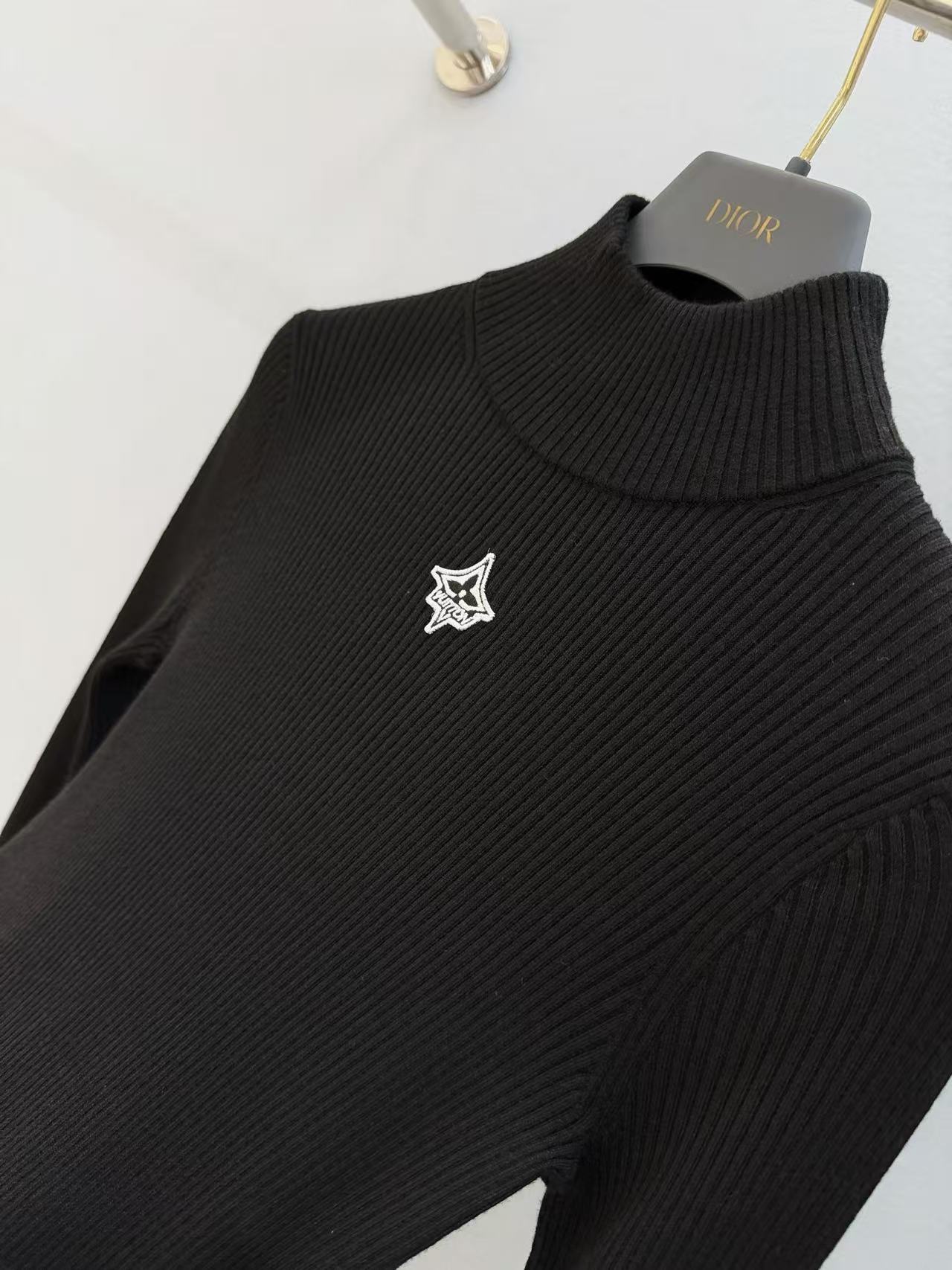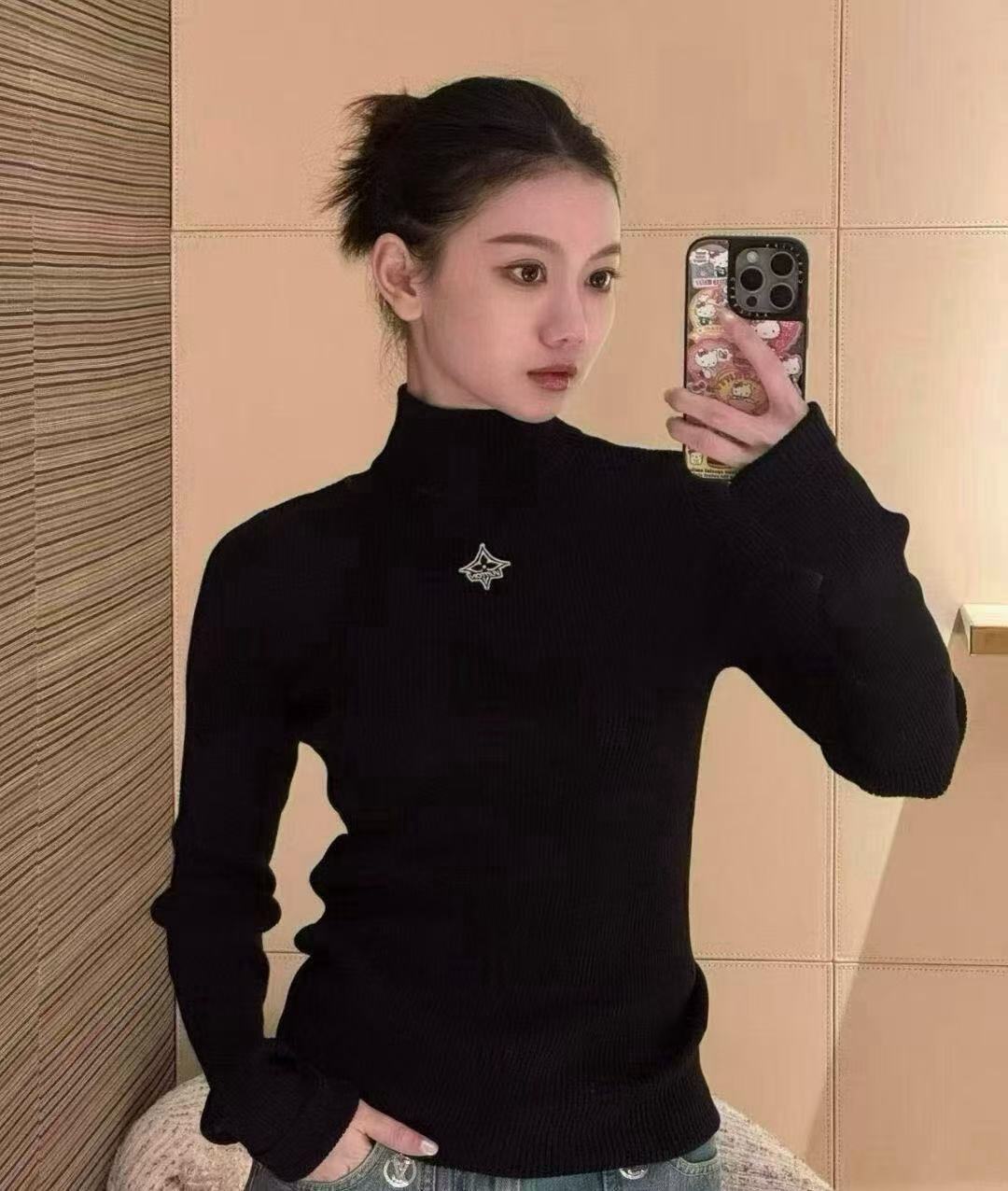 2025早秋 L家 標誌刺繡黑高領針織衫