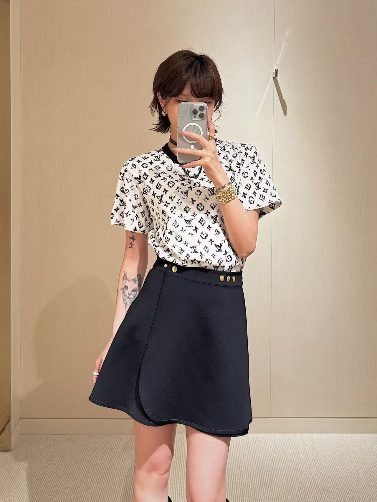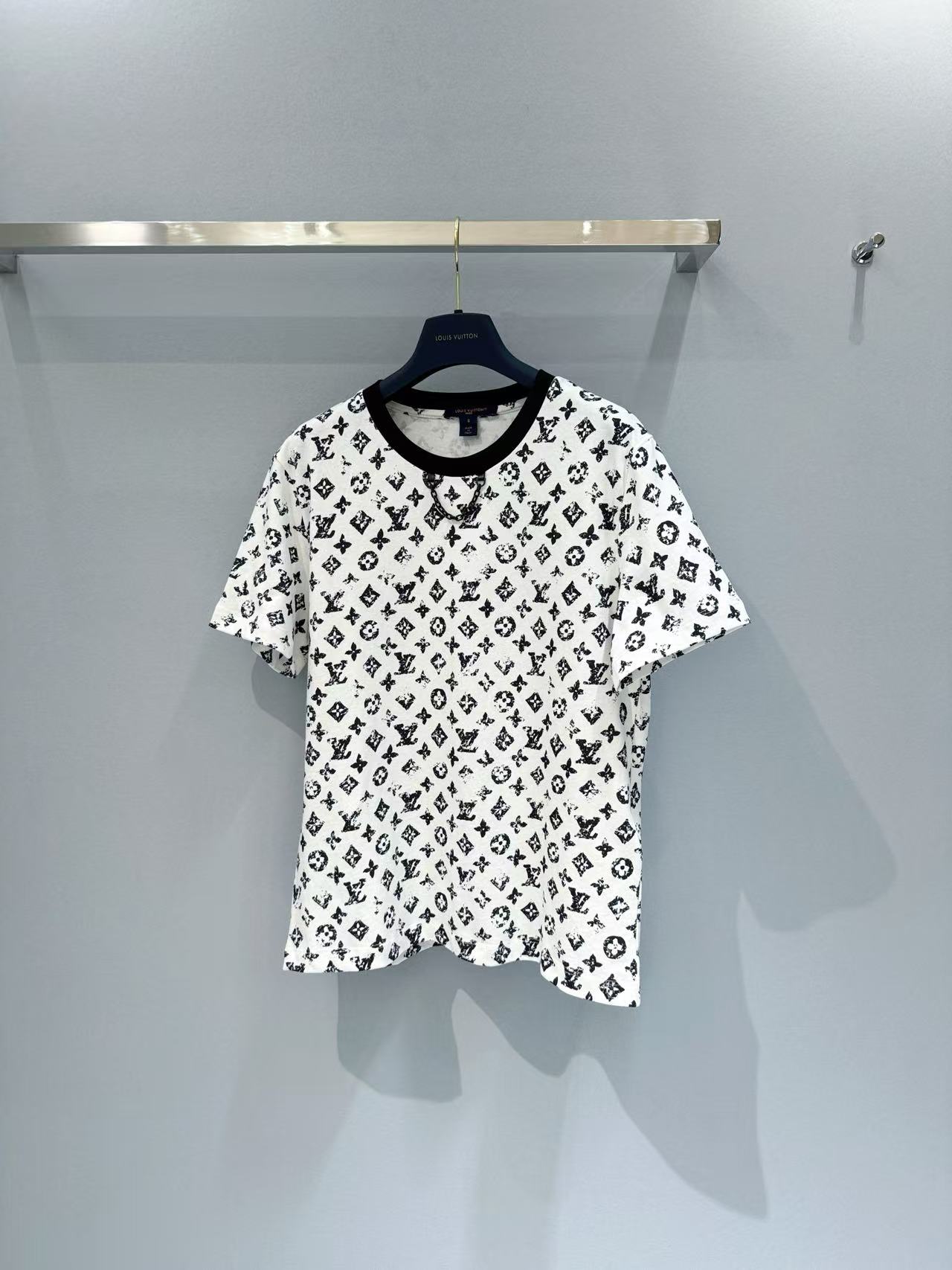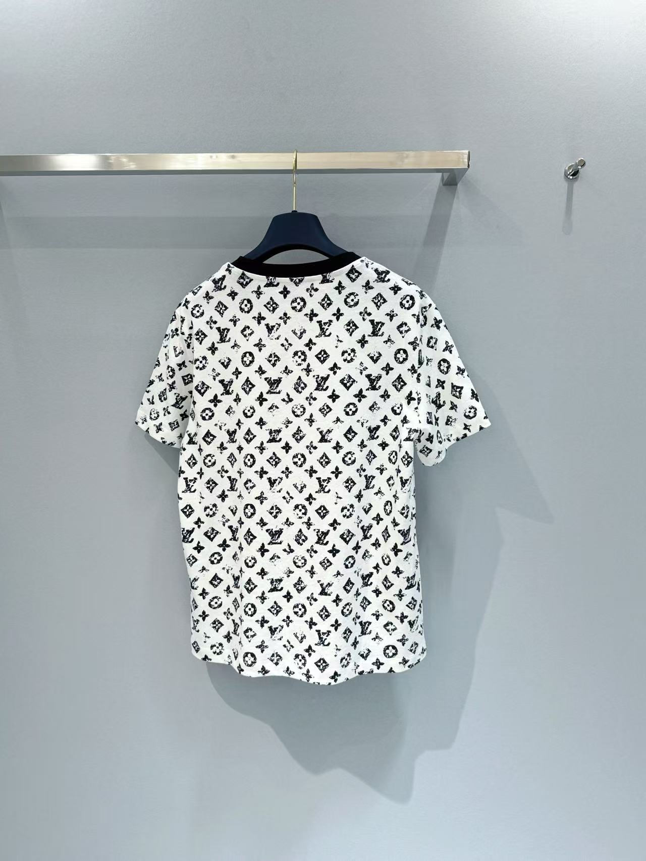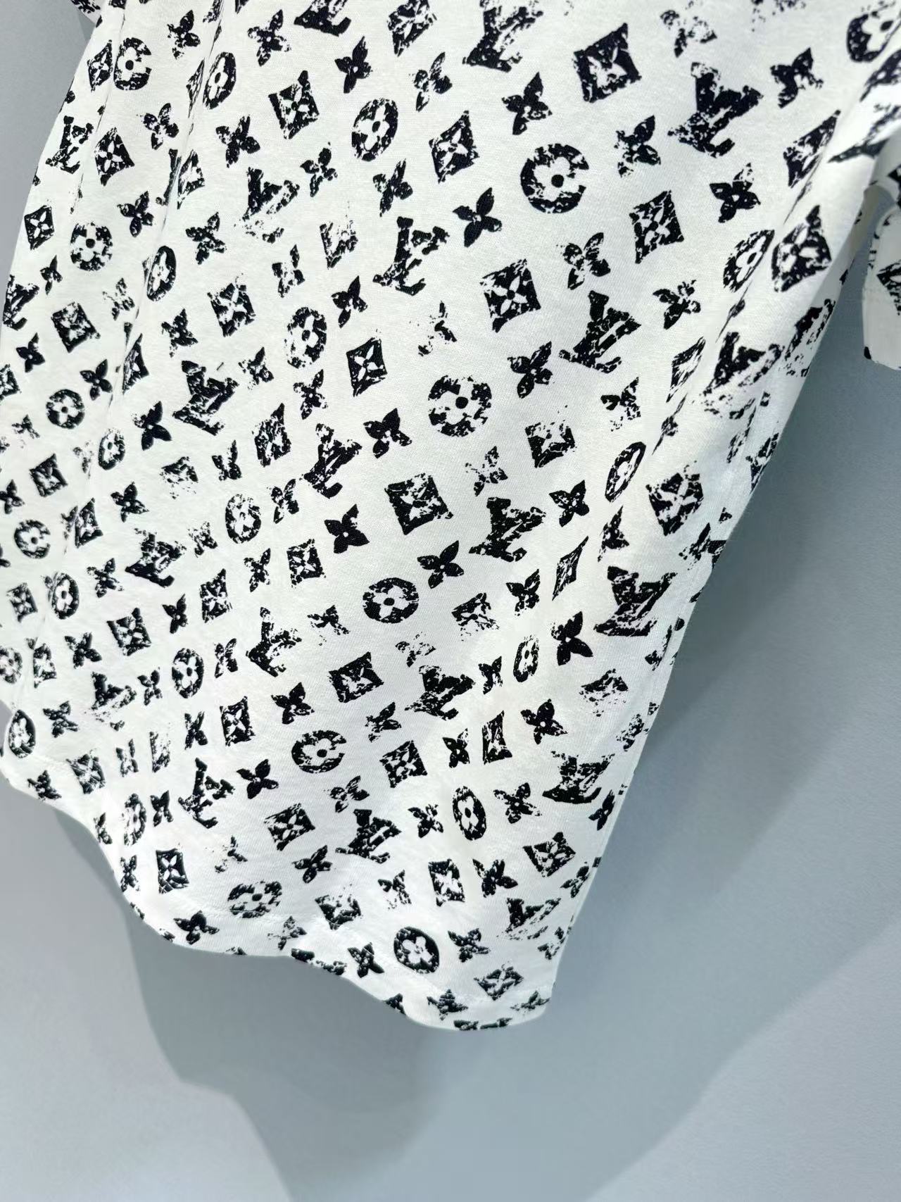 經典老花印花搭配滿版四葉草元素徽標,加入做舊磨花效果,讓整體呈現自然復古感,低調卻有型。領口素色包邊設計,加上字母鏈條細節點綴,讓簡單版型瞬間變得更有層次與質感。