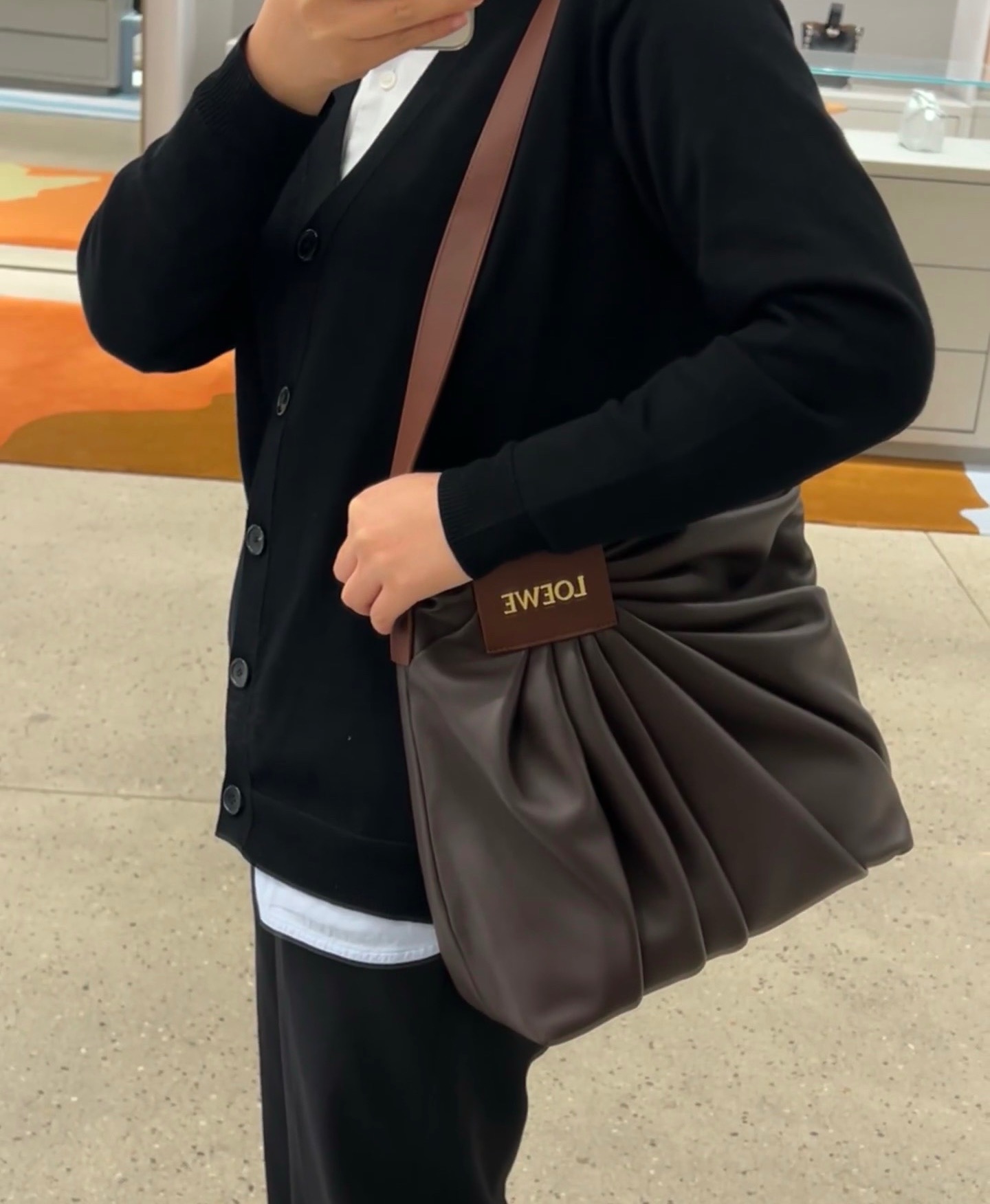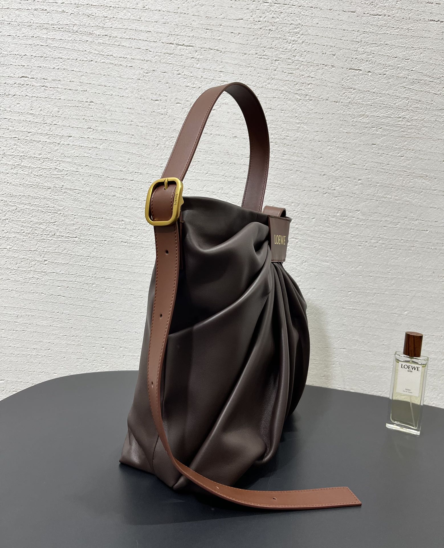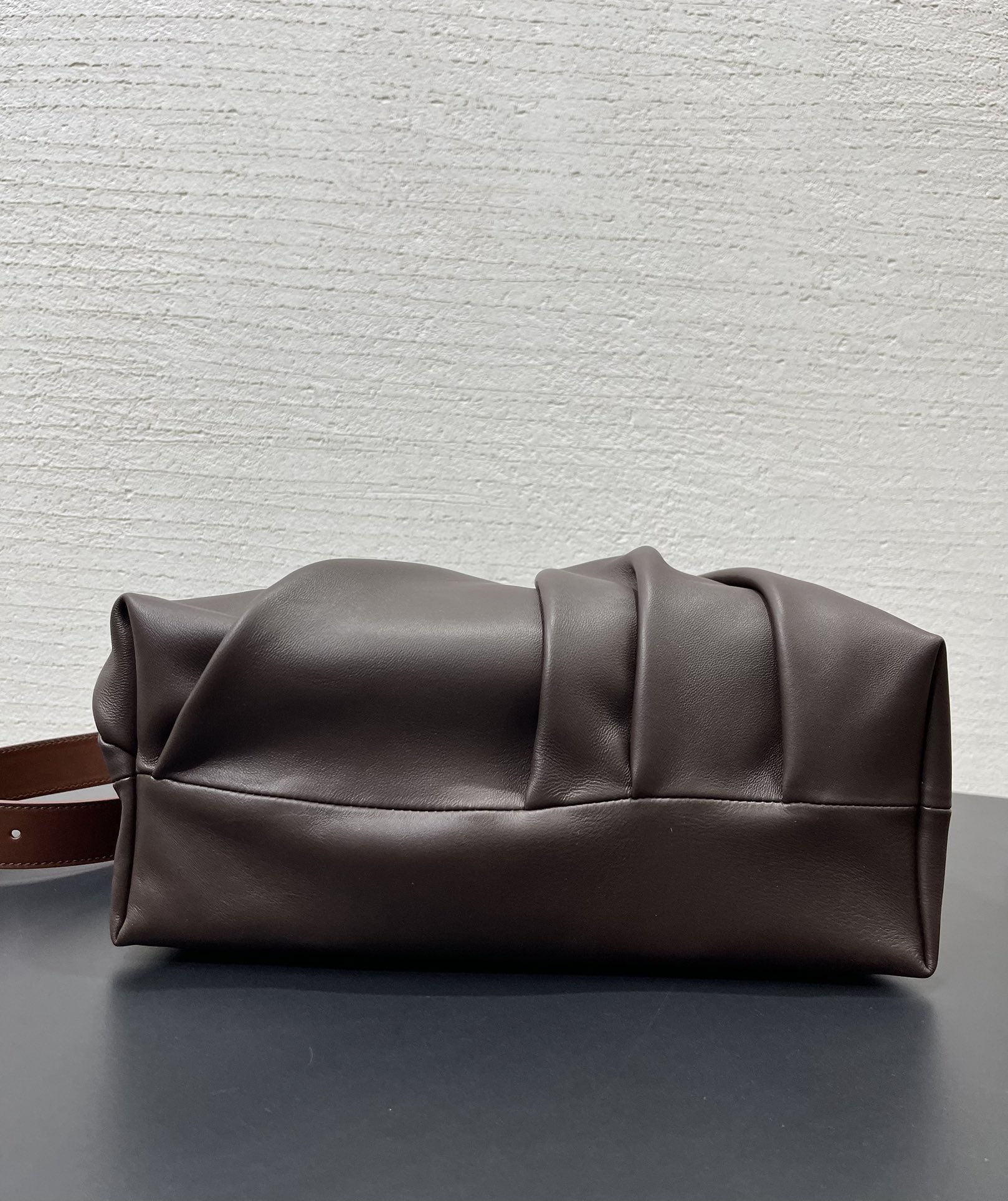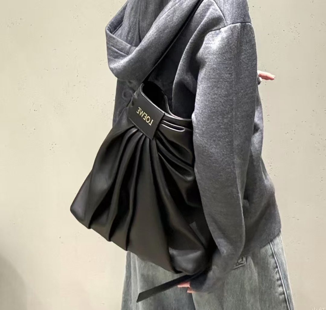 整體包型自然垂墜、不刻意卻非常有態度,搭配細緻的褶皺輪廓與低調質感的 Logo 皮牌,呈現出一種「不張揚卻很懂穿」的時髦氛圍。