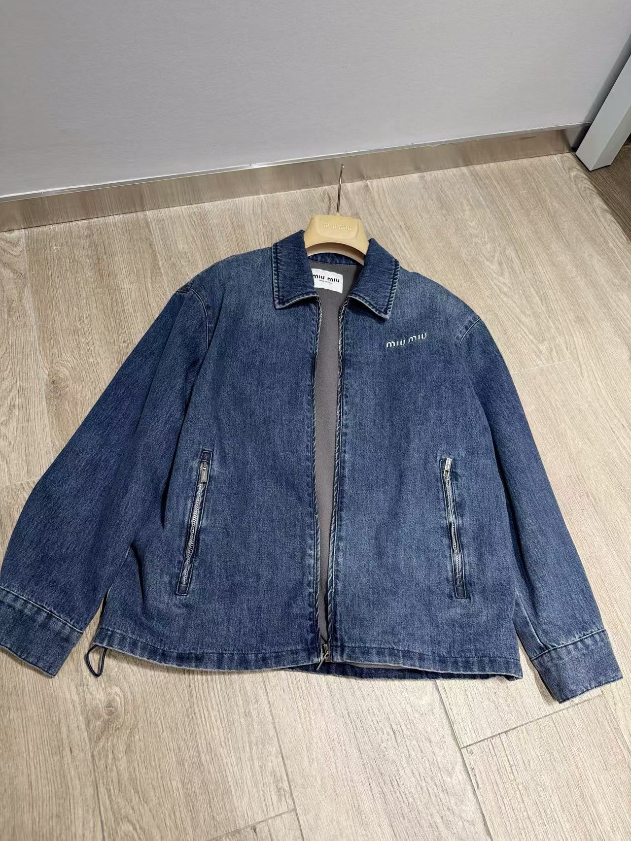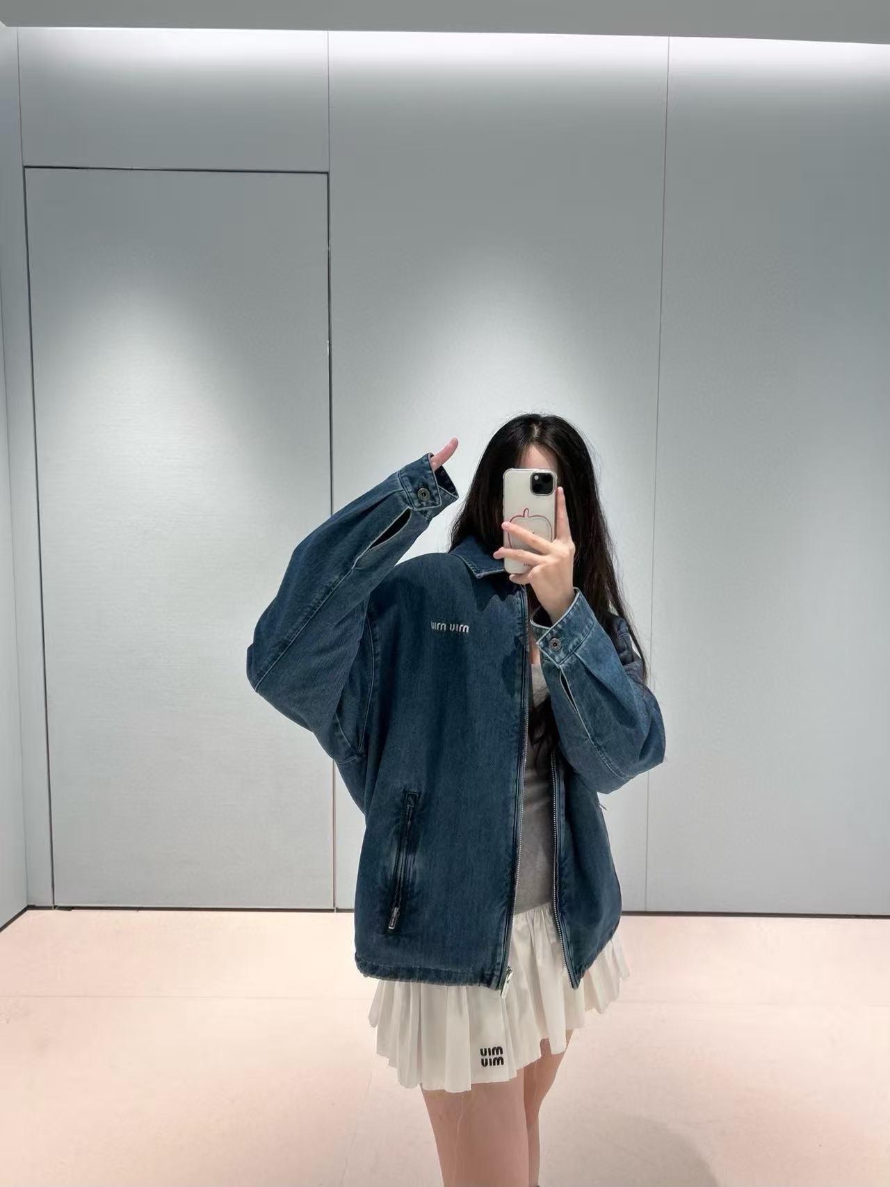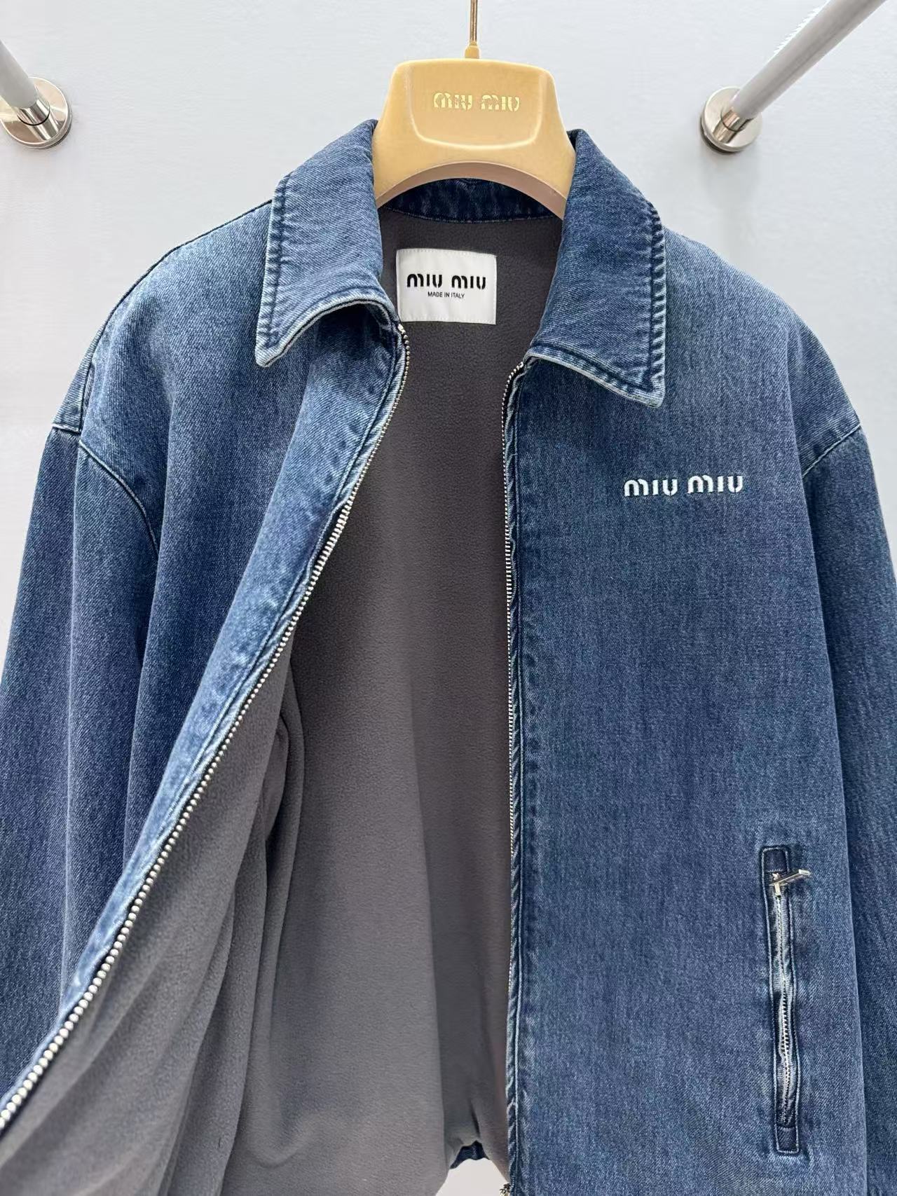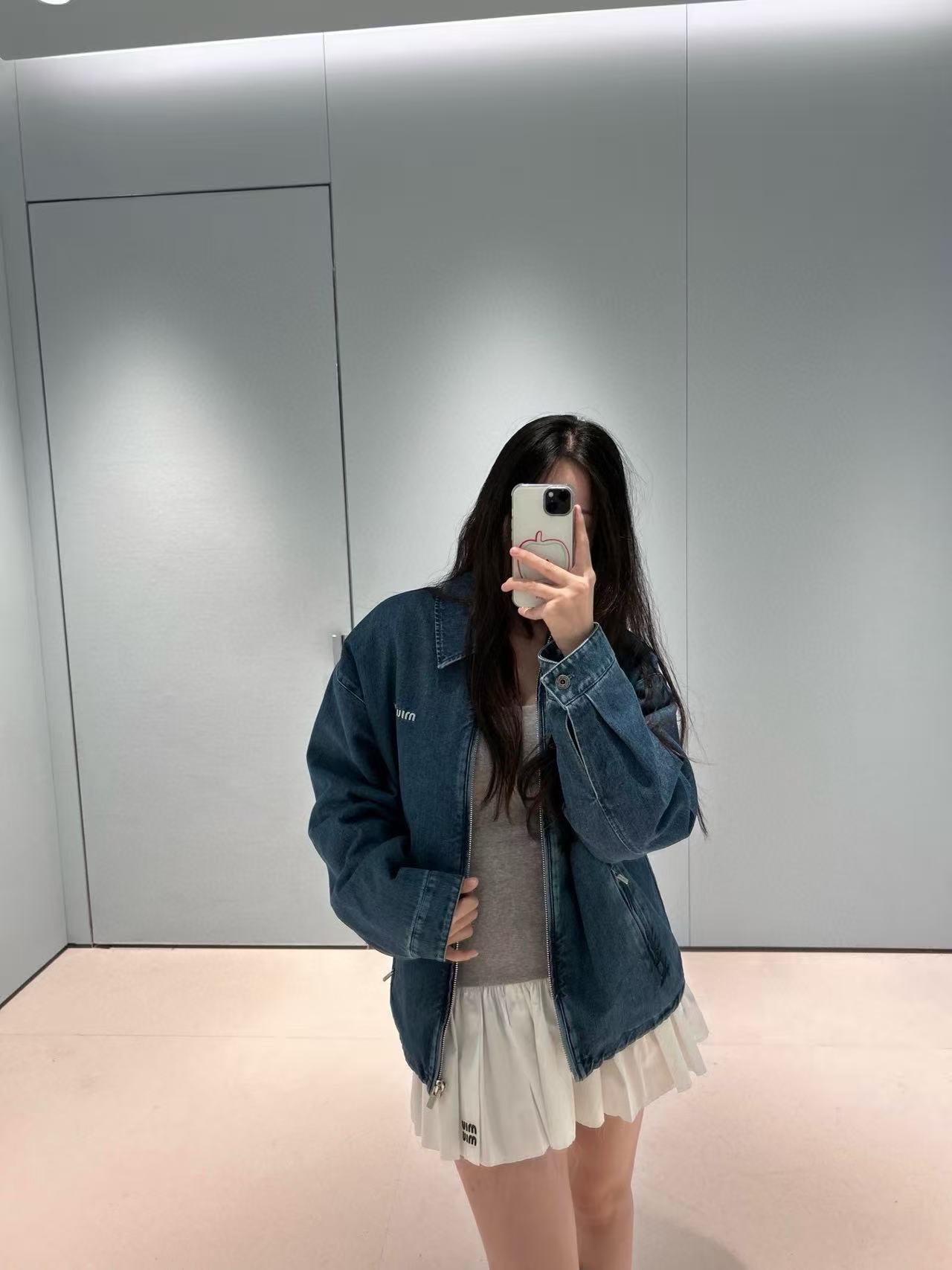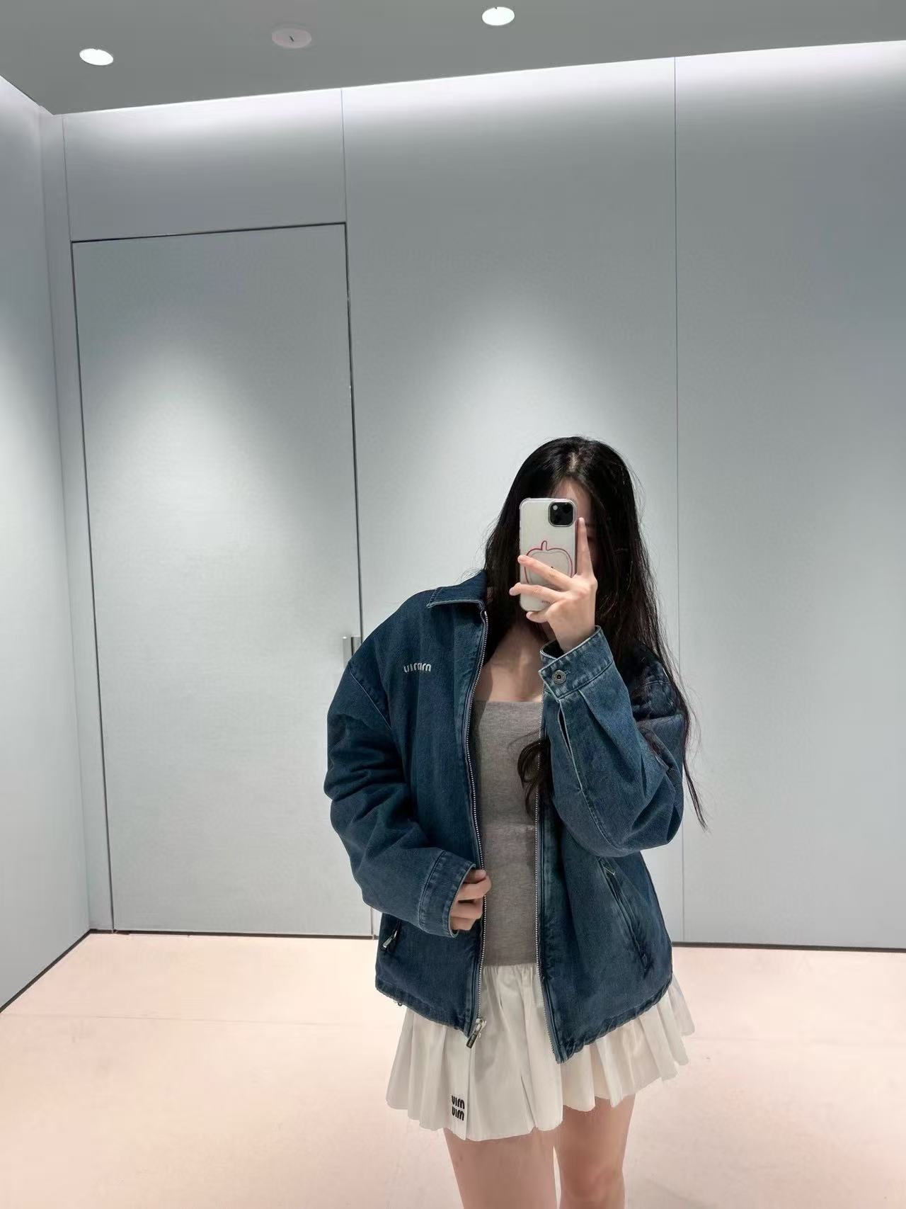 2025早秋 MIU家 微標刺繡牛仔棉服外套