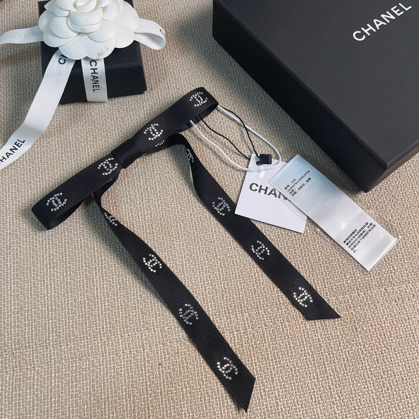2025秋冬新品 C家 絲帶多鑽C蝴蝶結髮夾
