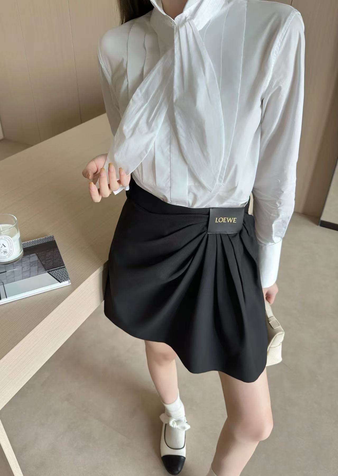 2025早春新品 LEW家 錯位收褶斜紋棉半身裙