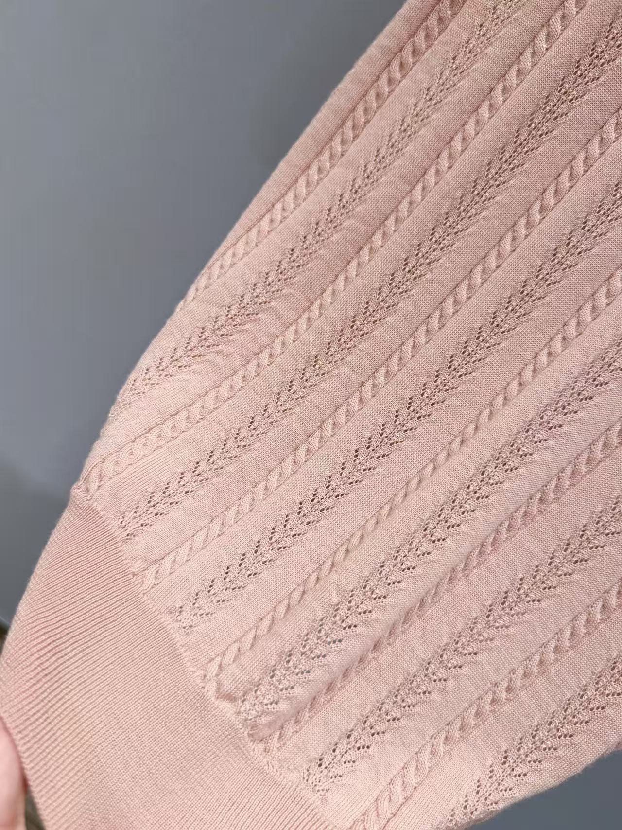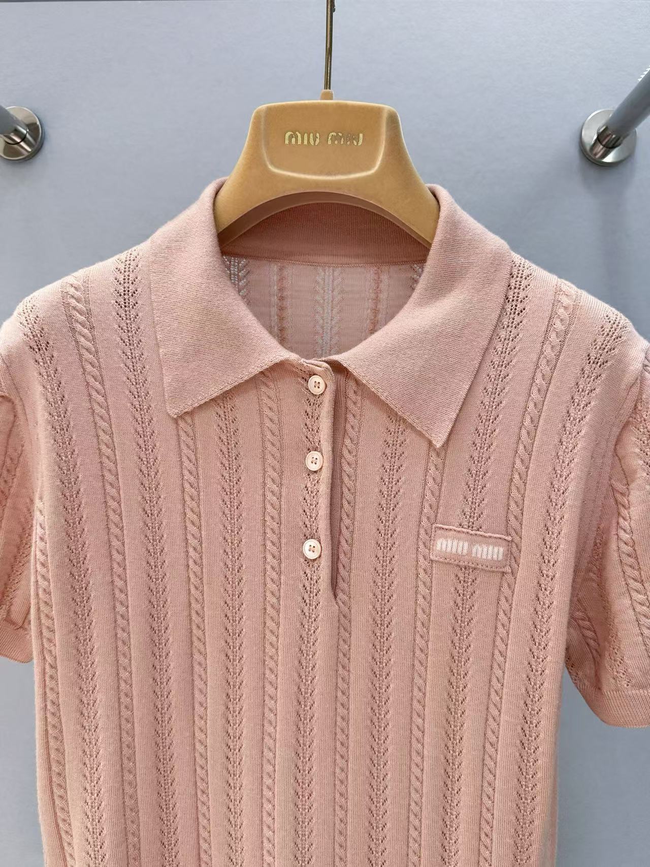 2025早秋 MIU家 粉色翻領鏤空短袖