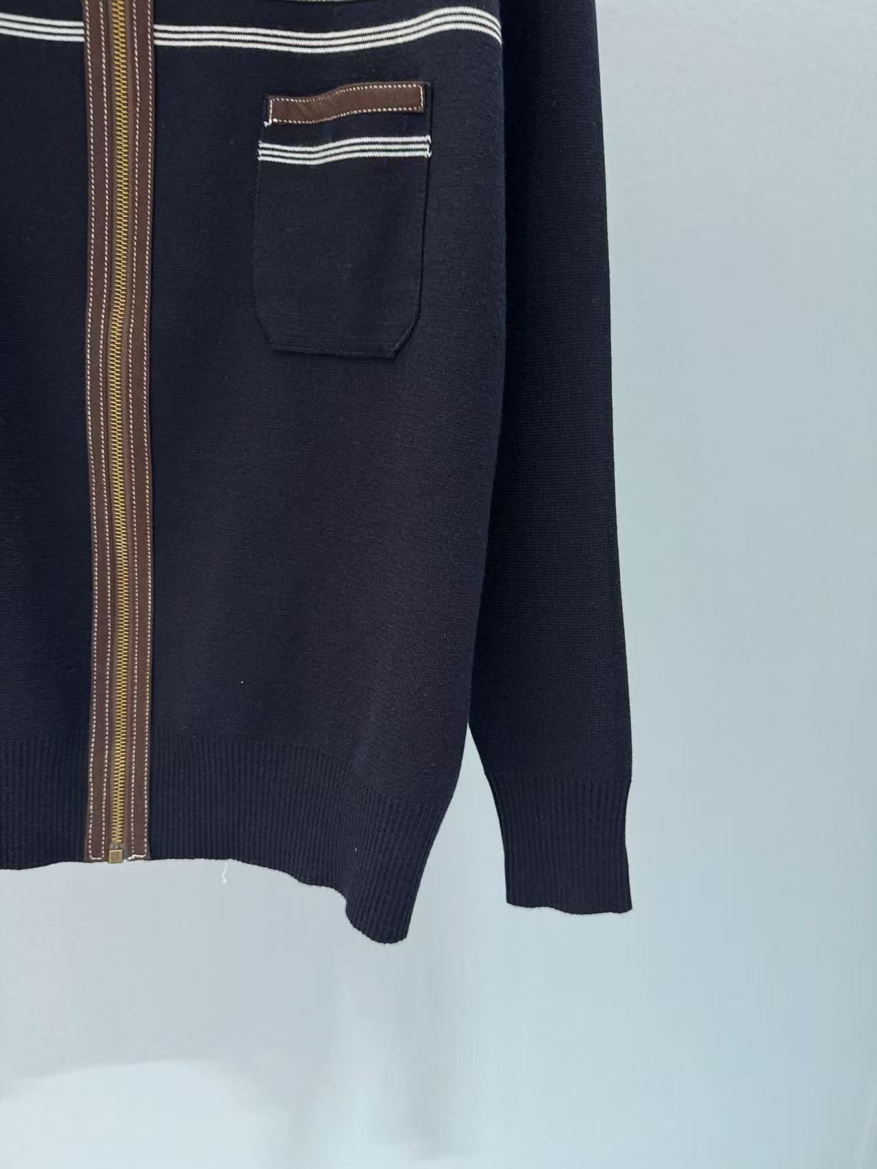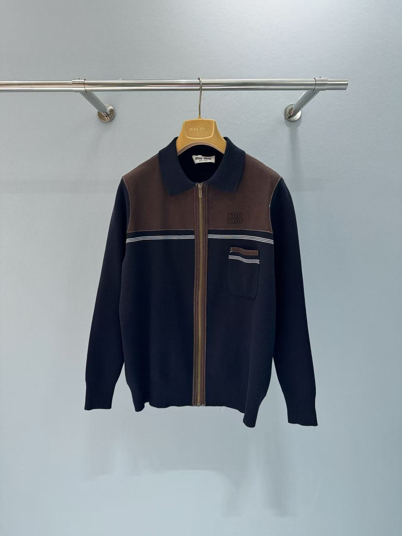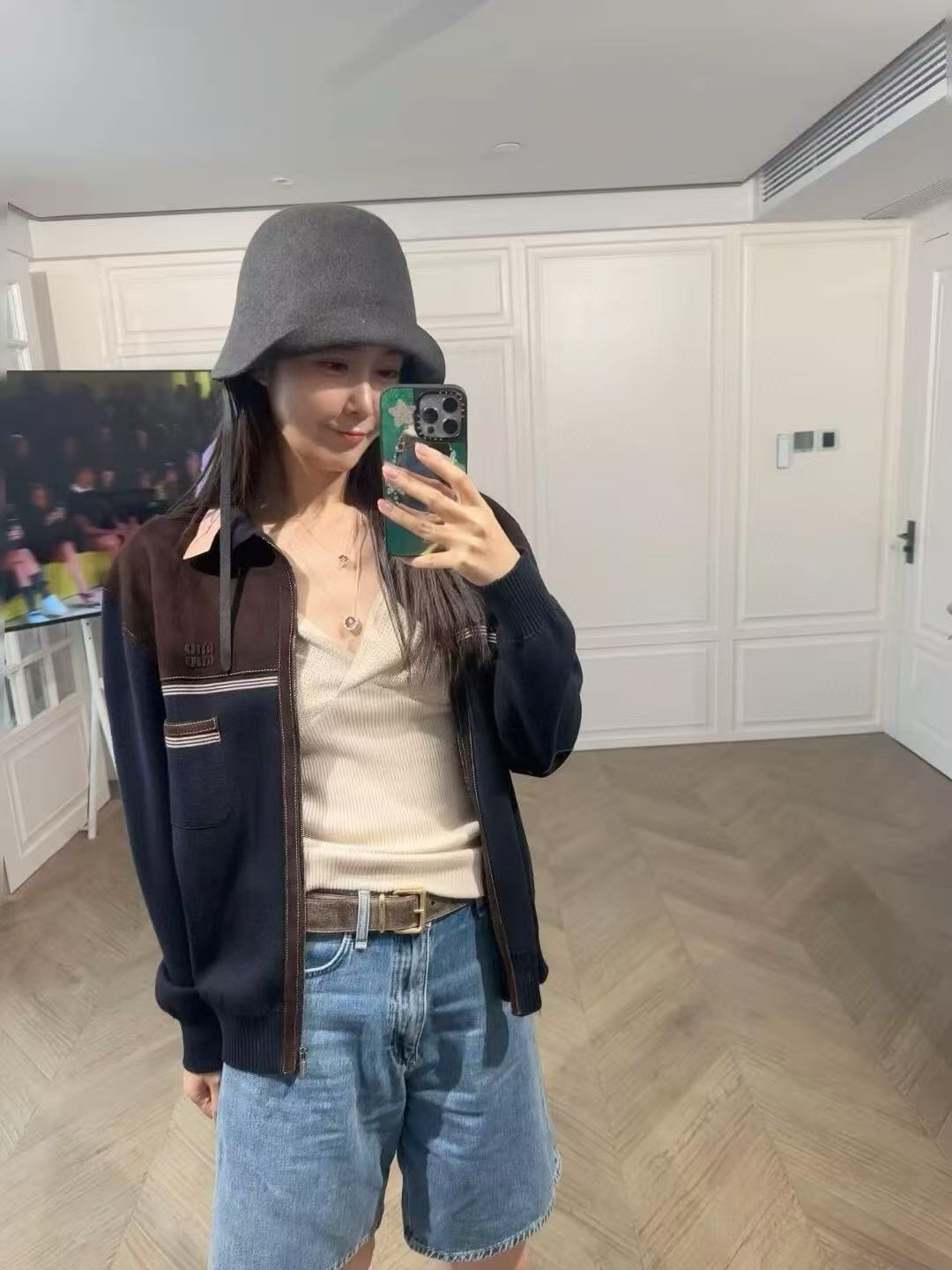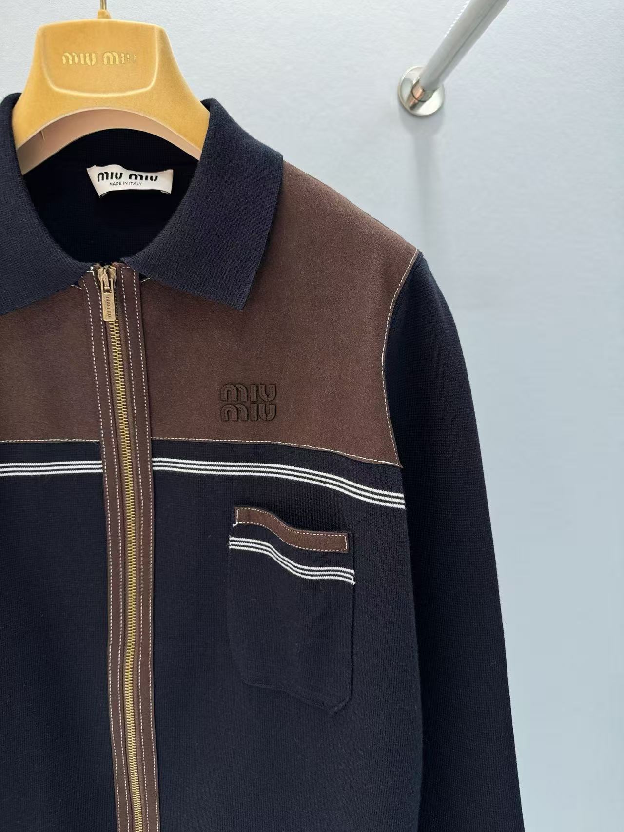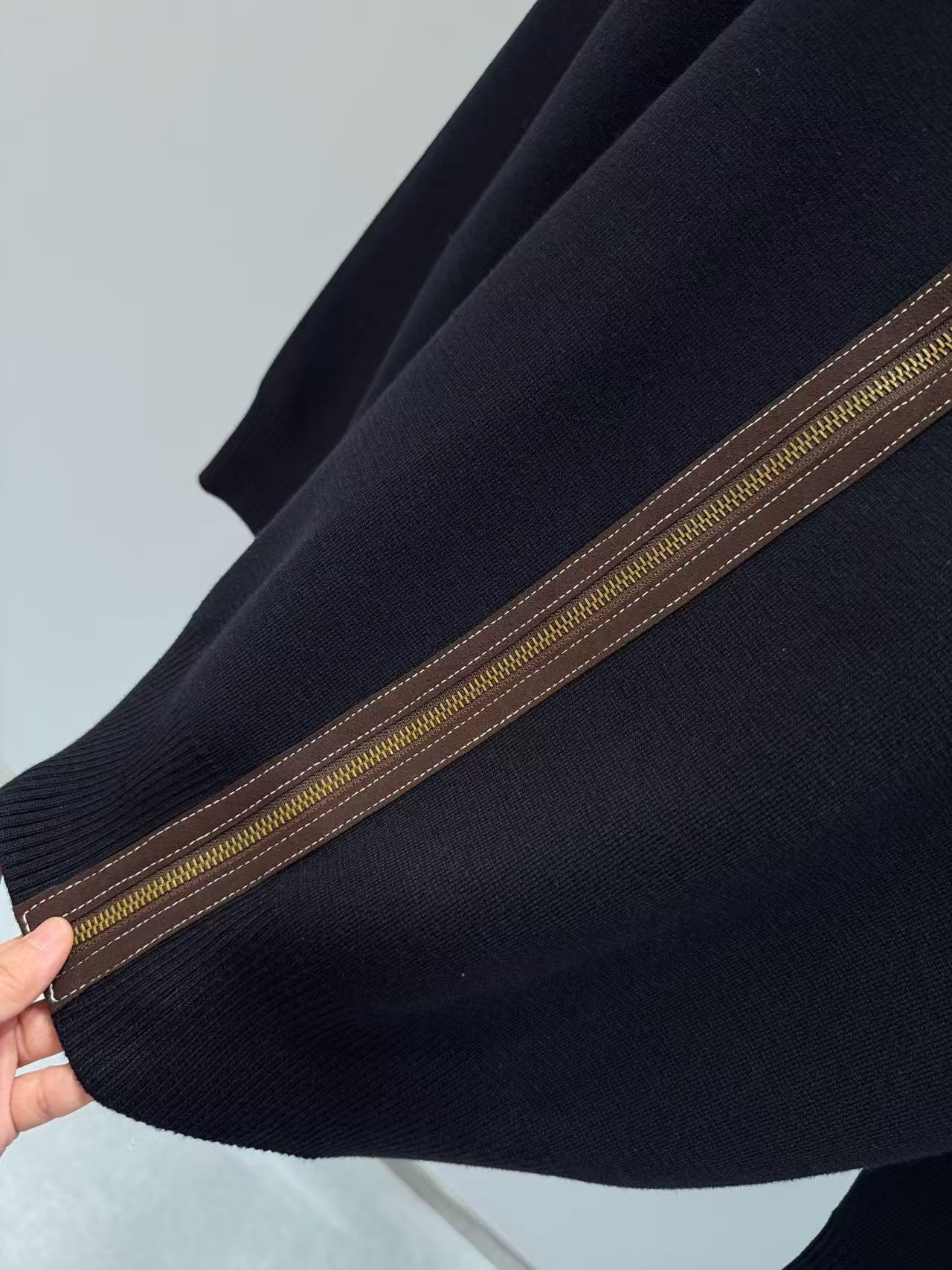 2025早秋 Miu家 羊毛拼麂皮拉鍊針織開衫