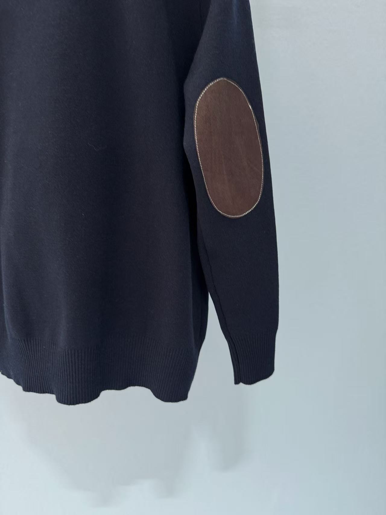 早秋想要兼顧實穿與質感,這件針織開衫一定要收!採用高比例羊毛紗線編織,手感柔軟又保暖,袖子小臂處拼接麂皮設計,立刻把整體質感拉高一個 level,低調卻非常有腔調。