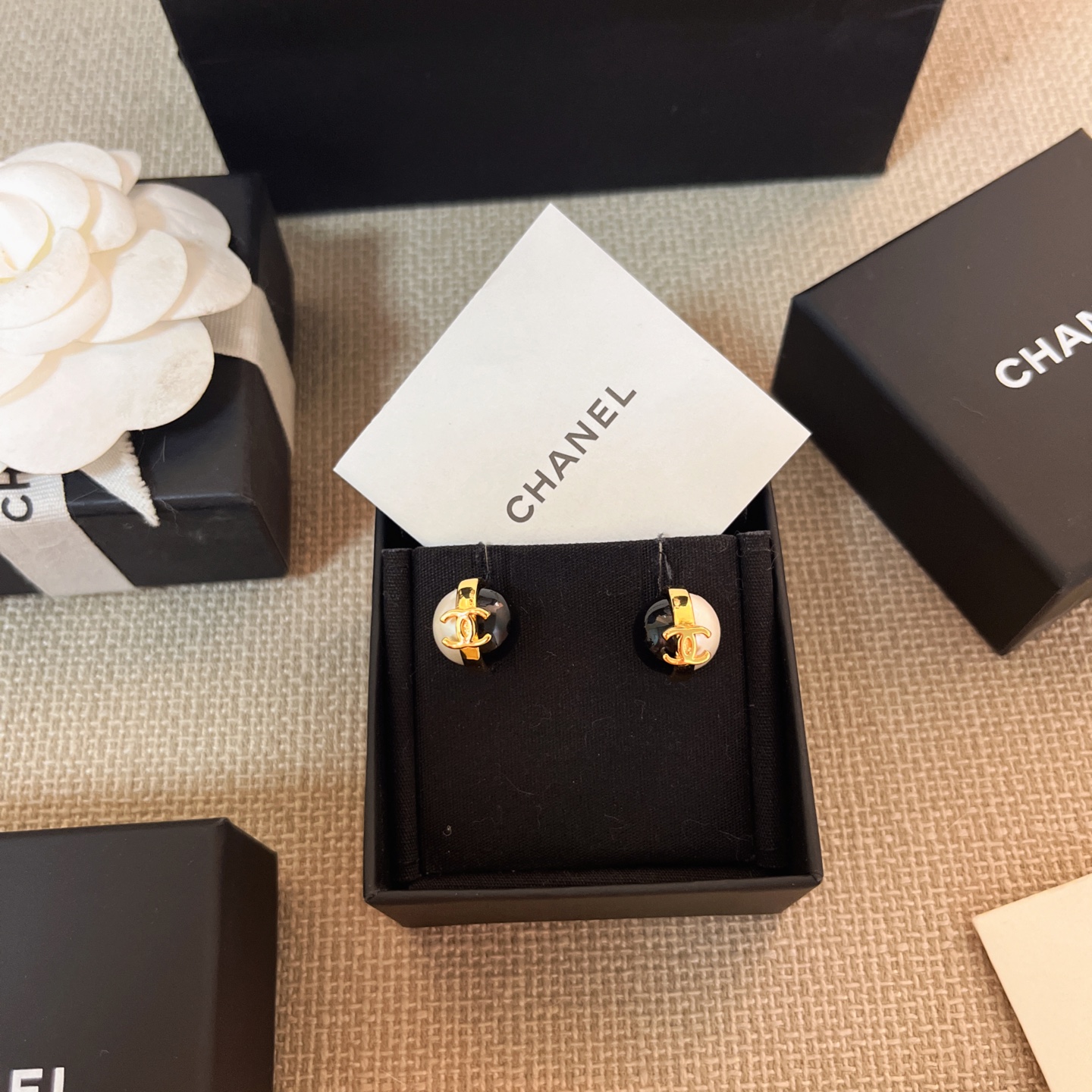 黑白拼接設計搭配金色細節,營造出優雅又帶點復古感的視覺效果。圓形輪廓柔和百搭,不挑臉型,也不容易退流行,是可以長久佩戴的經典款式。
