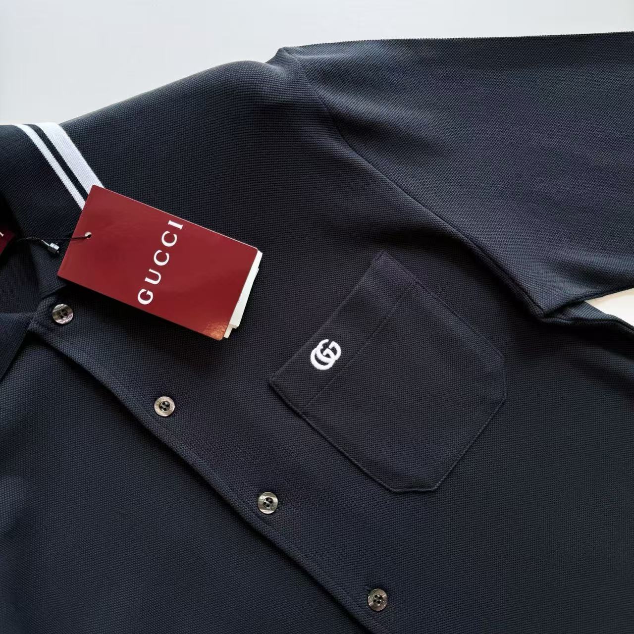 2025早秋新品 G家 口袋刺繡字母長袖polo衫
