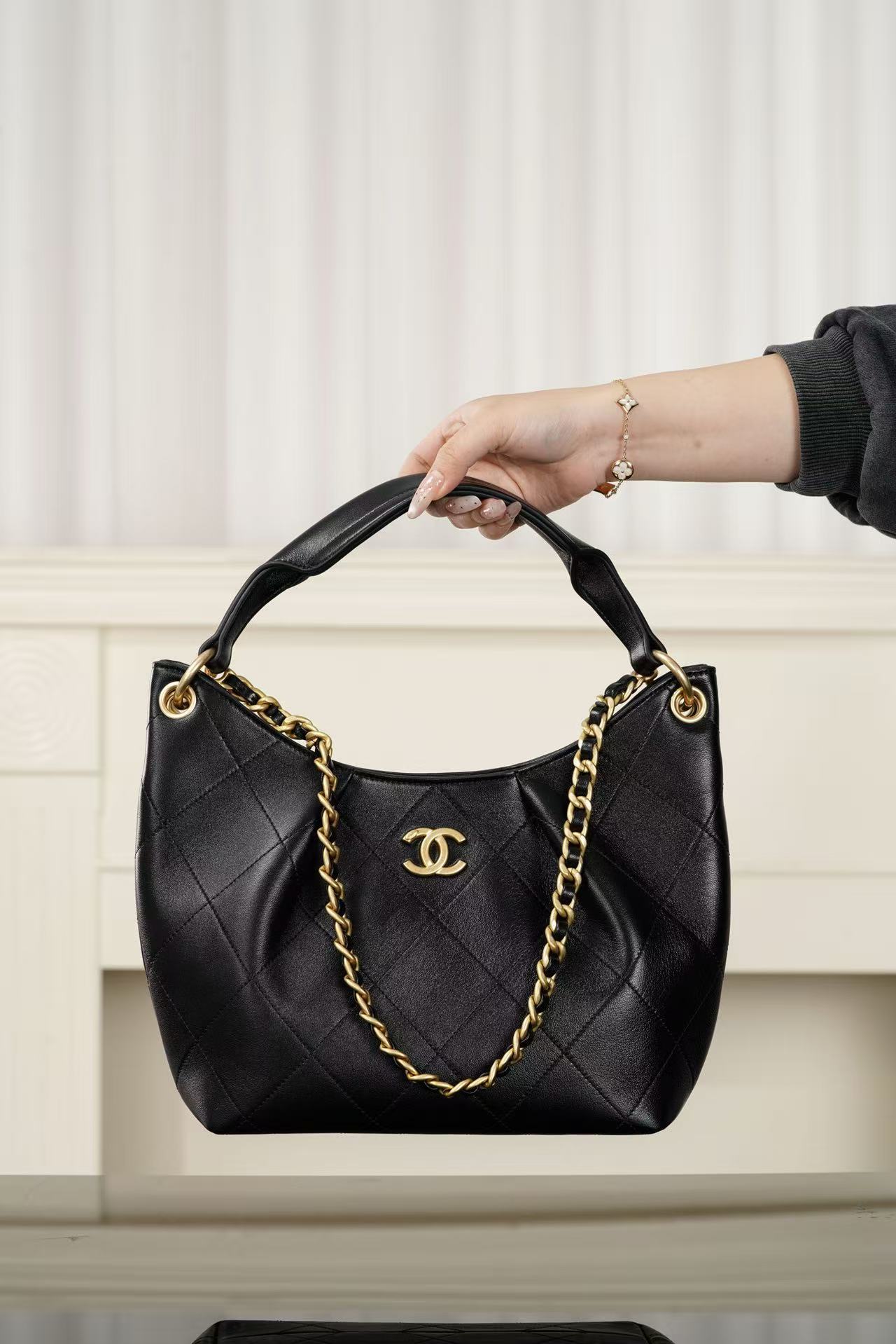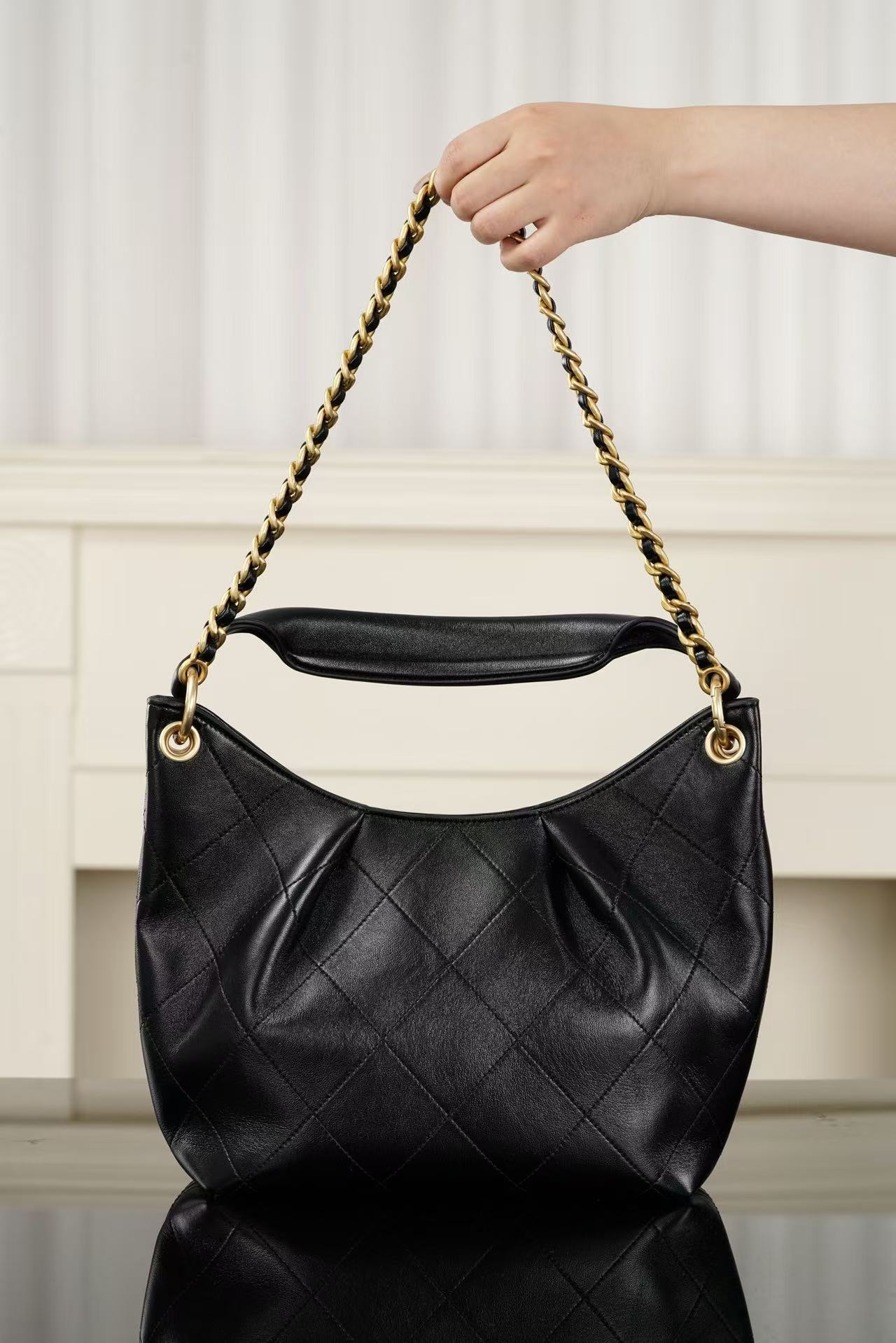 細膩的小羊皮材質 觸感軟糯如雲朵,結合黑金經典配色,展現出一種內斂且極致高級的輕奢質感,無論是配白 T 牛仔褲還是精緻套裝,都能輕鬆 get 那種不費力的法式時髦。