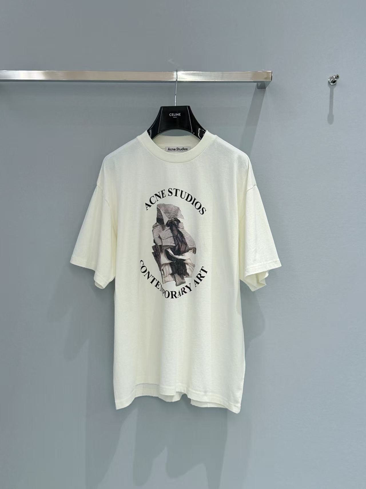 不會過於鬆垮顯得沒精神,卻能巧妙地修飾身形。落肩的設計讓整體線條更柔和,隨性塞進牛仔褲裡,就能穿出超模般的鬆弛感。