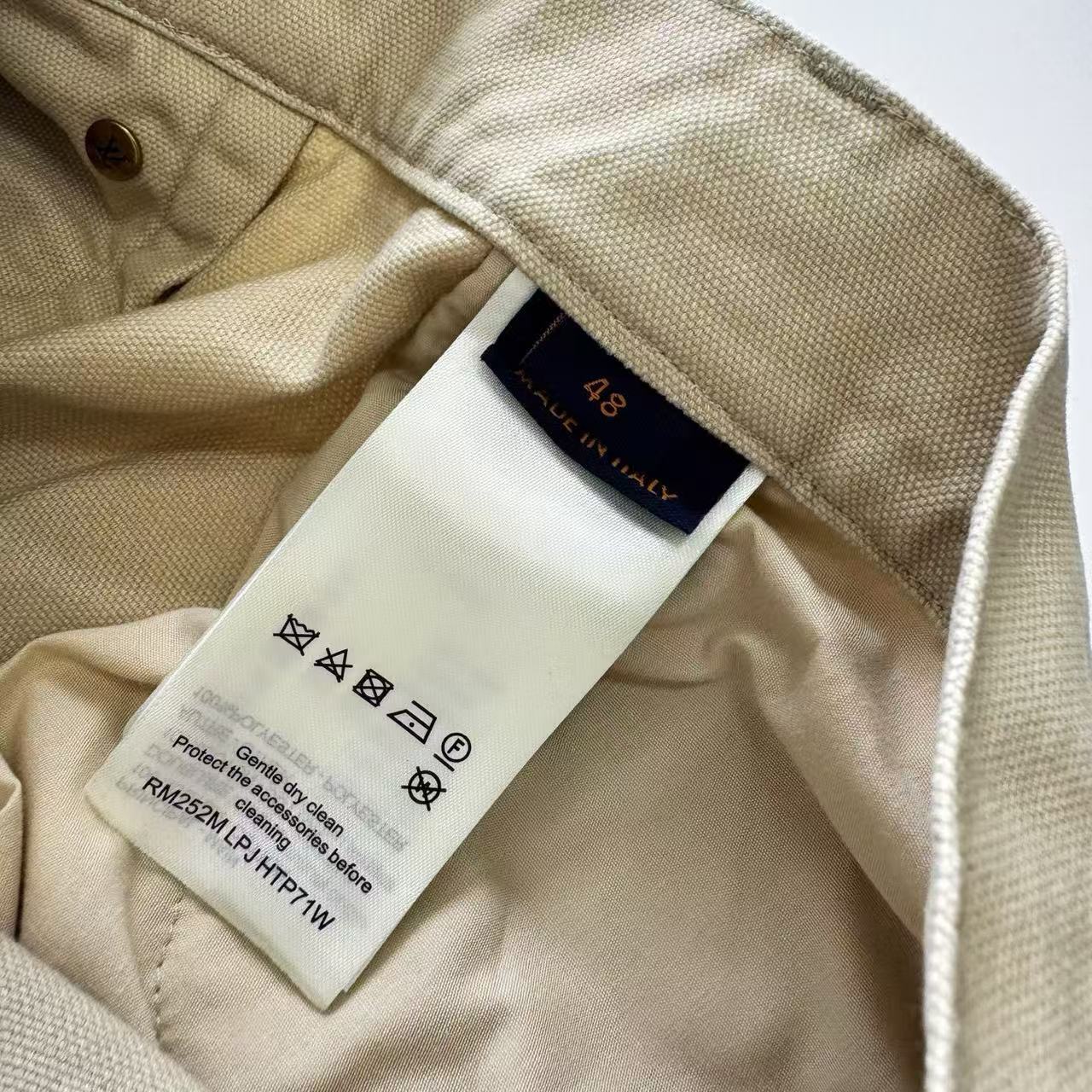 這件長褲最讓我驚豔的就是它的面料!它使用了 40s 全棉雙面斜紋布,這種面料經過特殊處理,讓布面光滑平整,沒有毛刺,紋路清晰可見。摸起來手感硬挺,穿起來卻非常舒服,完全是那種頂級精品的質感。