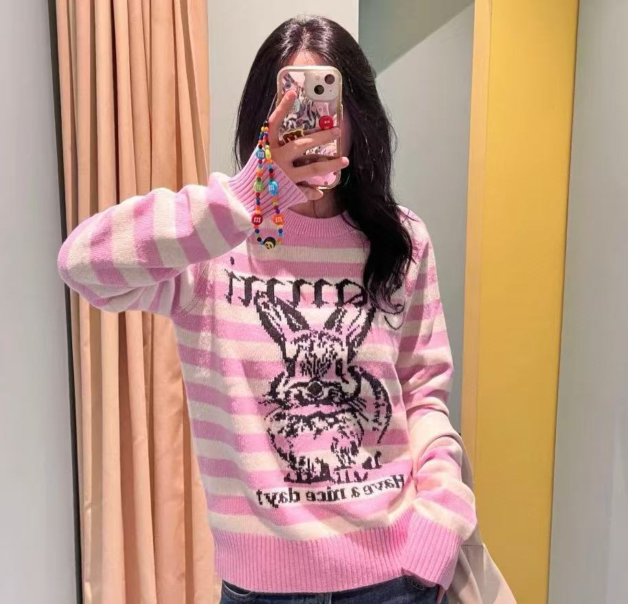 絕對是冬天裡療癒又時尚的必備單品!柔和的粉色調搭配可愛兔子條紋設計,甜美中帶點俏皮感,無論是日常出門還是居家穿搭,都讓人一眼愛上。圓領設計簡約大方,微微寬鬆的版型穿起來舒適自在,輕鬆營造隨性又有型的氛圍。