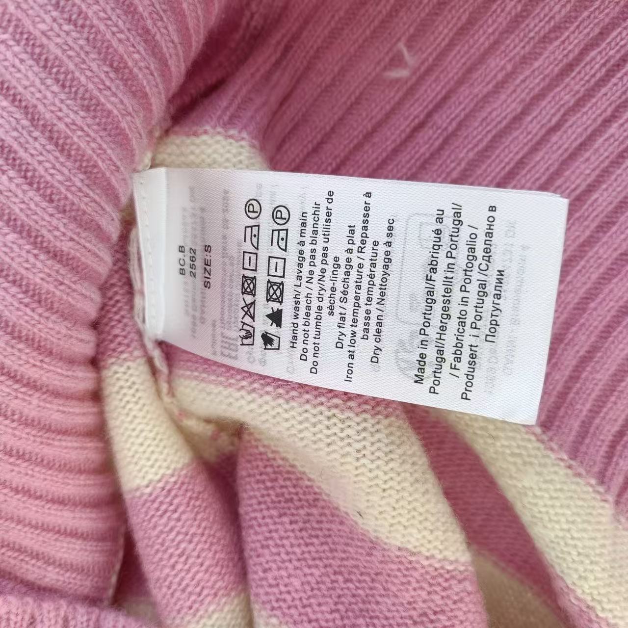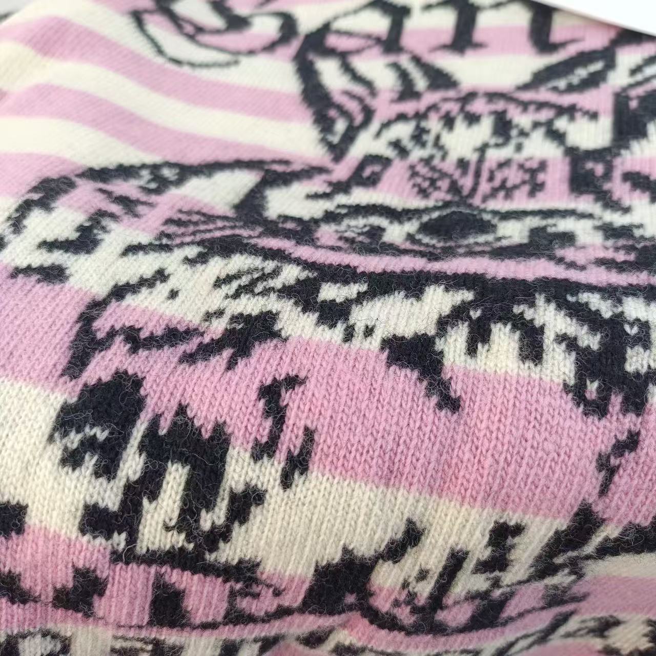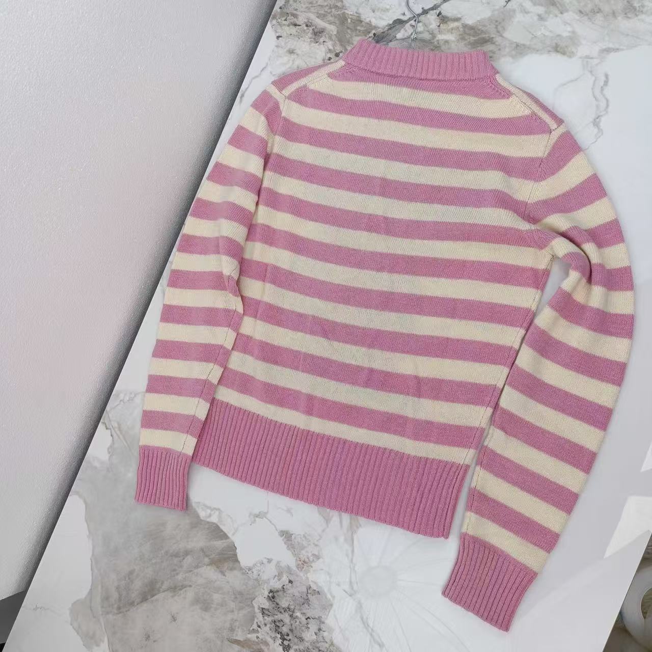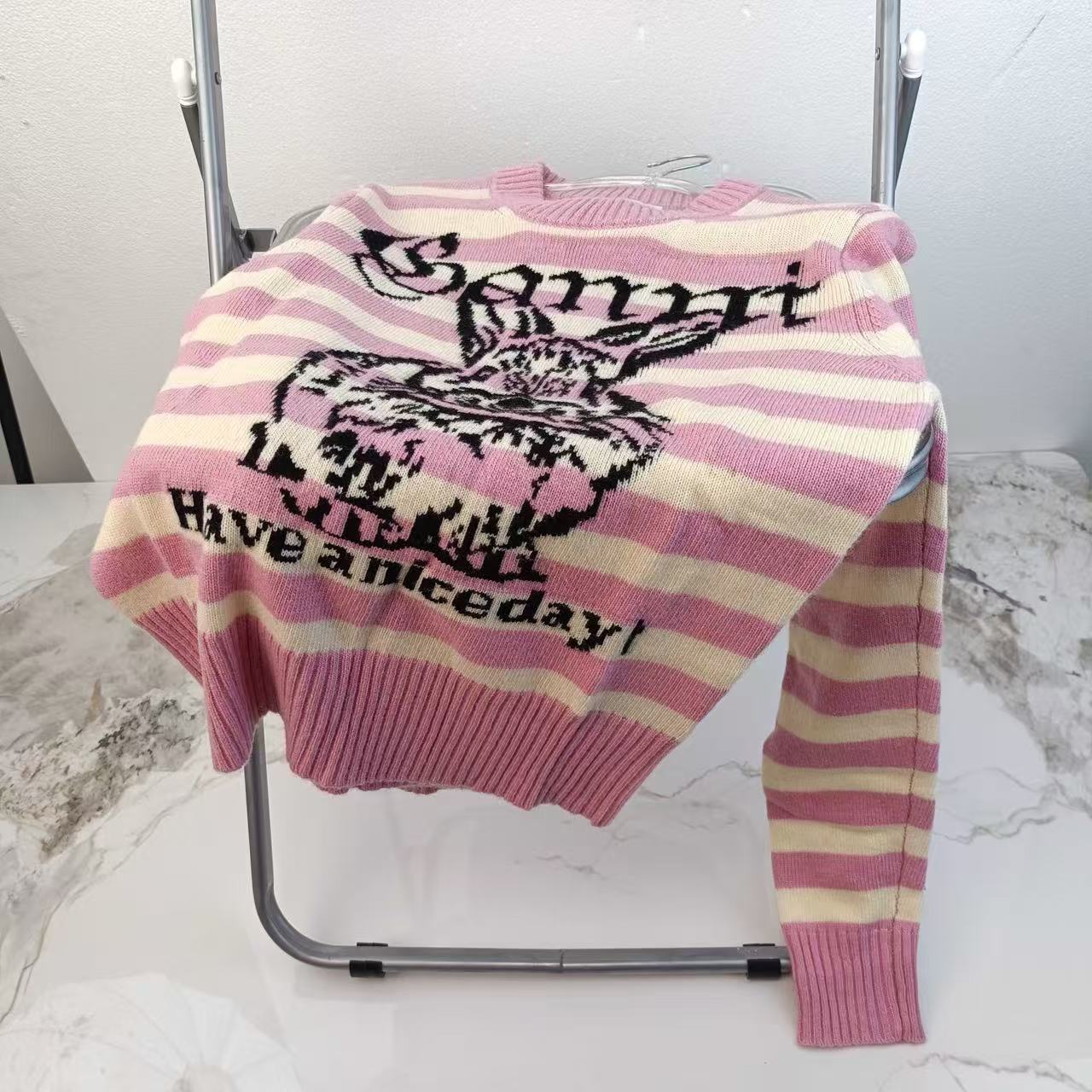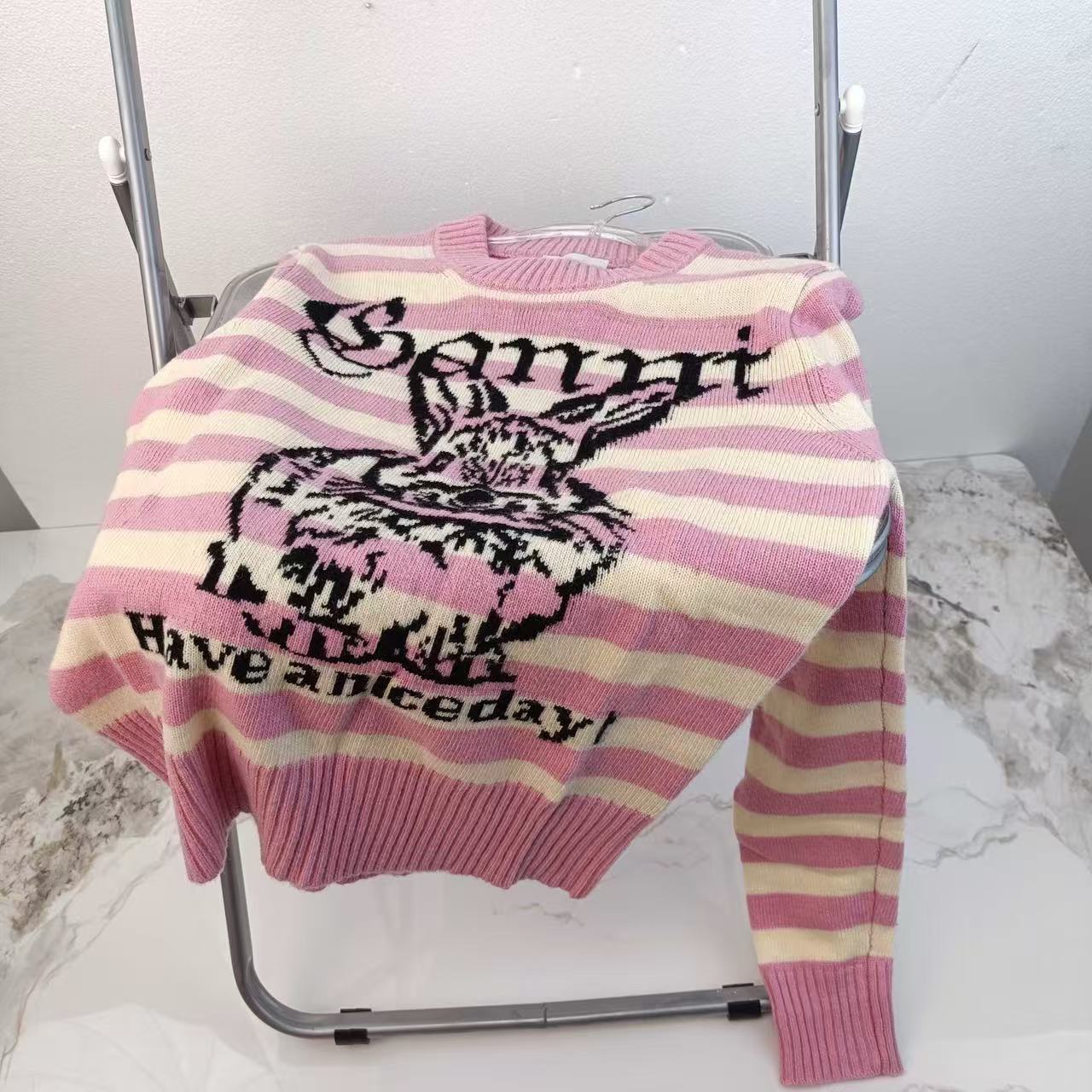 2025早秋新品 Ganni家 兔子條紋粉色羊毛毛衣