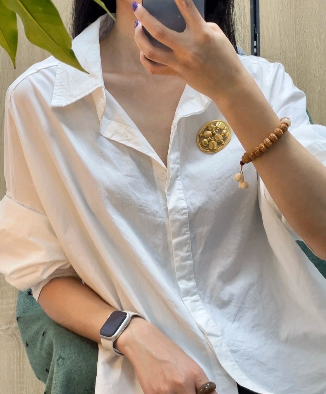 戴上身的效果真的質感滿分,而且這款設計非常貼心,可以根據當天的穿搭造型「橫戴」或「豎戴」,呈現出完全不同的層次感。那種內斂又耐看的古董韻味,真的是看越久越有味道。
