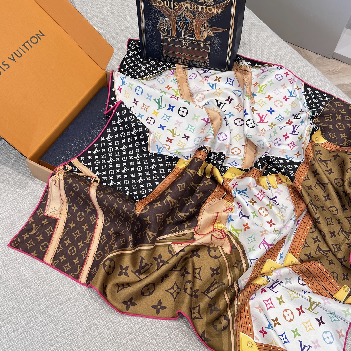 L家×村上隆聯名白三彩方巾