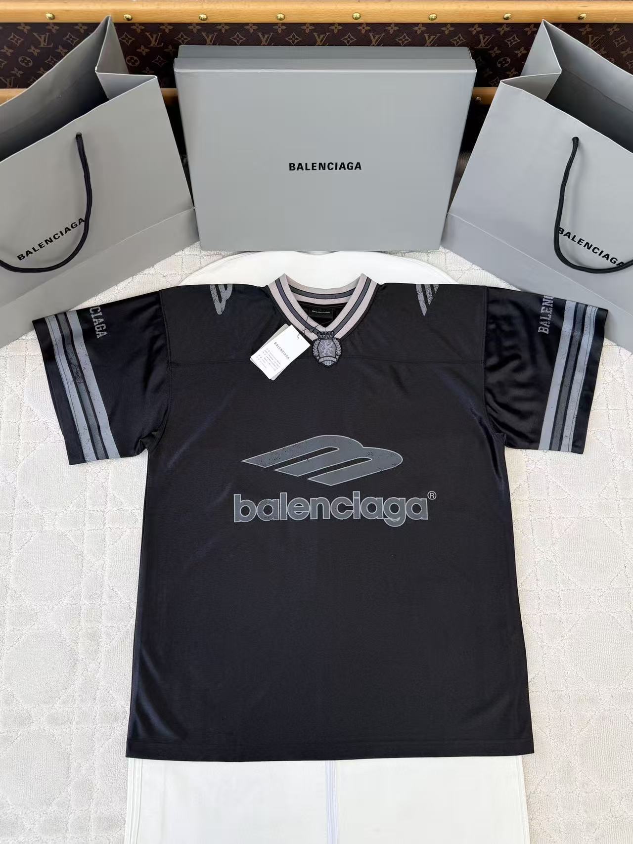 設計核心將傳奇球會曼聯的經典徽標,融入品牌標誌性的 Oversized 寬鬆剪裁,打破了運動機能與時裝週伸展台的界線。這不僅是一件球衣,更是將街頭足球的熱血基因與巴黎世家的結構美學完美揉合的指標單品。