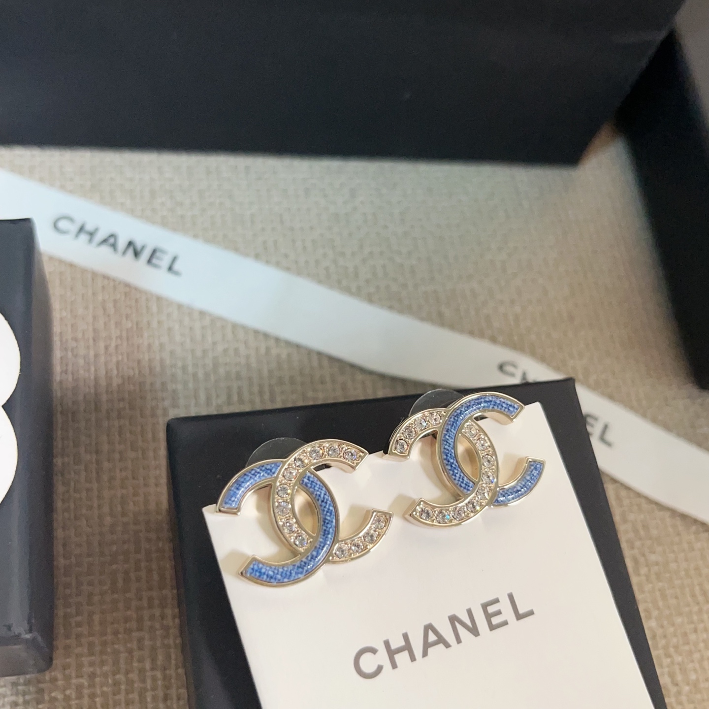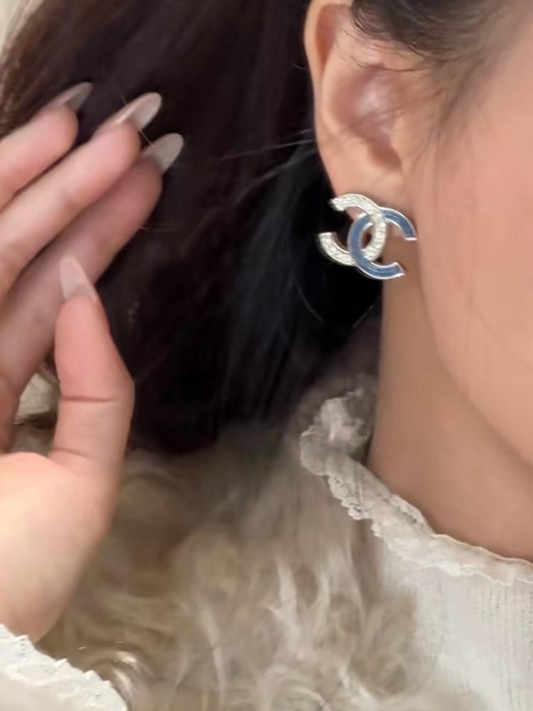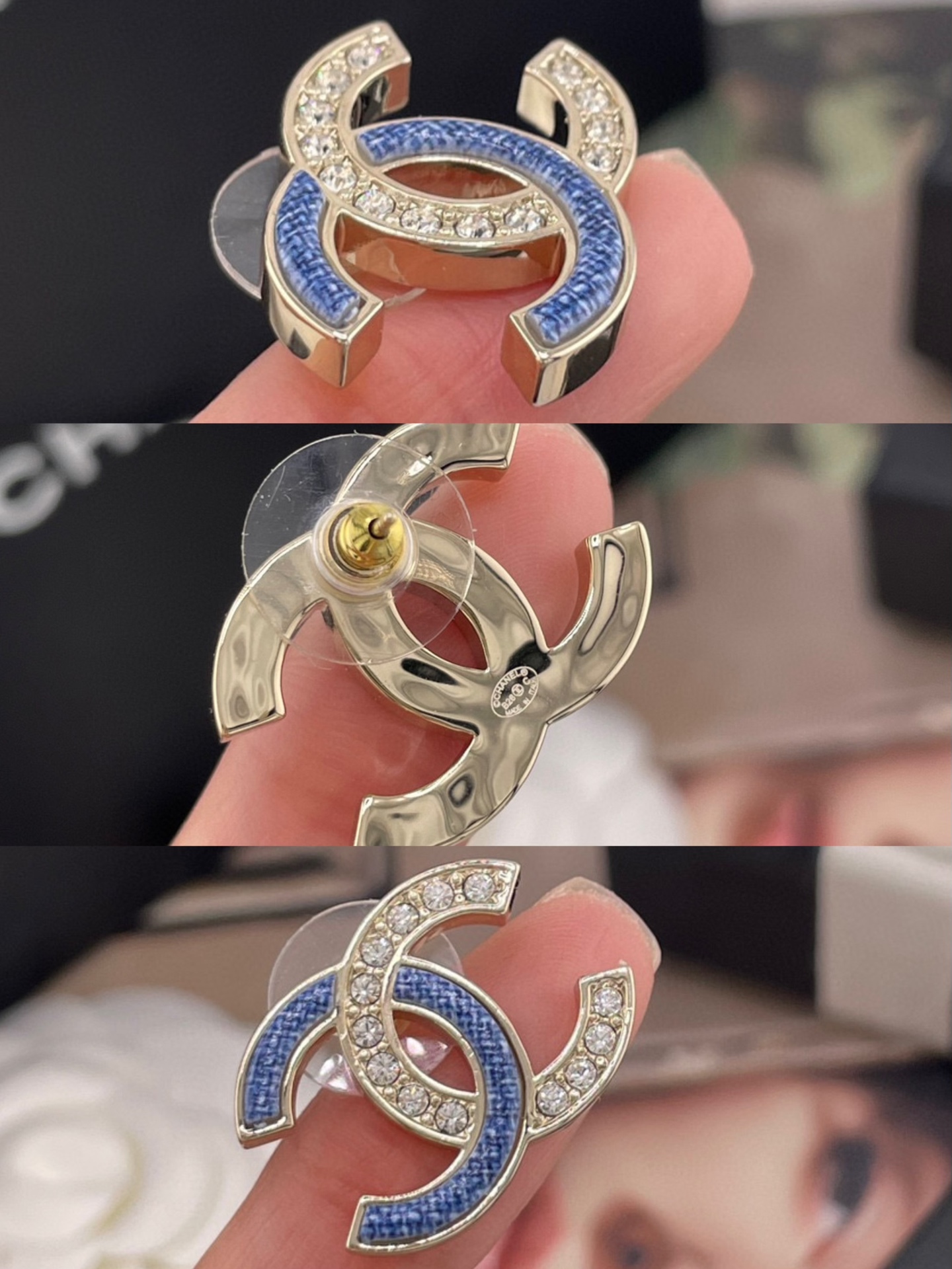 2026早春新品 C家 仿牛仔拼鑽雙C耳釘