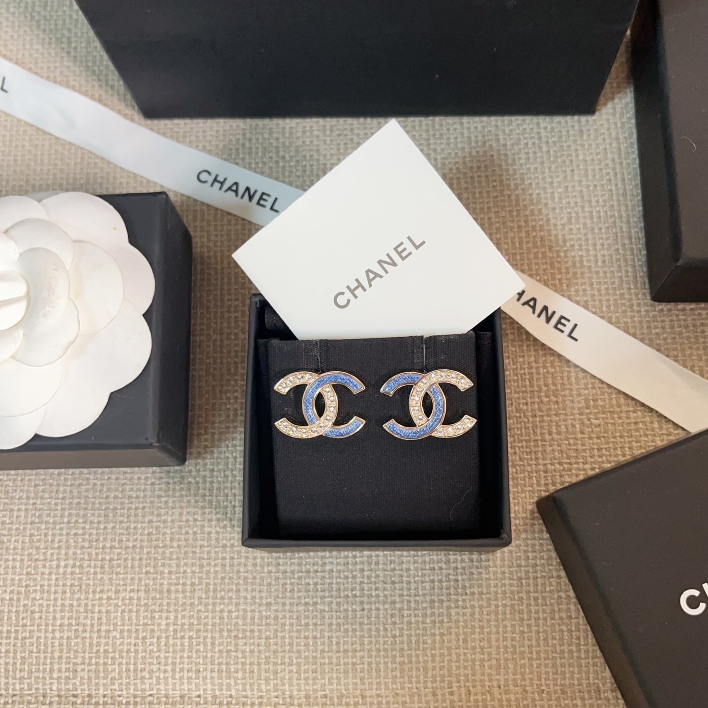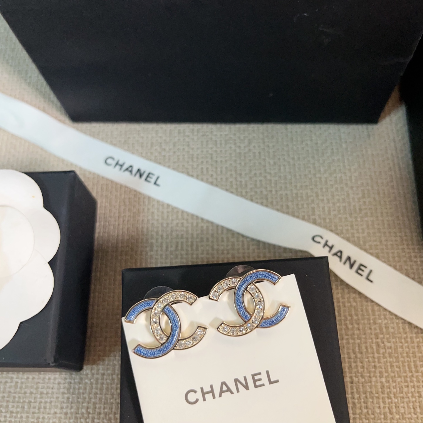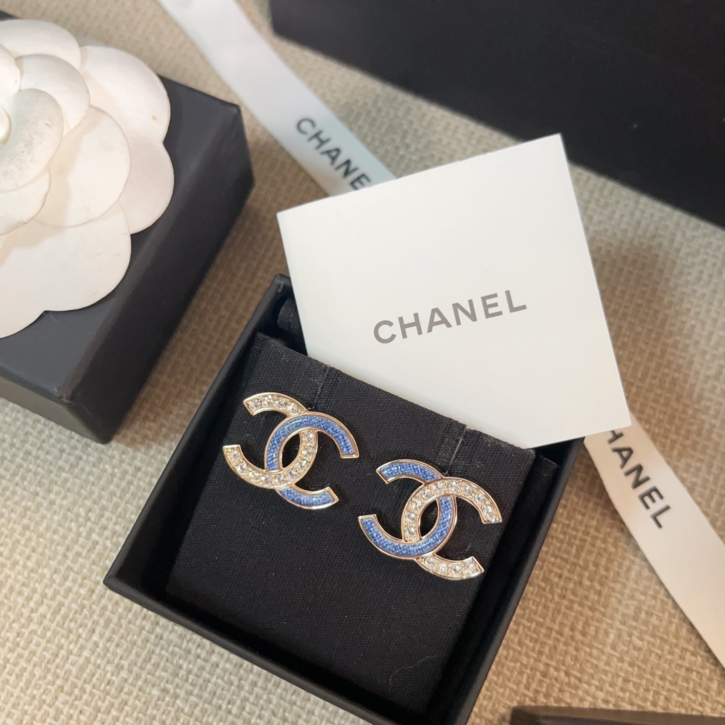 2026早春新品 C家 仿牛仔拼鑽雙C耳釘