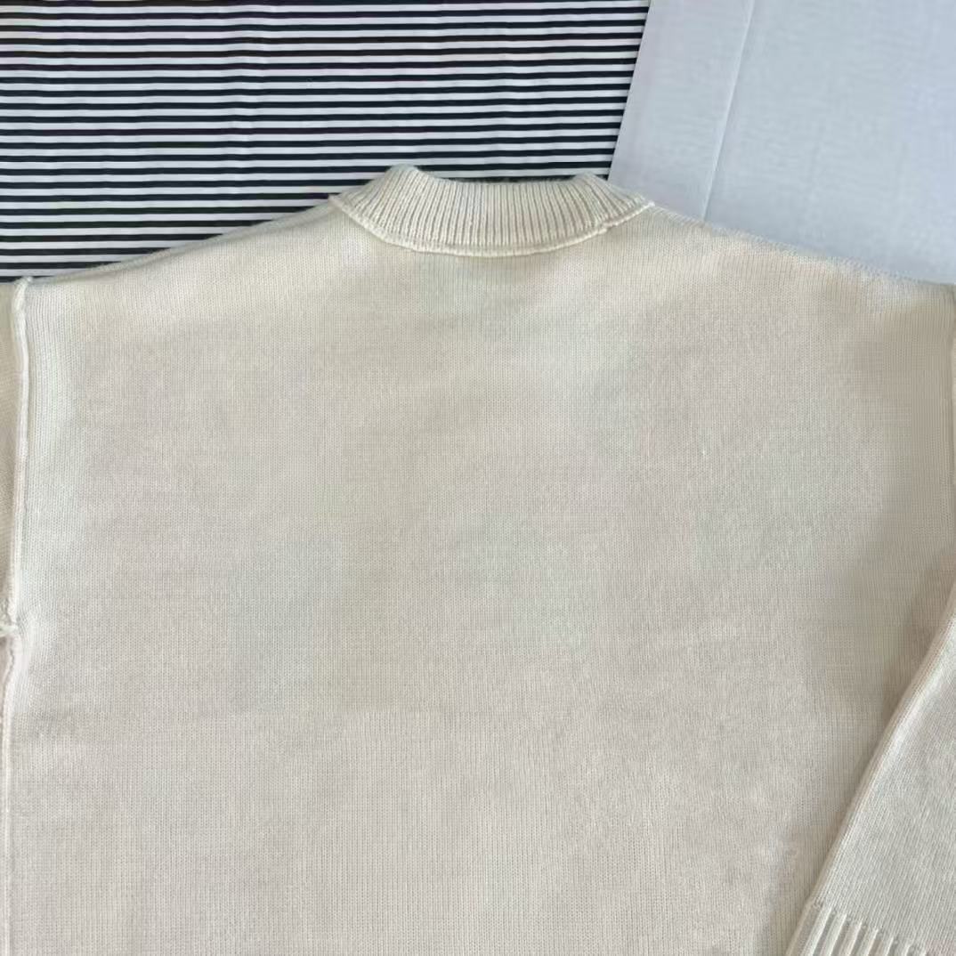 這款圓領毛衣以oversize寬鬆剪裁為基調,線條俐落、結構感強,輕鬆修飾身形比例。肩部外邊拼接外翻工藝增添層次,羅紋領口袖口下擺彈力貼合,完美駕馭寬鬆不鬆垮。胸前大愛心黑色A鏈編織刺繡立體細膩、辨識度高,低調卻吸睛。無論單穿展現主角光環,還是內搭襯衫或層搭外套,都能為你的造型注入滿滿的復古潮感,從校園到派對,一件就夠!