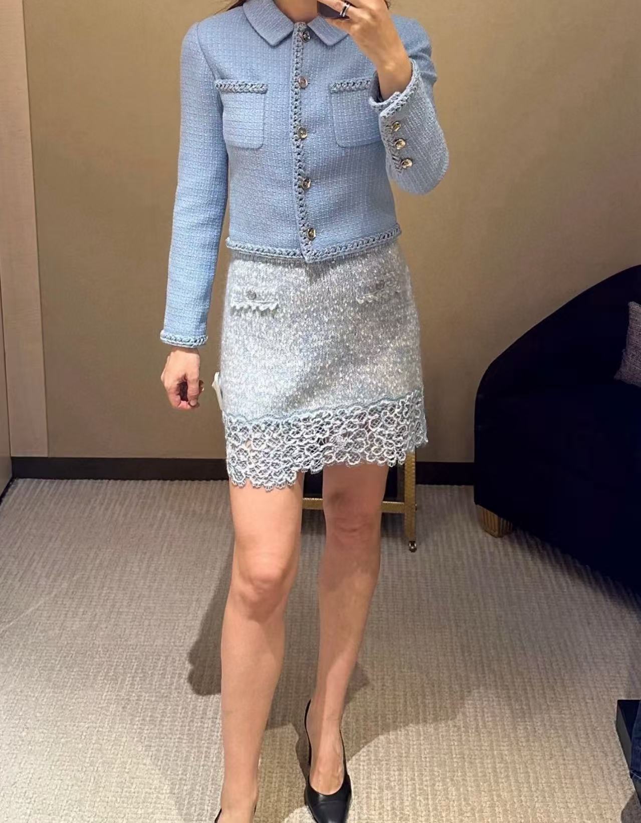 2025早秋 C家 藍色針織半裙 ,簡直是秋冬衣櫥的法式浪漫代表!