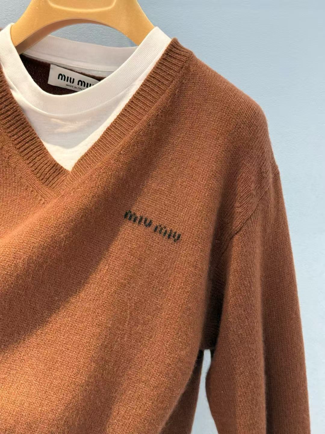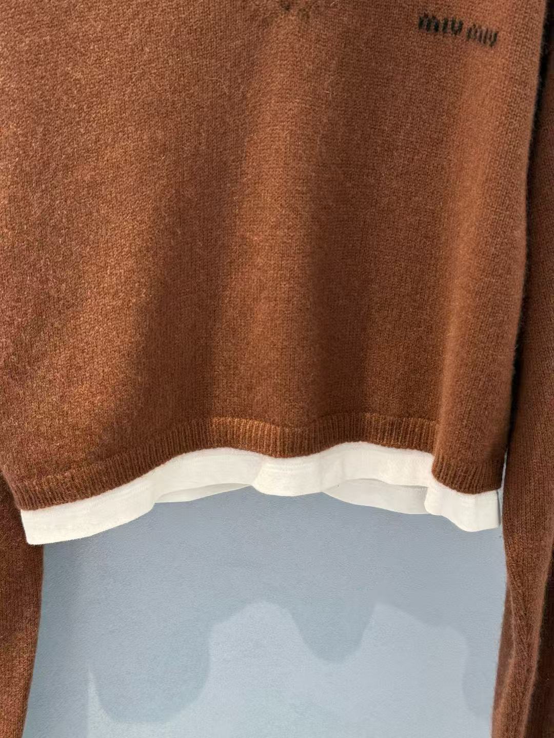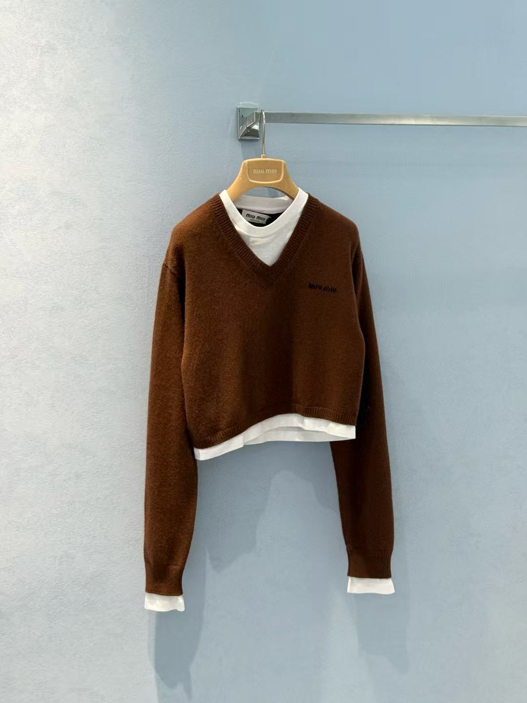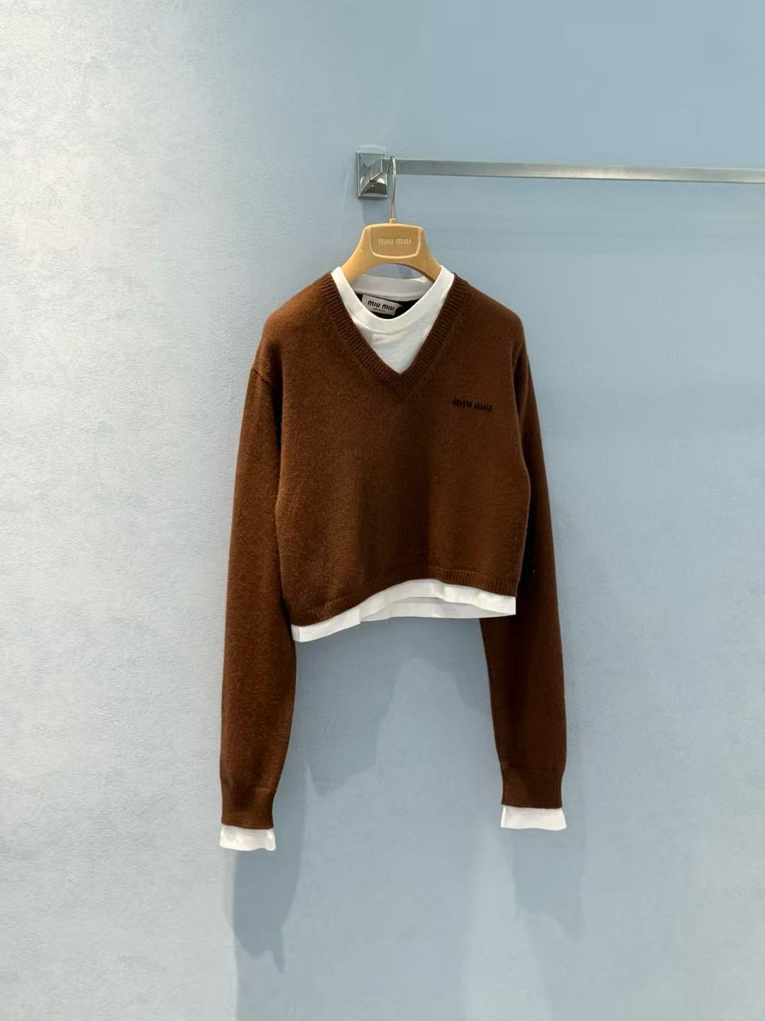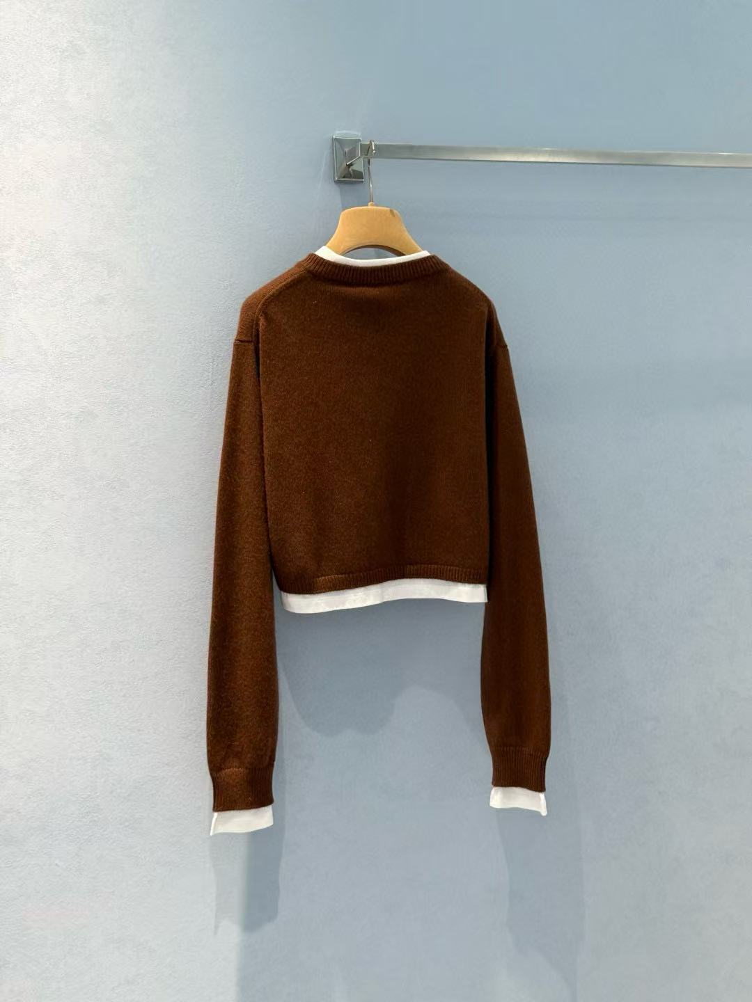 2025春夏 Miu家 假兩件徽標字母短款毛衣(棕色)