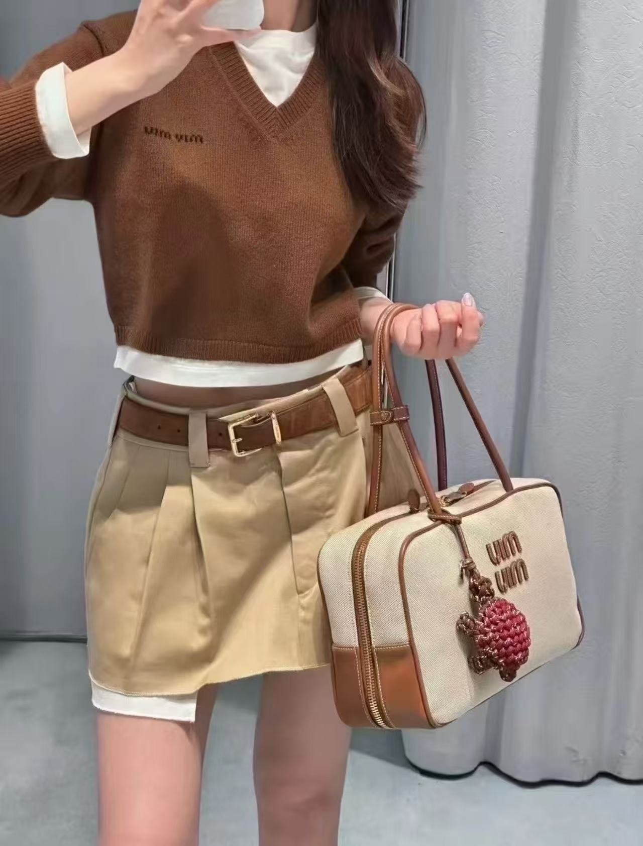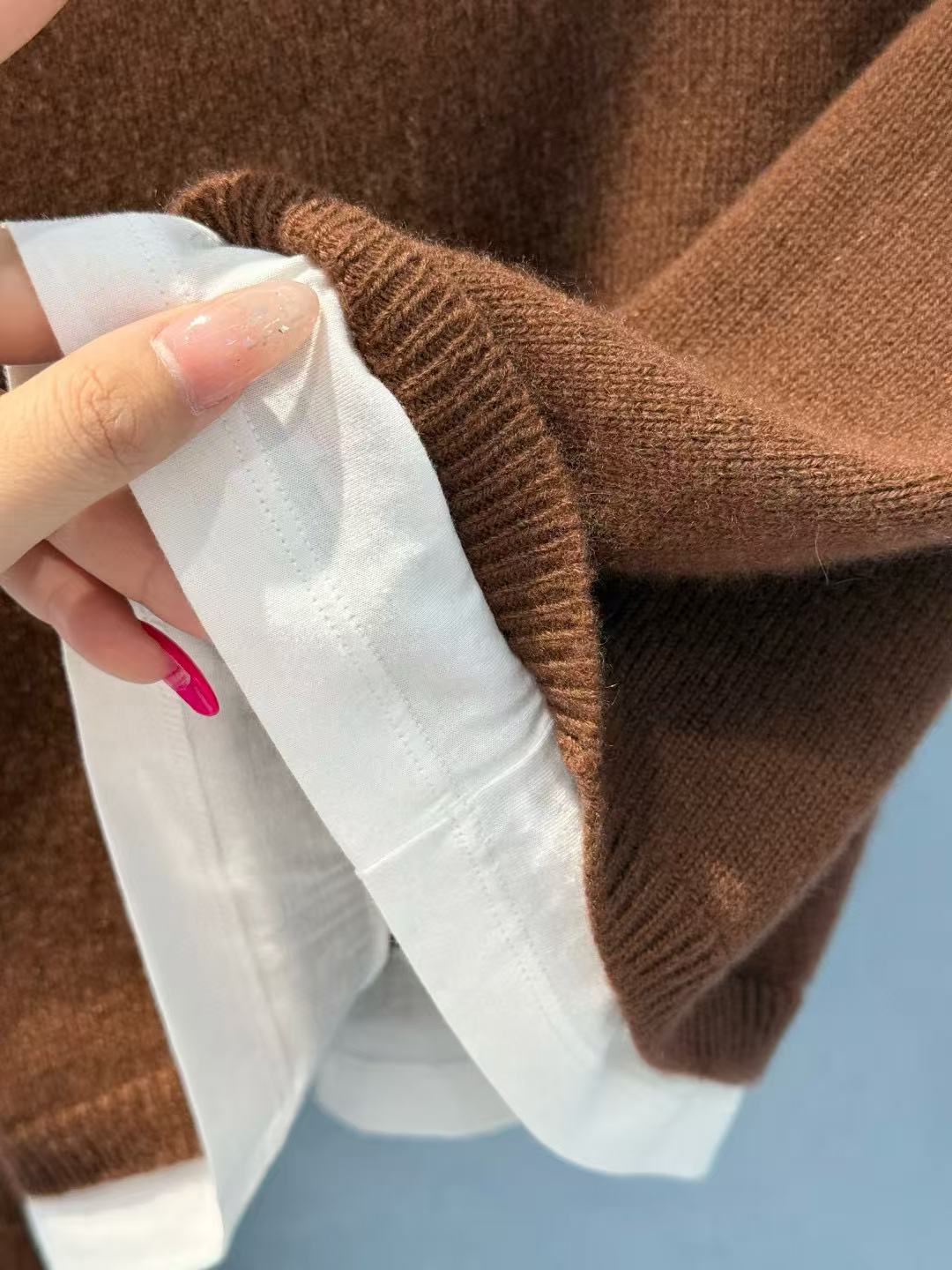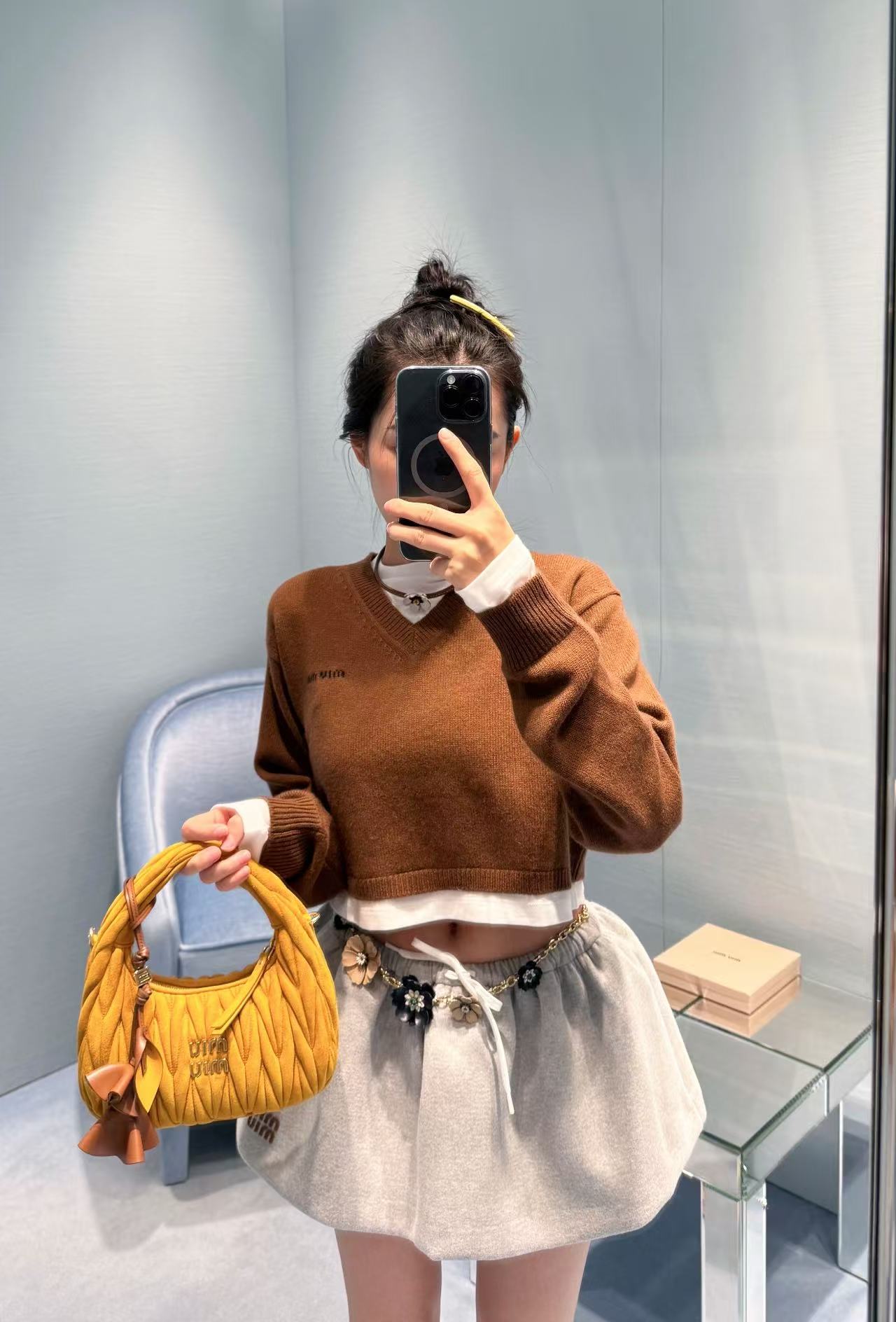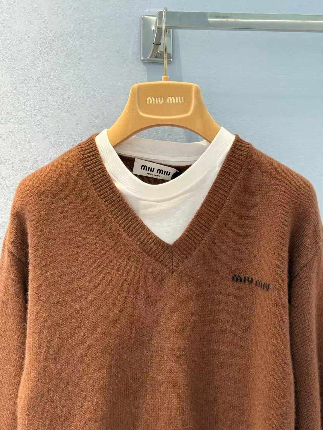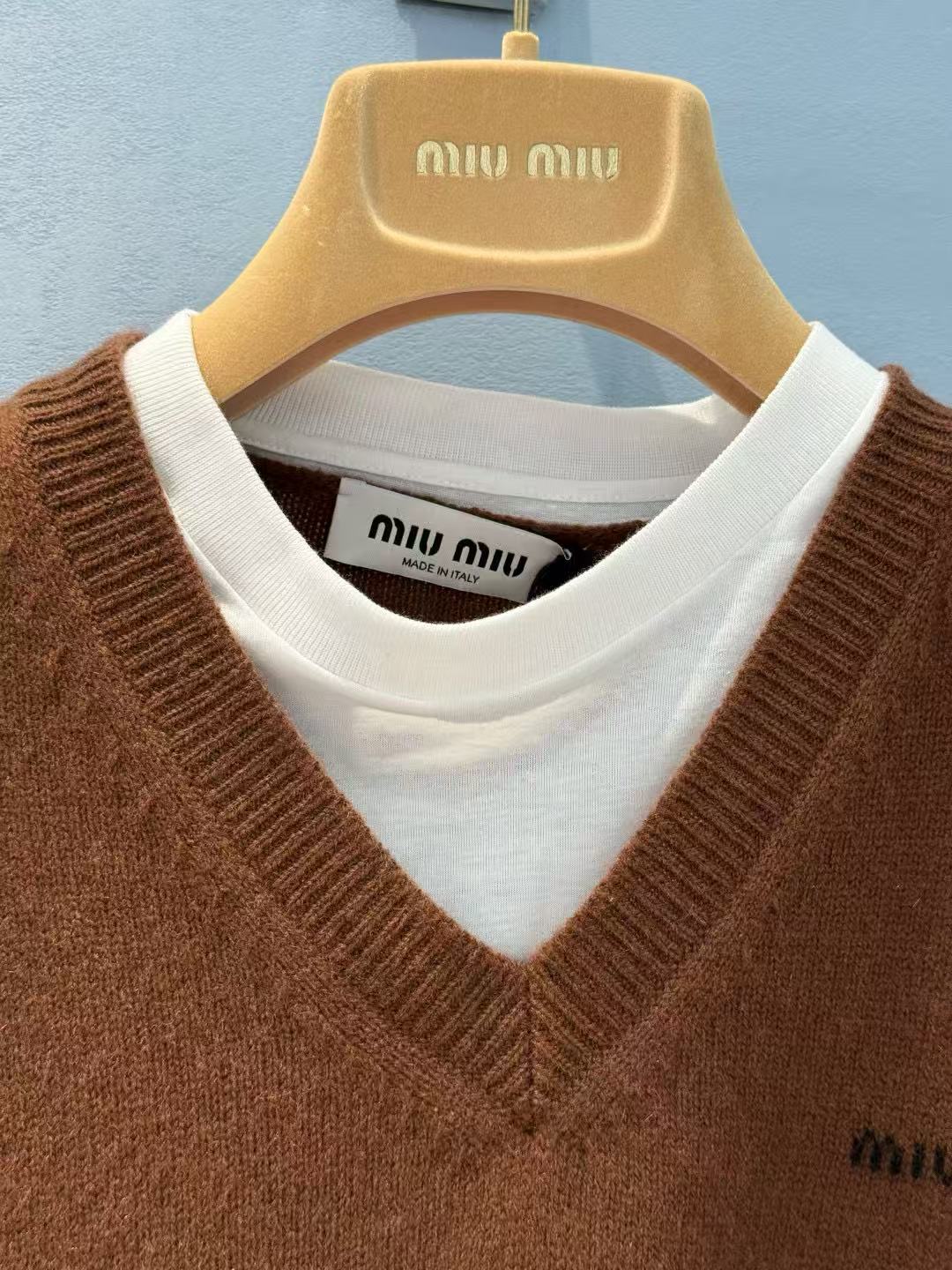 2025春夏 Miu家 假兩件徽標字母短款毛衣(棕色)