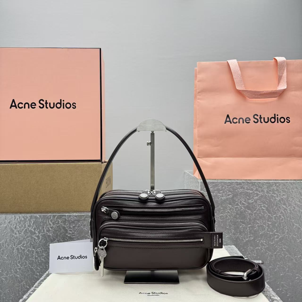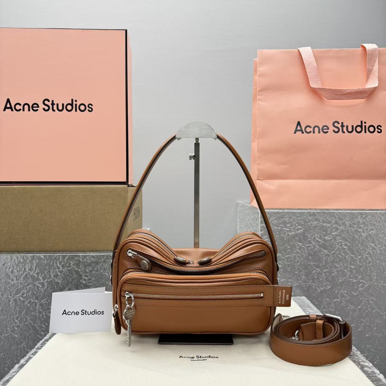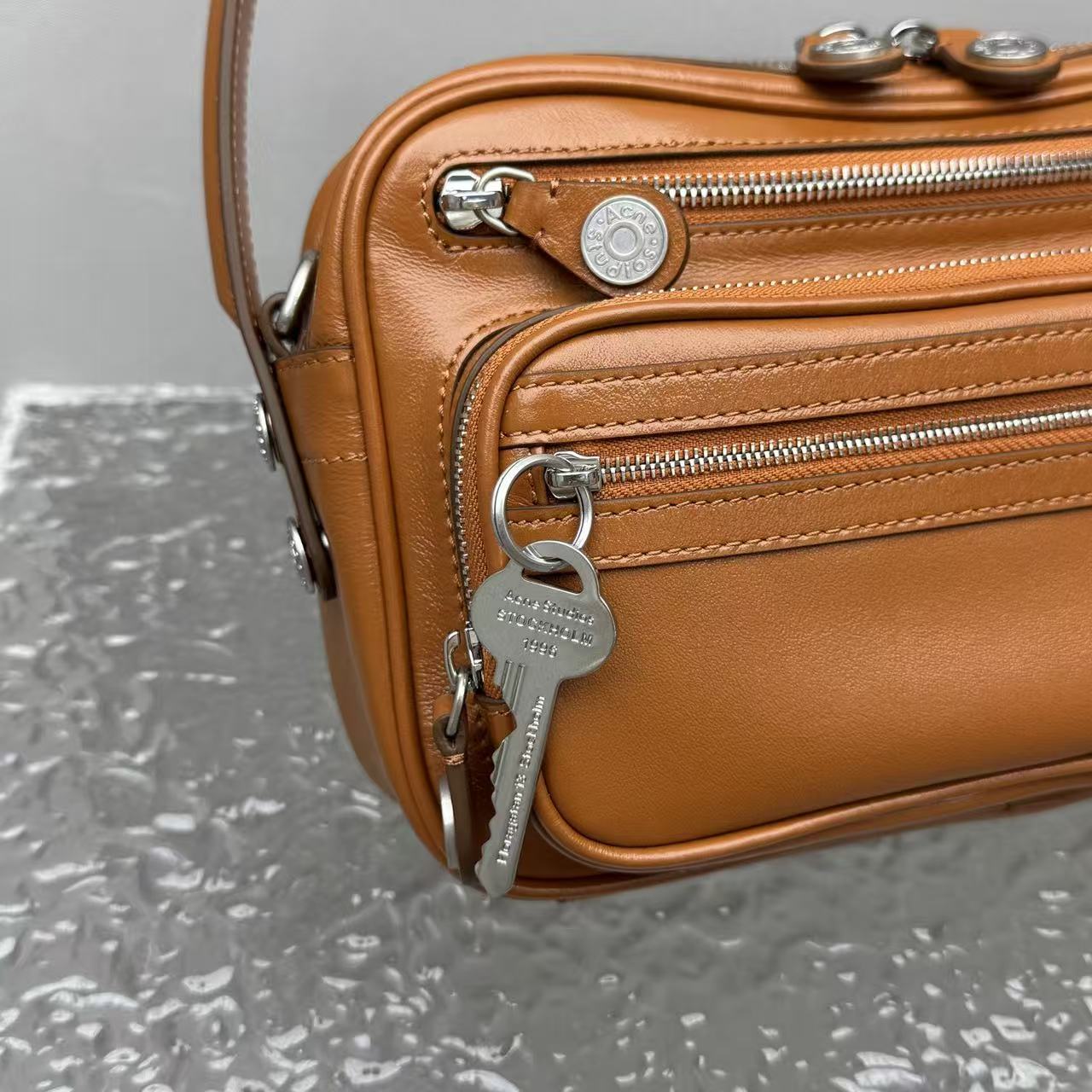 這款包最吸睛的靈魂,莫過於那個掛在包身的復古鑰匙掛飾。靈感源自傳統的瑞典門匙,金屬質感圓潤且帶有歲月痕跡,這種「古典與未來」的碰撞,正是 Ac 最迷人的設計語彙。