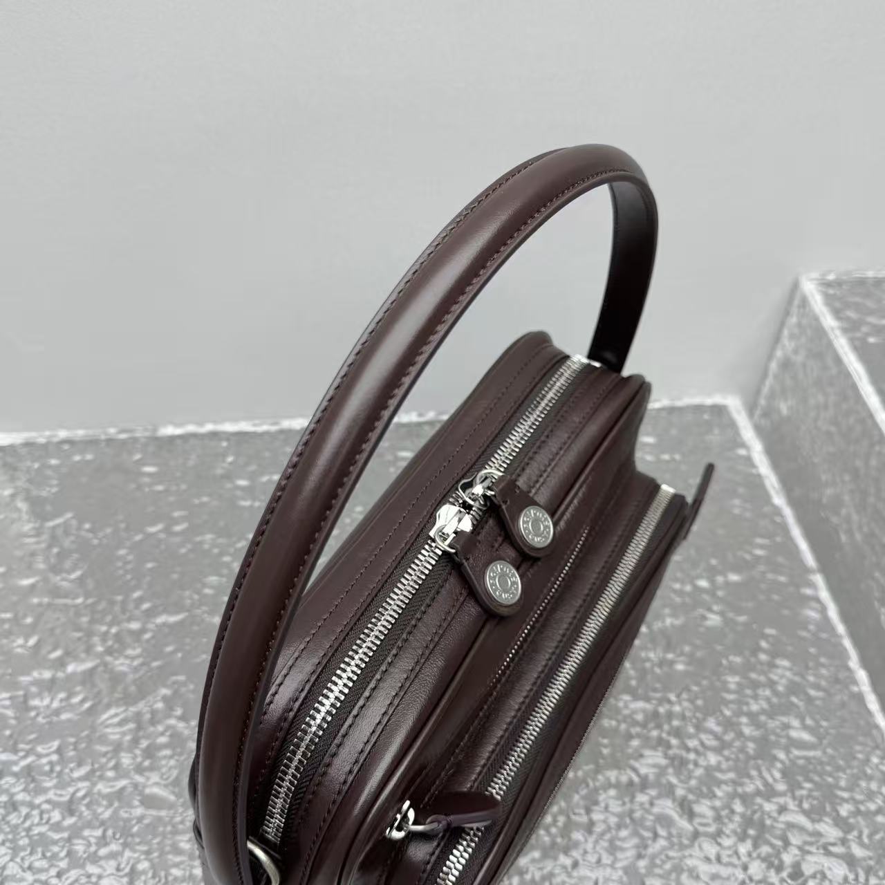 特供高感光平滑牛皮: 嚴選頂級全粒面牛皮,皮質厚實且富有彈性,表面呈現出細膩的半啞光緞面光澤。這種皮革不僅觸感絲滑,且具備絕佳的耐磨性,是真正可以陪伴妳多年的「質感單品」。