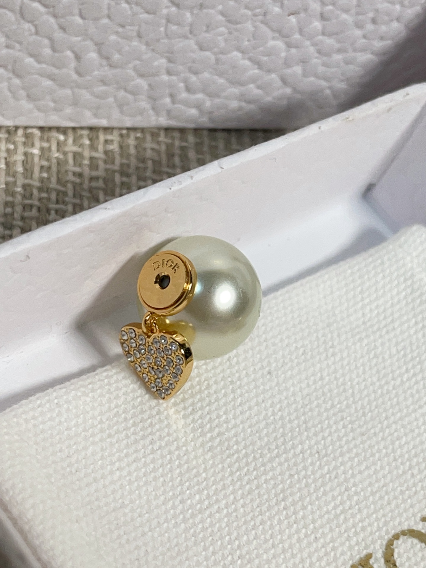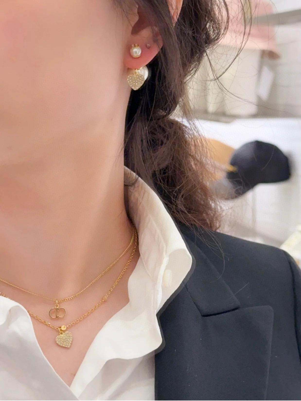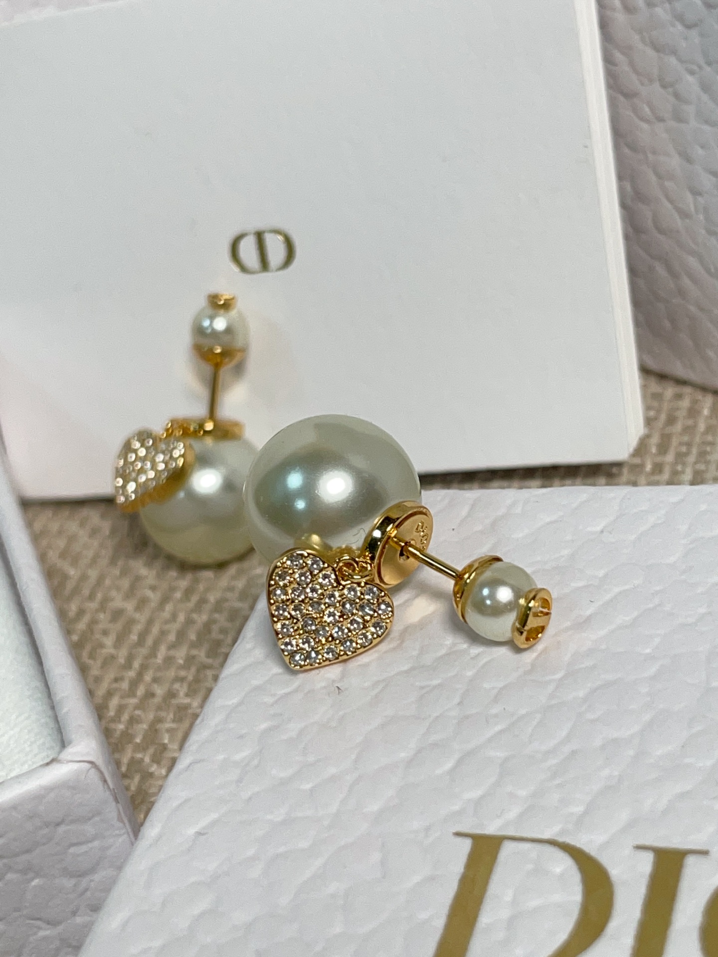2025春夏新品 D家 CD滿鑽愛心雙珠耳釘