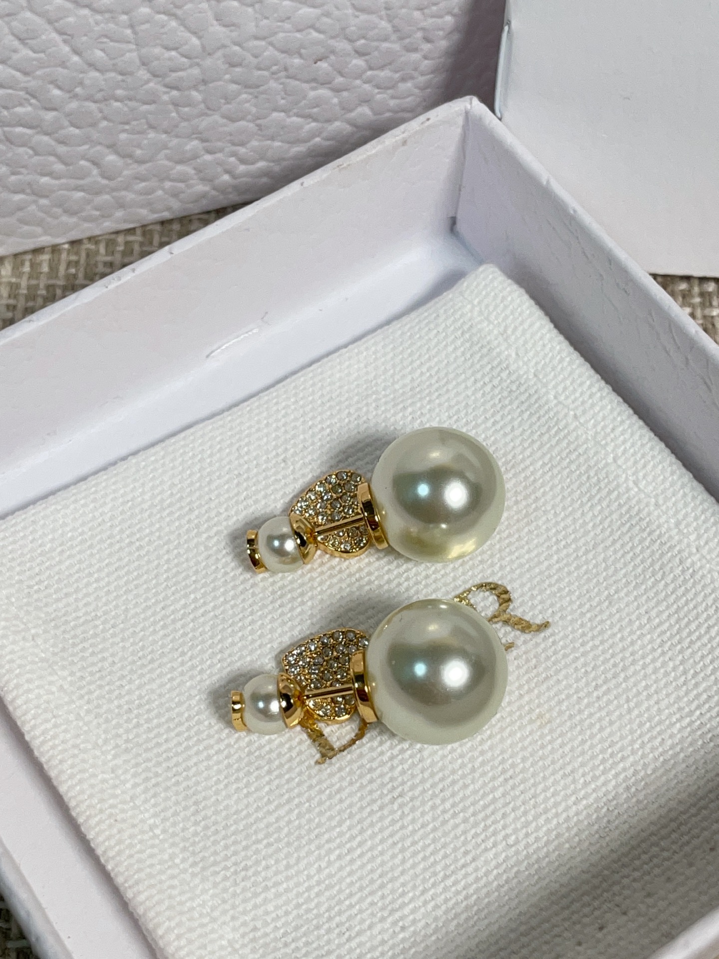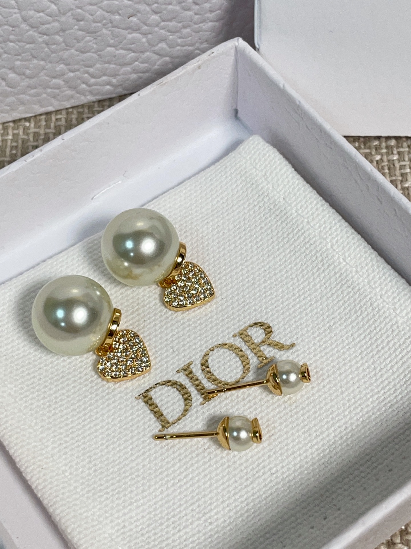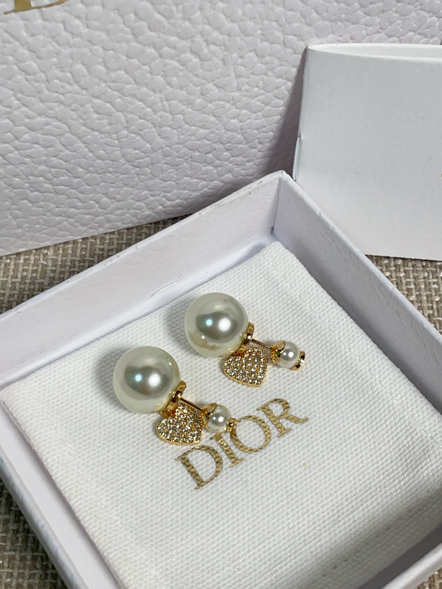 2025春夏新品 D家 CD滿鑽愛心雙珠耳釘