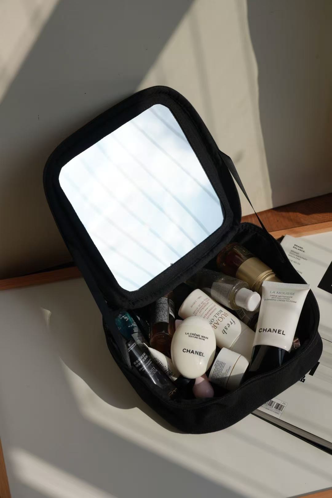 完美尺寸:它的尺寸是 21 x 21 x 9 公分,方正的設計容量超級足夠!無論是當作日常化妝包、旅行洗漱包,或是作為手拿包搭配簡約穿搭,都非常時髦又實用。
