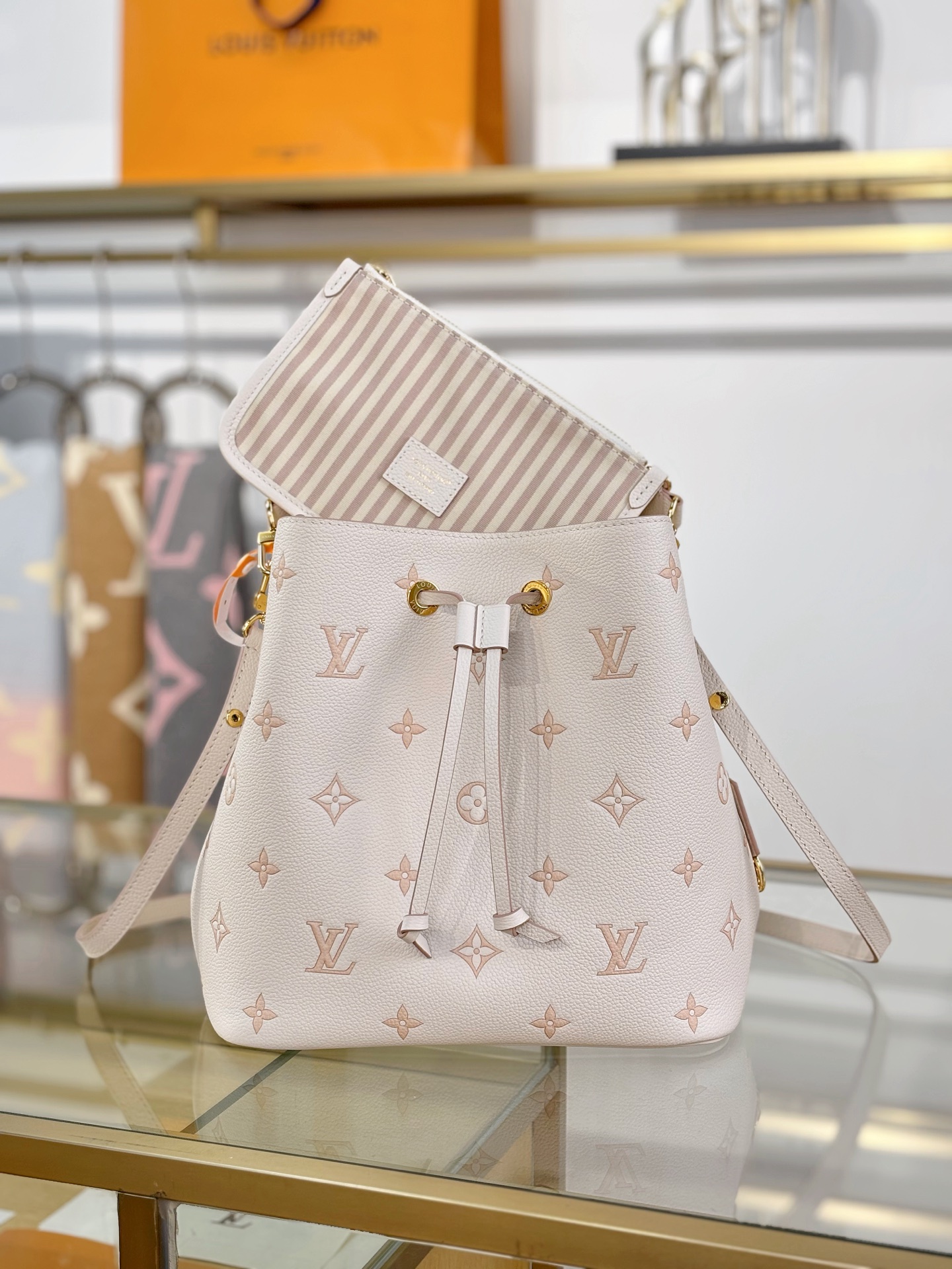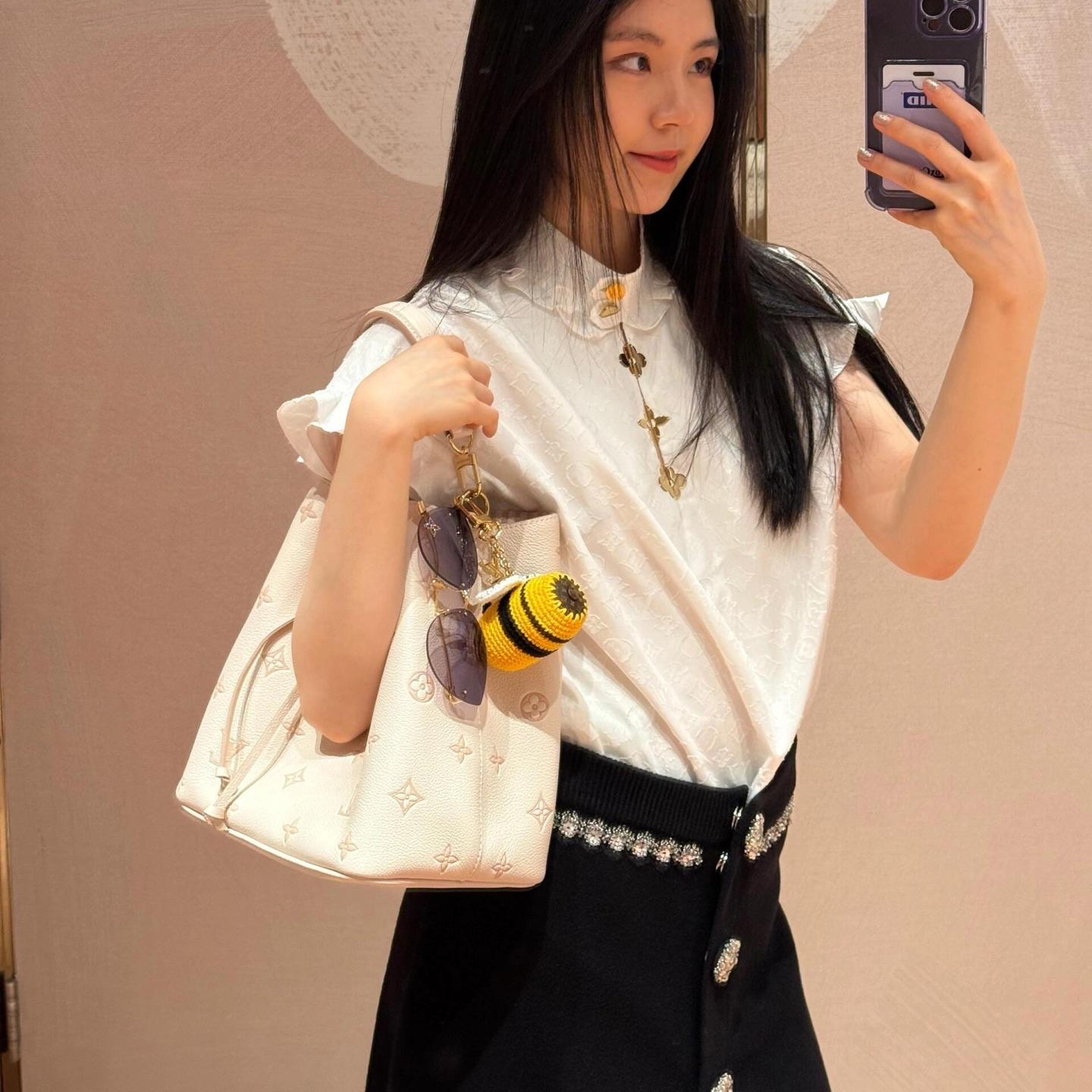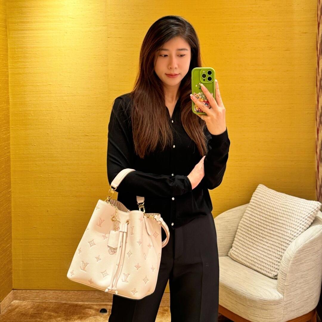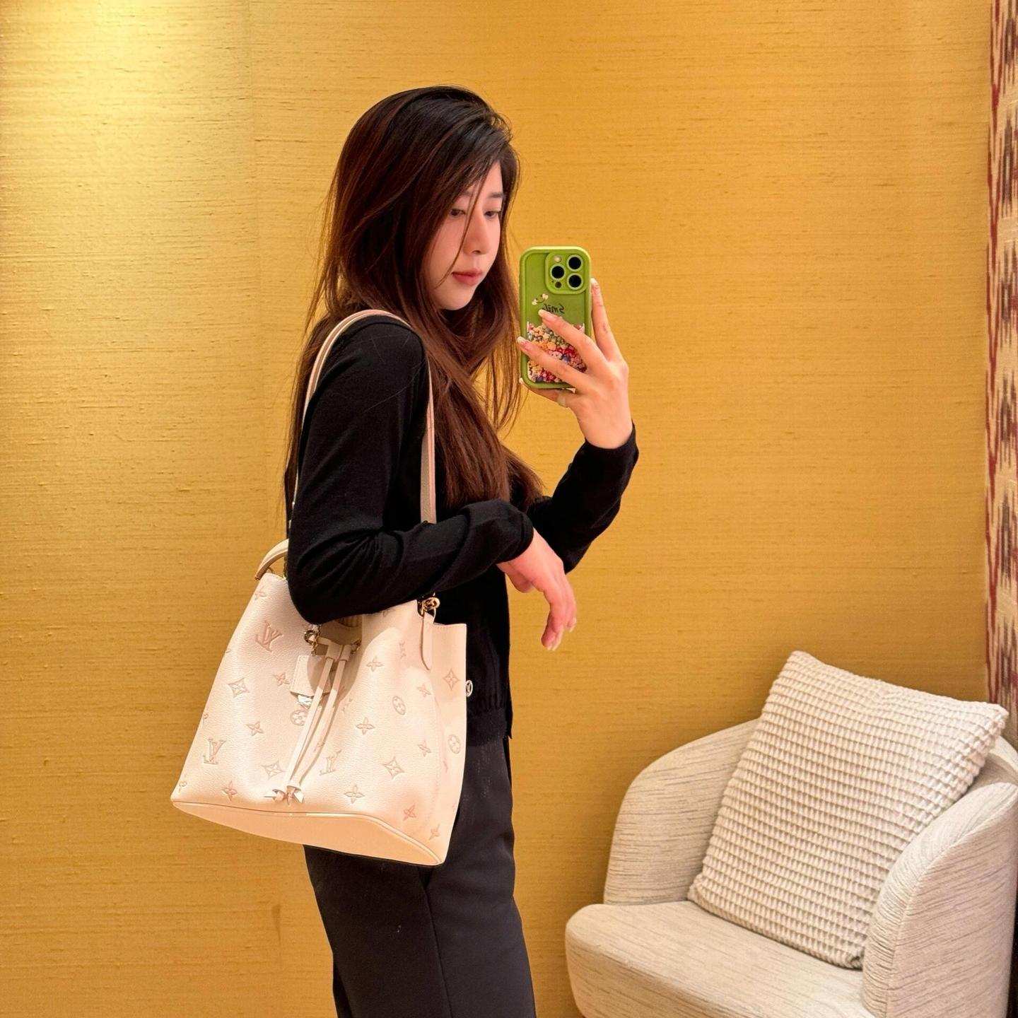 這款 NéoNoé 包以其經典水桶包輪廓結合甜而不膩的淡奶草莓色調,視覺上多了些柔和氣息,不僅年輕化,還非常百搭。