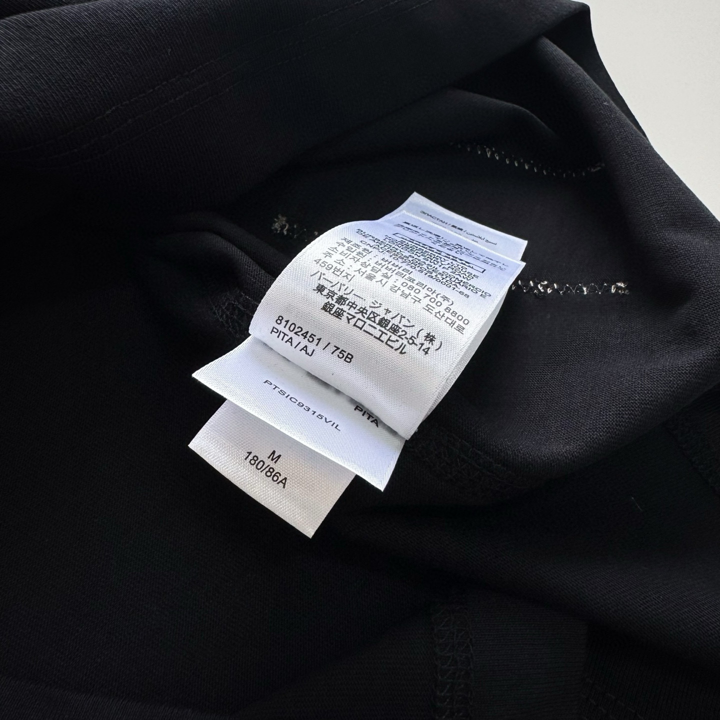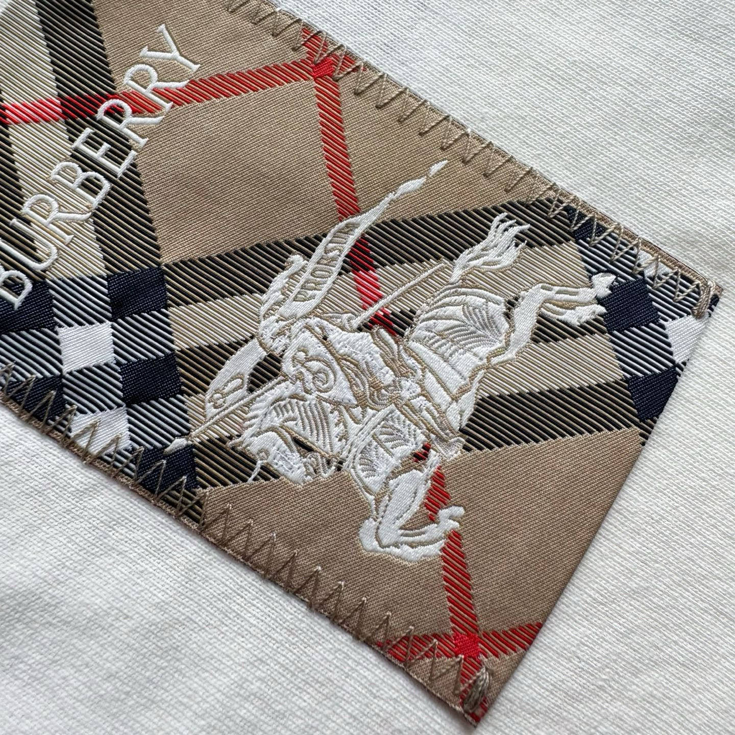 設計亮點:螺紋圓領、格紋標籤貼花、絲光刺繡、修身版型