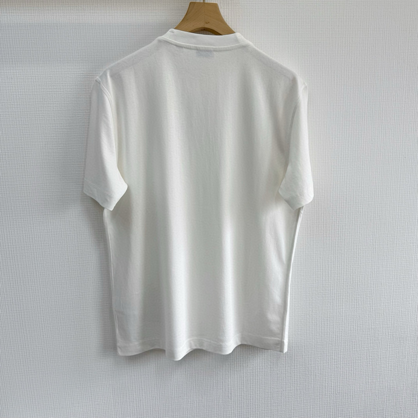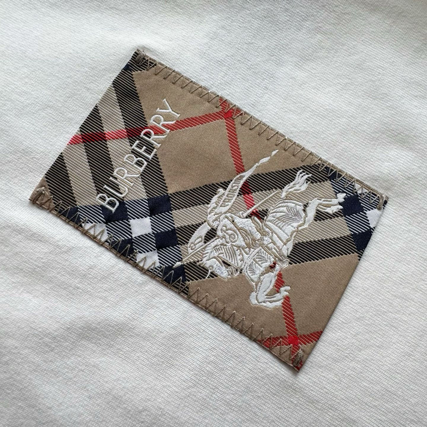螺紋圓領搭配修身版型,下擺有格紋標籤貼花,絲光繡線刺繡細膩又帶光澤,低調卻有細節。夏日日常穿搭必備!