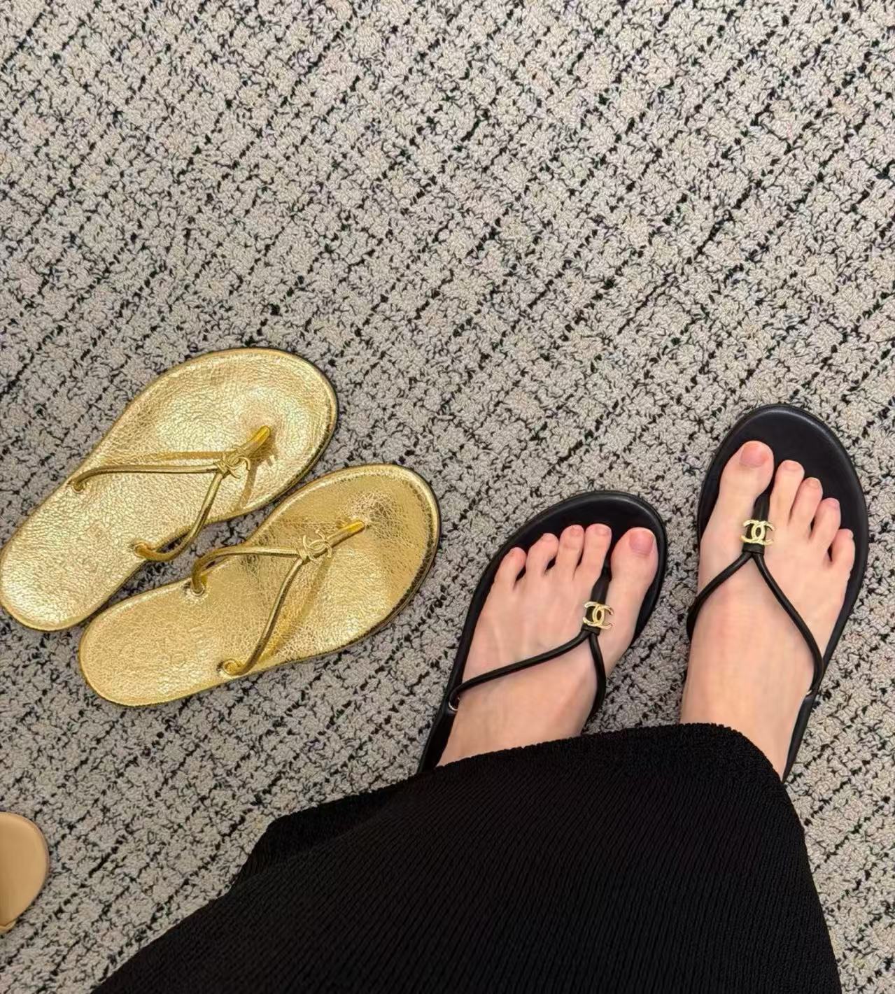 全羊皮的觸感極致軟糯,搭配簡約的人字夾趾設計,視覺上極度延伸腳背線條。
