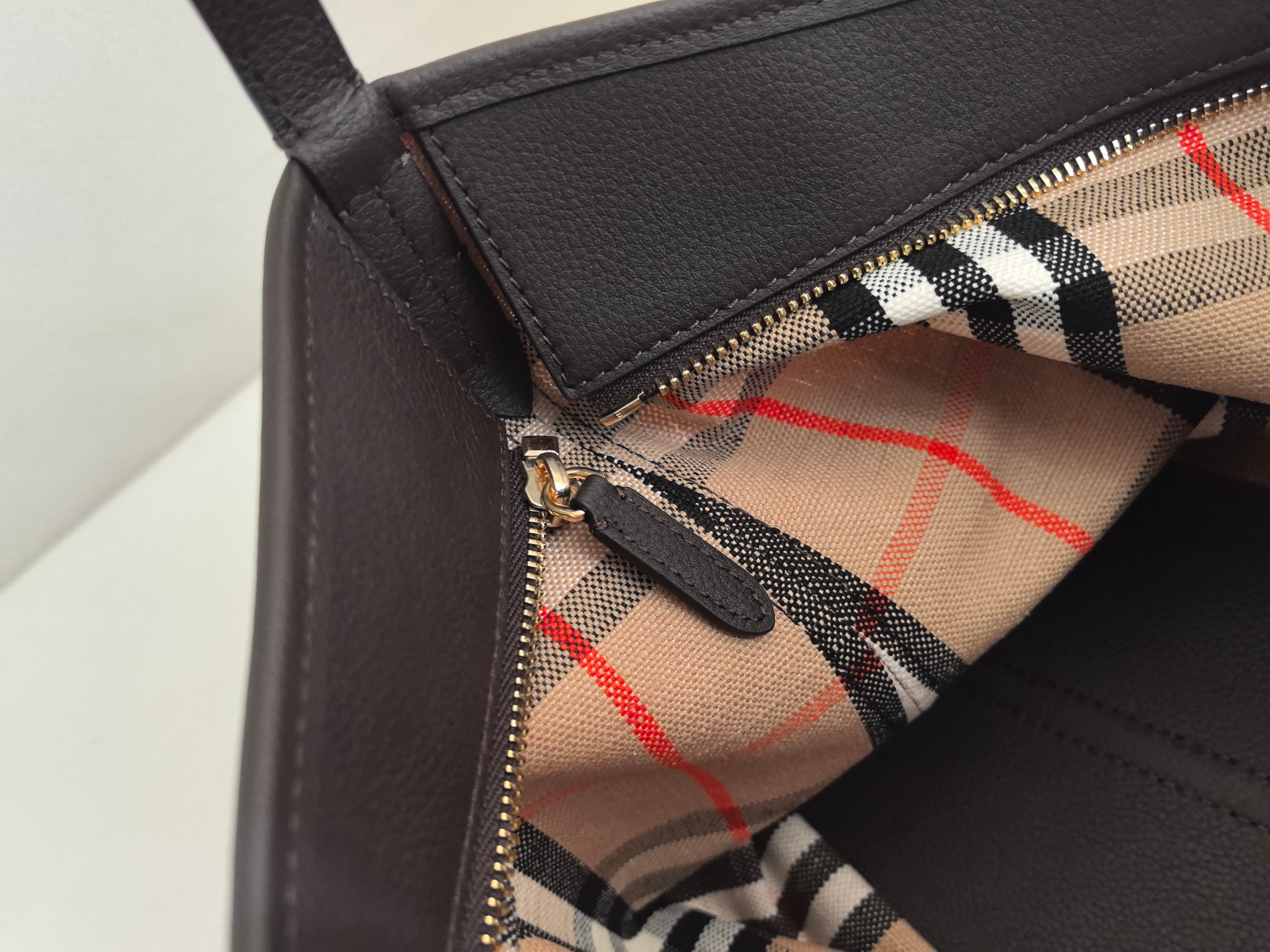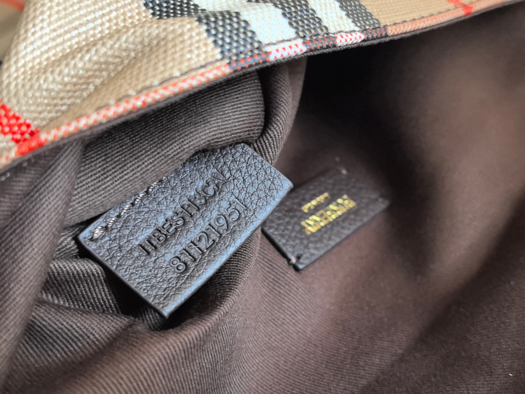 經典 Bur 格紋以提花織法呈現,細節之處更顯工藝之美。風衣靈感的涂層處理,搭配騎士印章徽標皮革飾牌,處處都能看見對於傳承的堅持與對細節的講究。