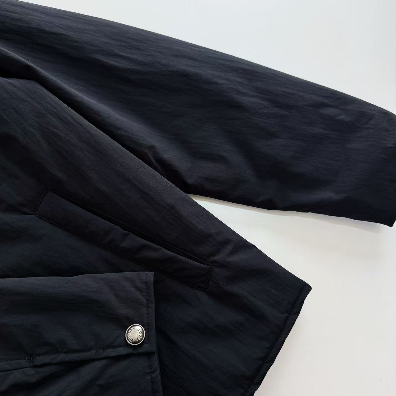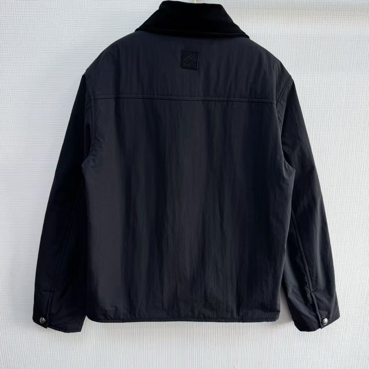 燈芯絨絨領: 衣領採用燈芯絨絨面材質,觸感溫暖細膩,在視覺上為夾克增添了秋冬的季節感和復古氛圍。