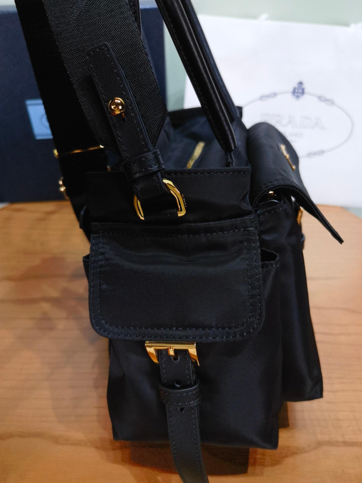 材質:選用輕盈耐磨的再生尼龍,不僅好背,還帶有環保理念;搭配金色五金,讓包款在低調中展現奢華氣息。