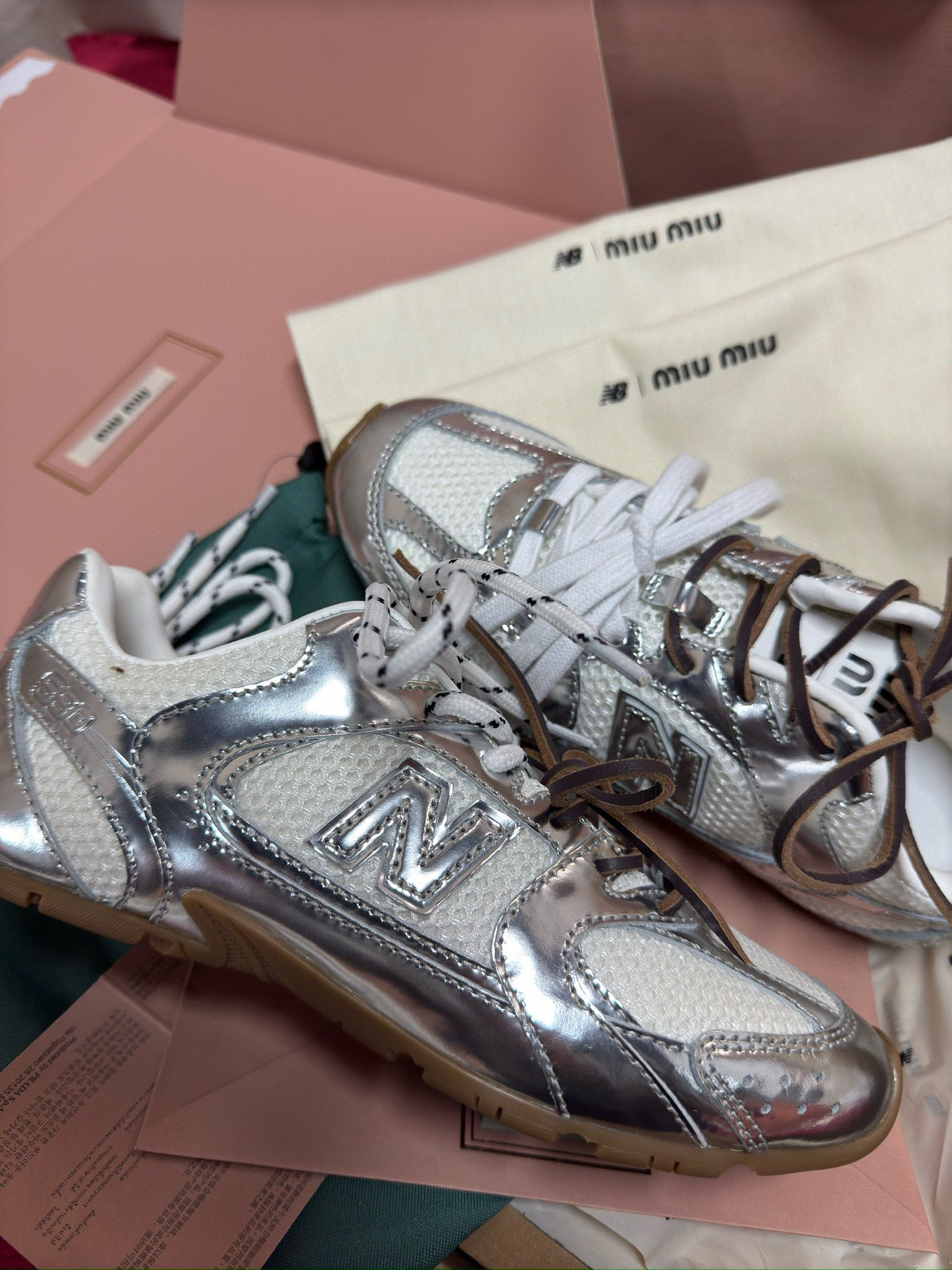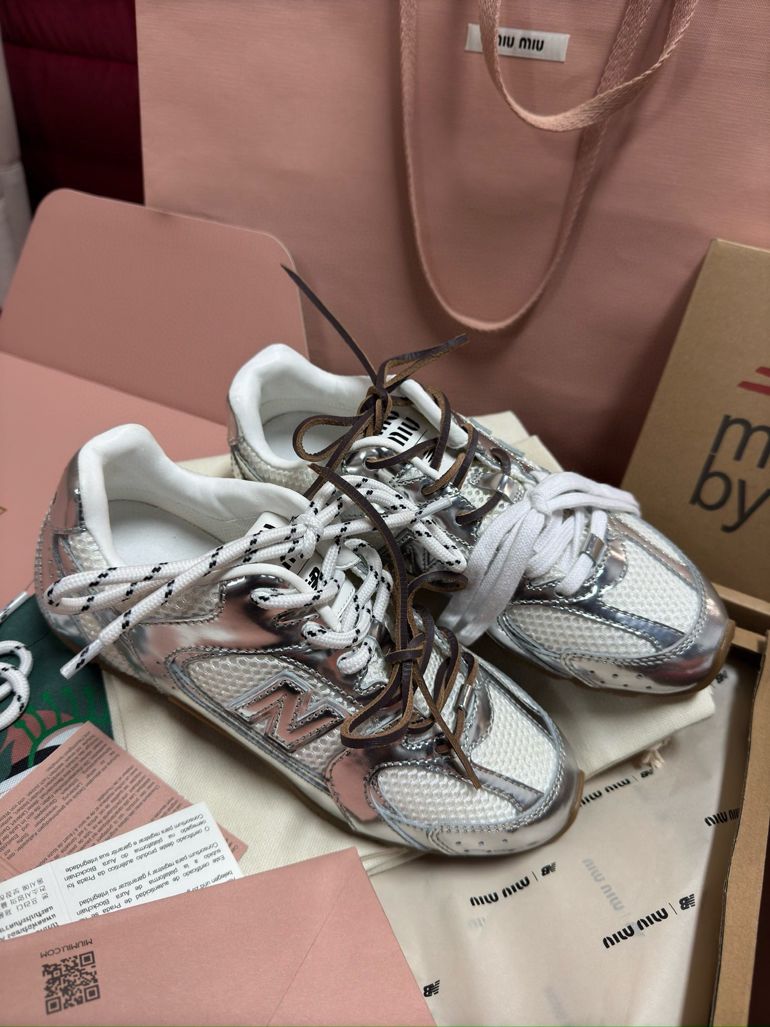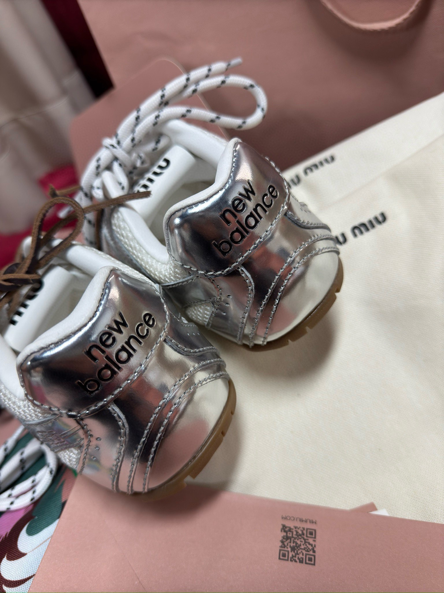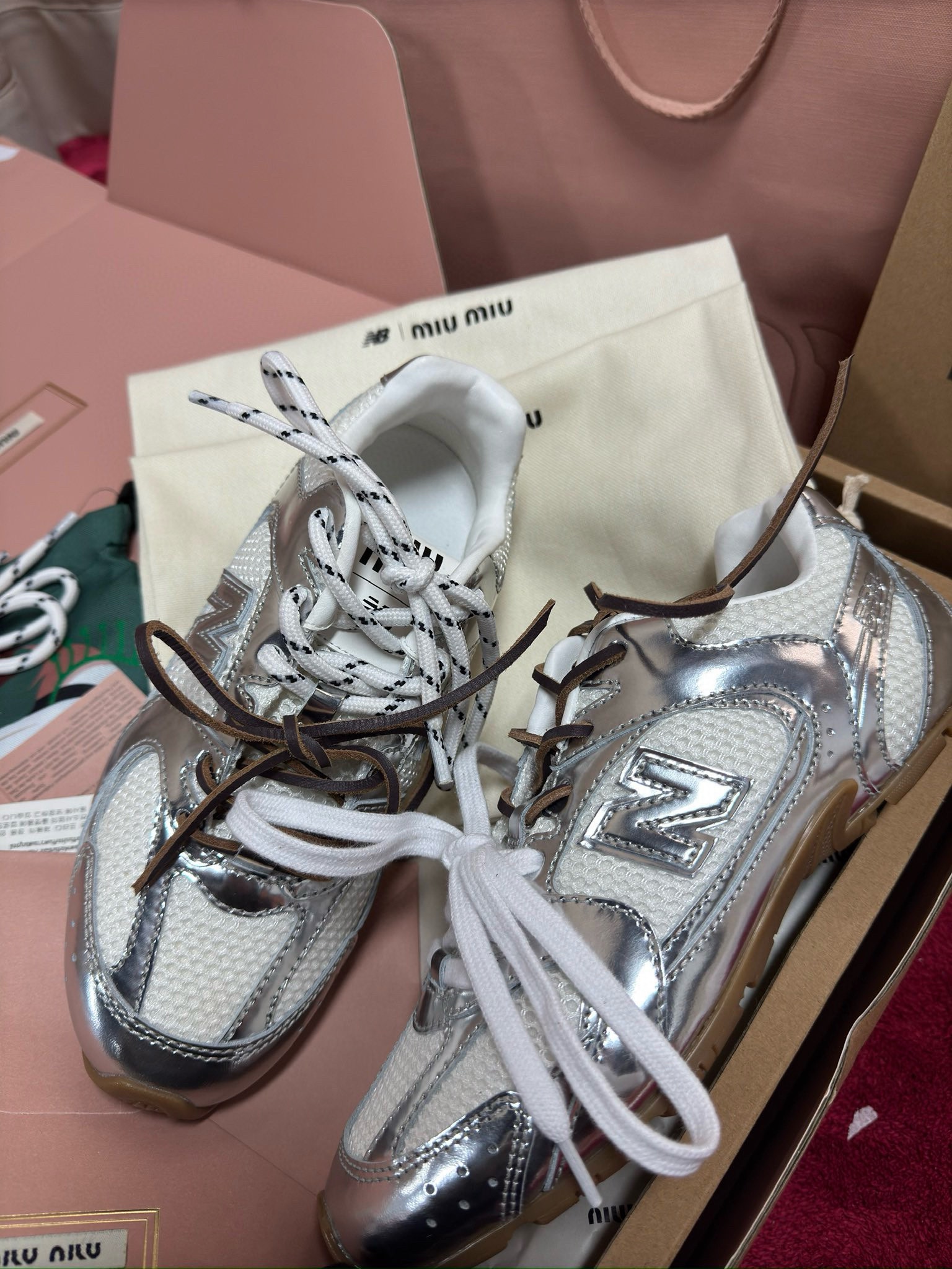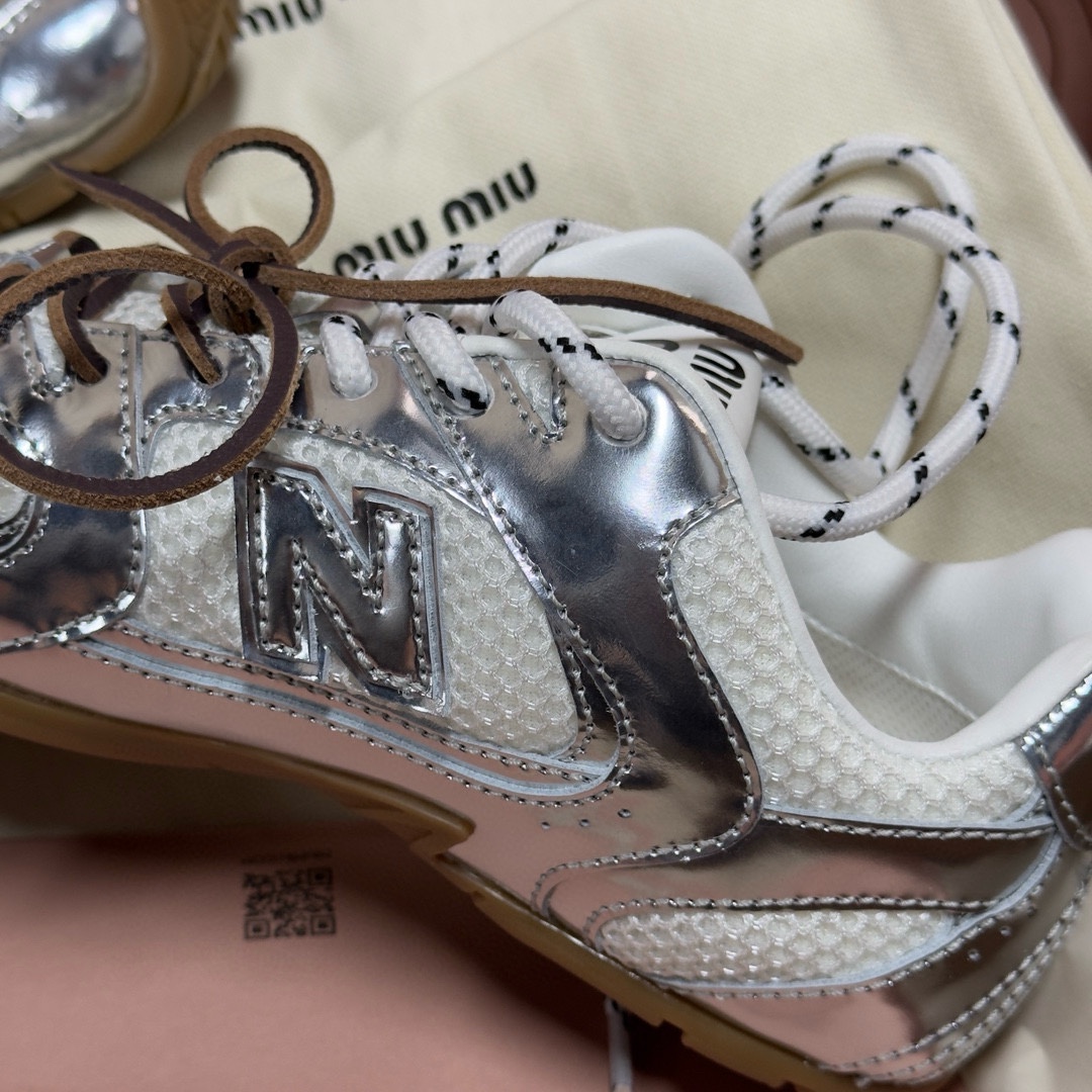 2024秋冬新品 Miu X NB聯名款530SL鏡面銀牛皮運動鞋 時尚與運動的完美結合