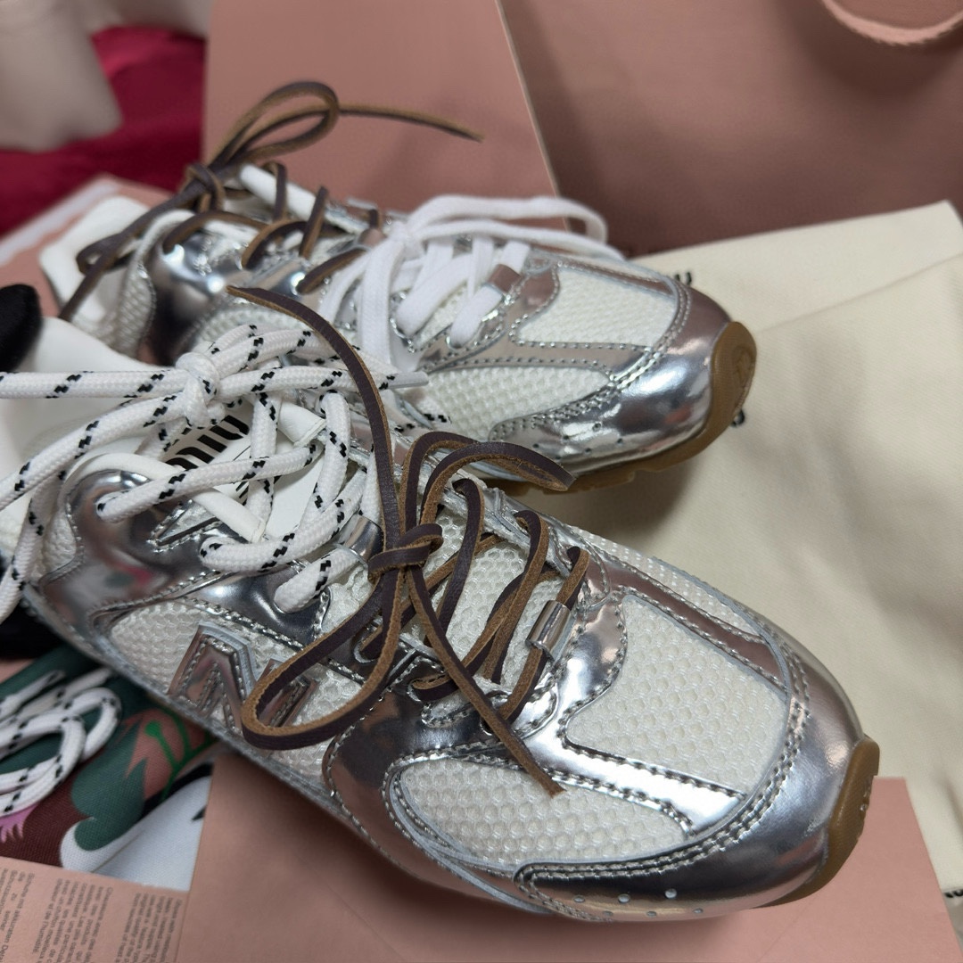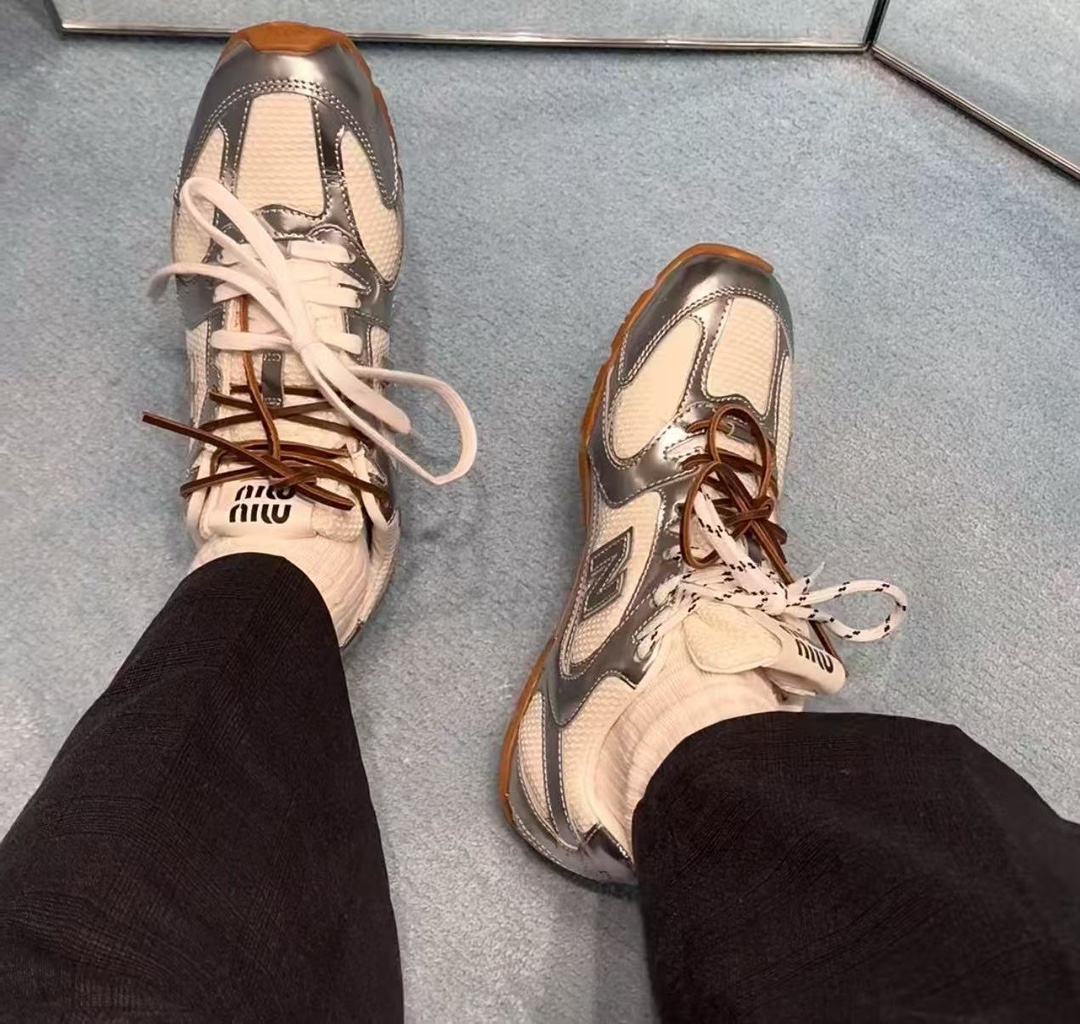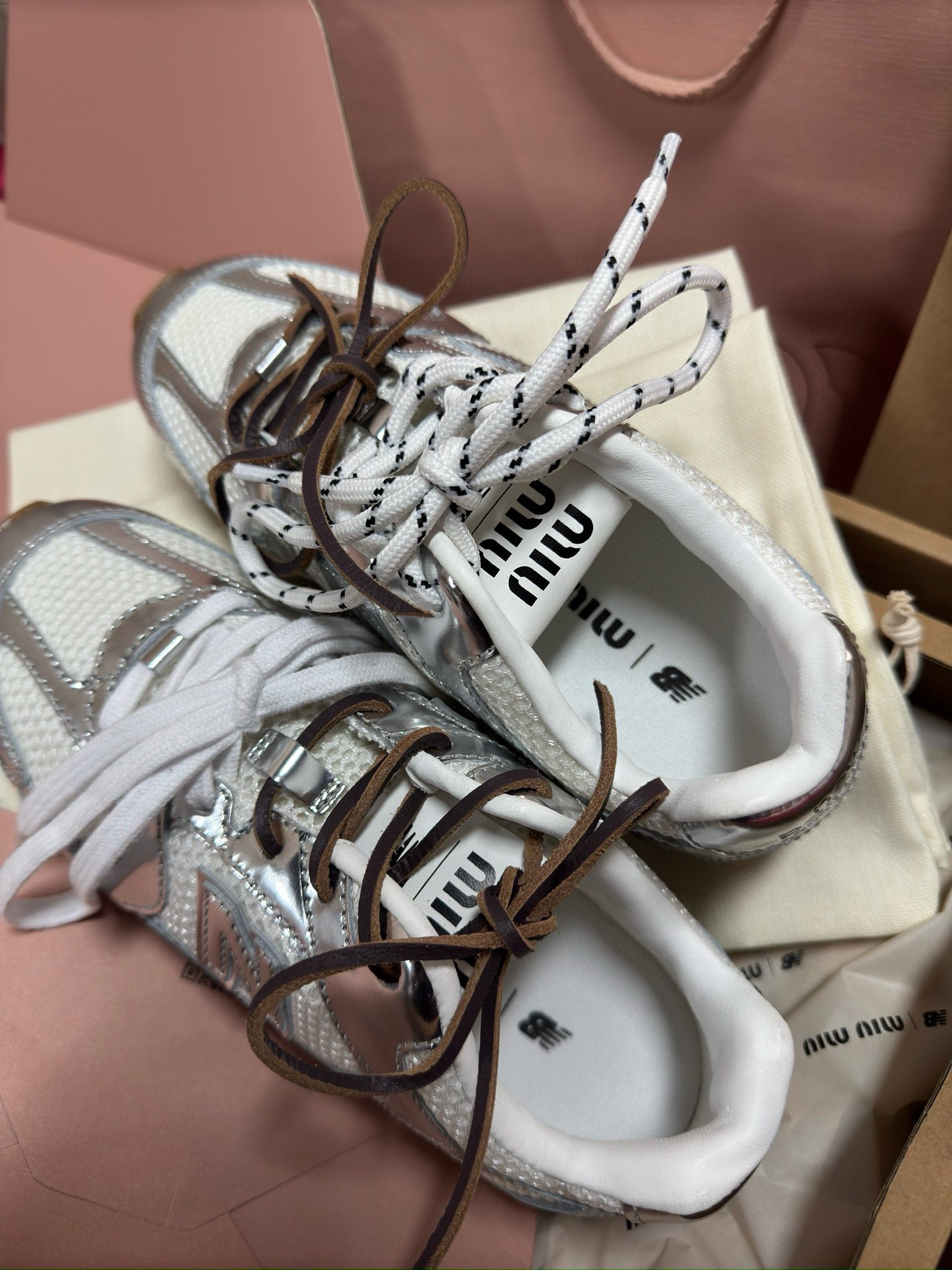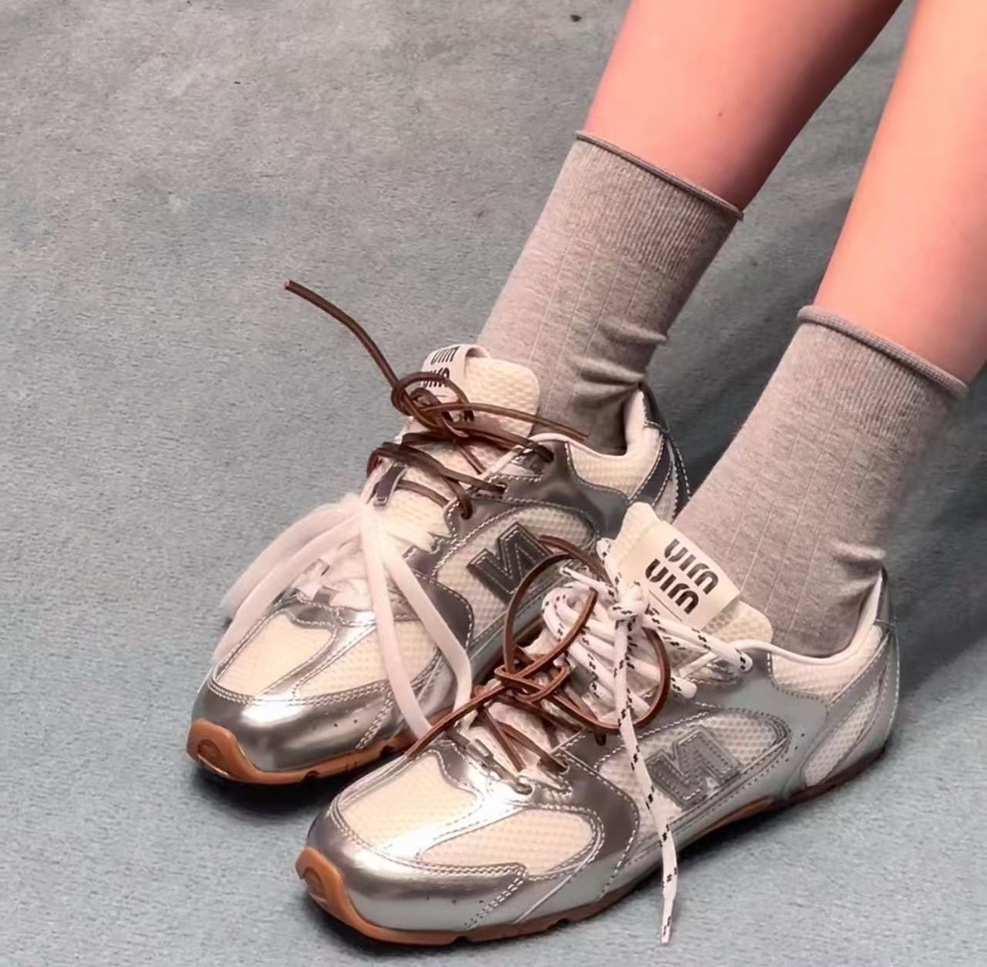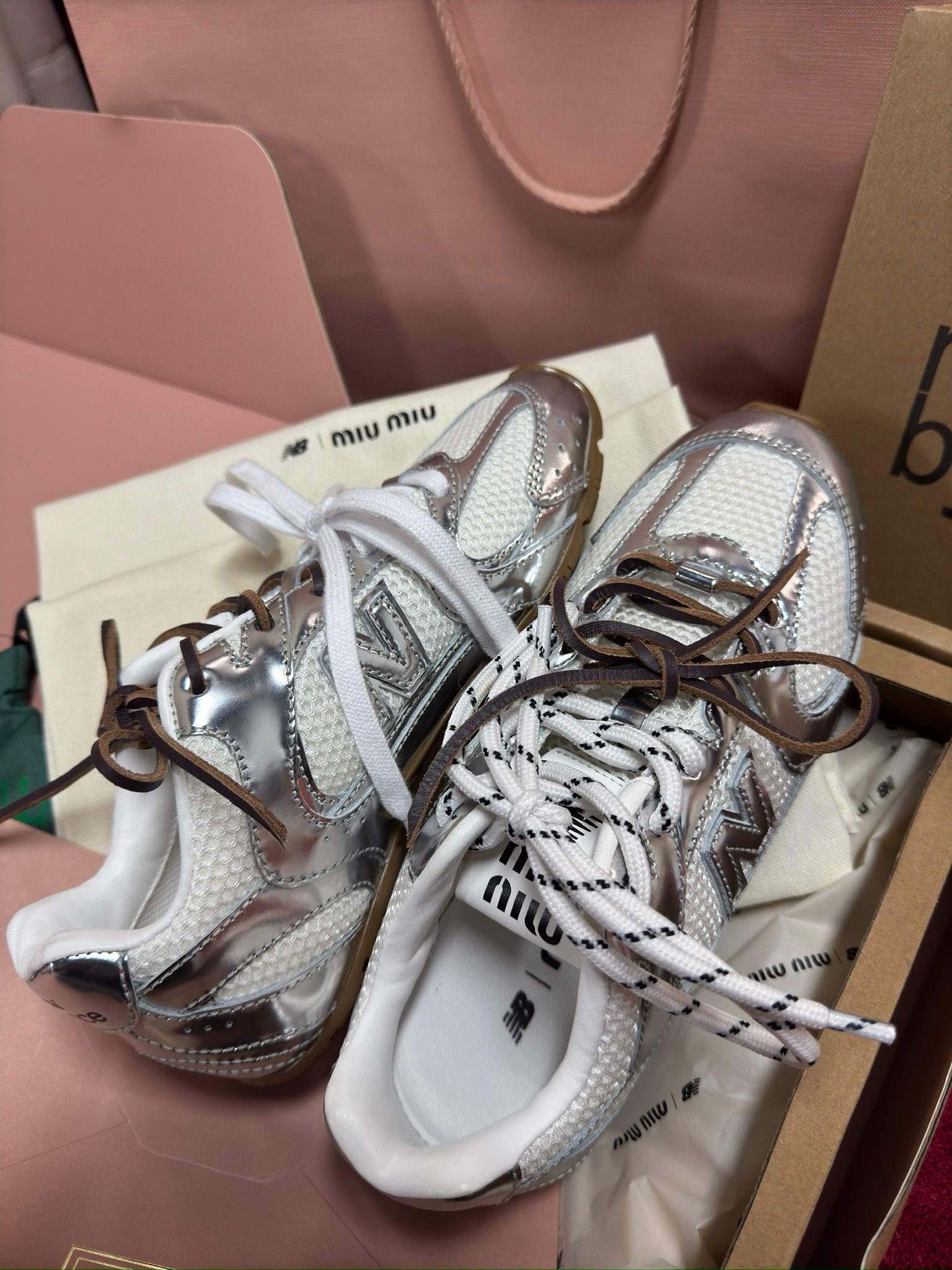 2024秋冬新品 Miu X NB聯名款530SL鏡面銀牛皮運動鞋 時尚與運動的完美結合