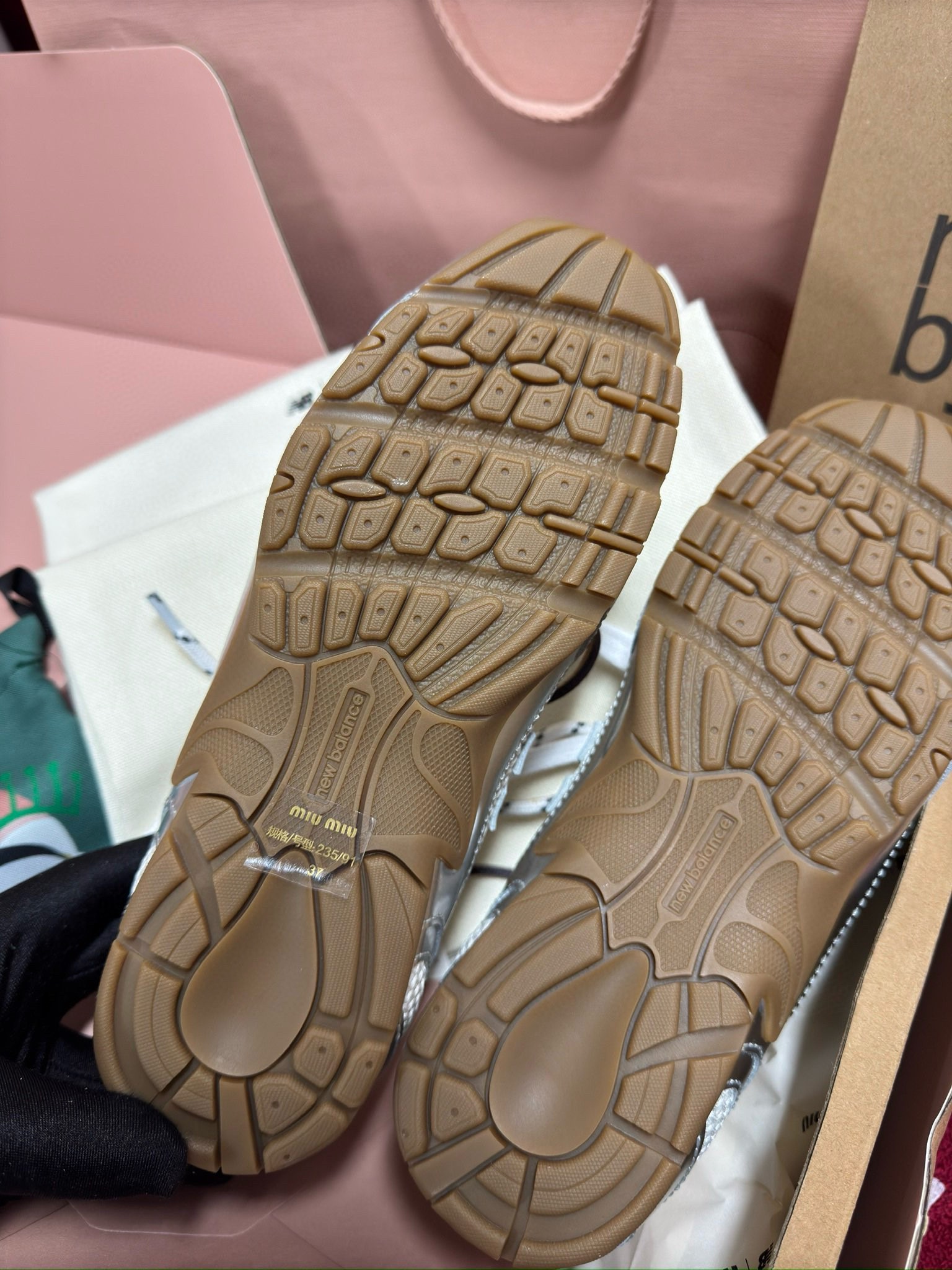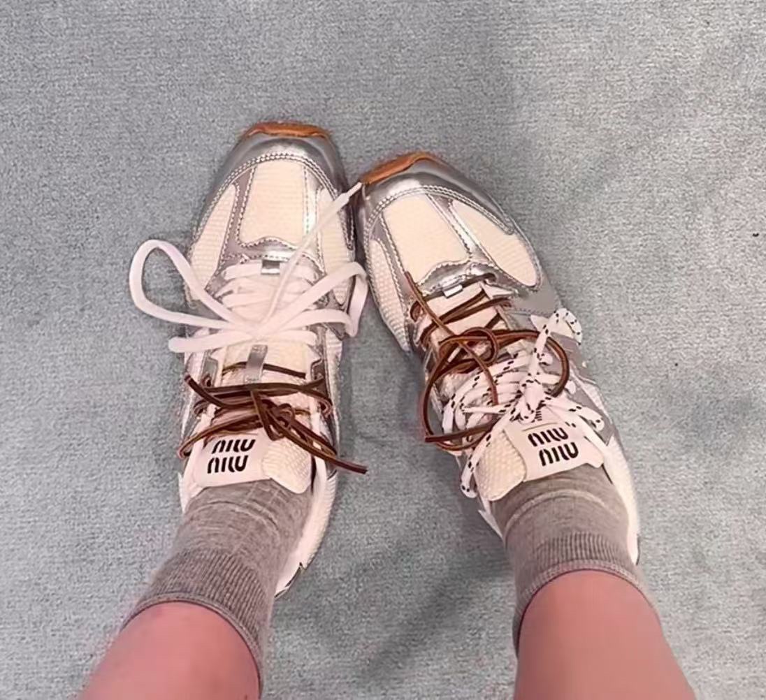 這款由Miu家與New Balance 聯手打造的特別款運動鞋,不僅展現了輕盈質感,還將對比色彩與紋理的設計巧妙融入。