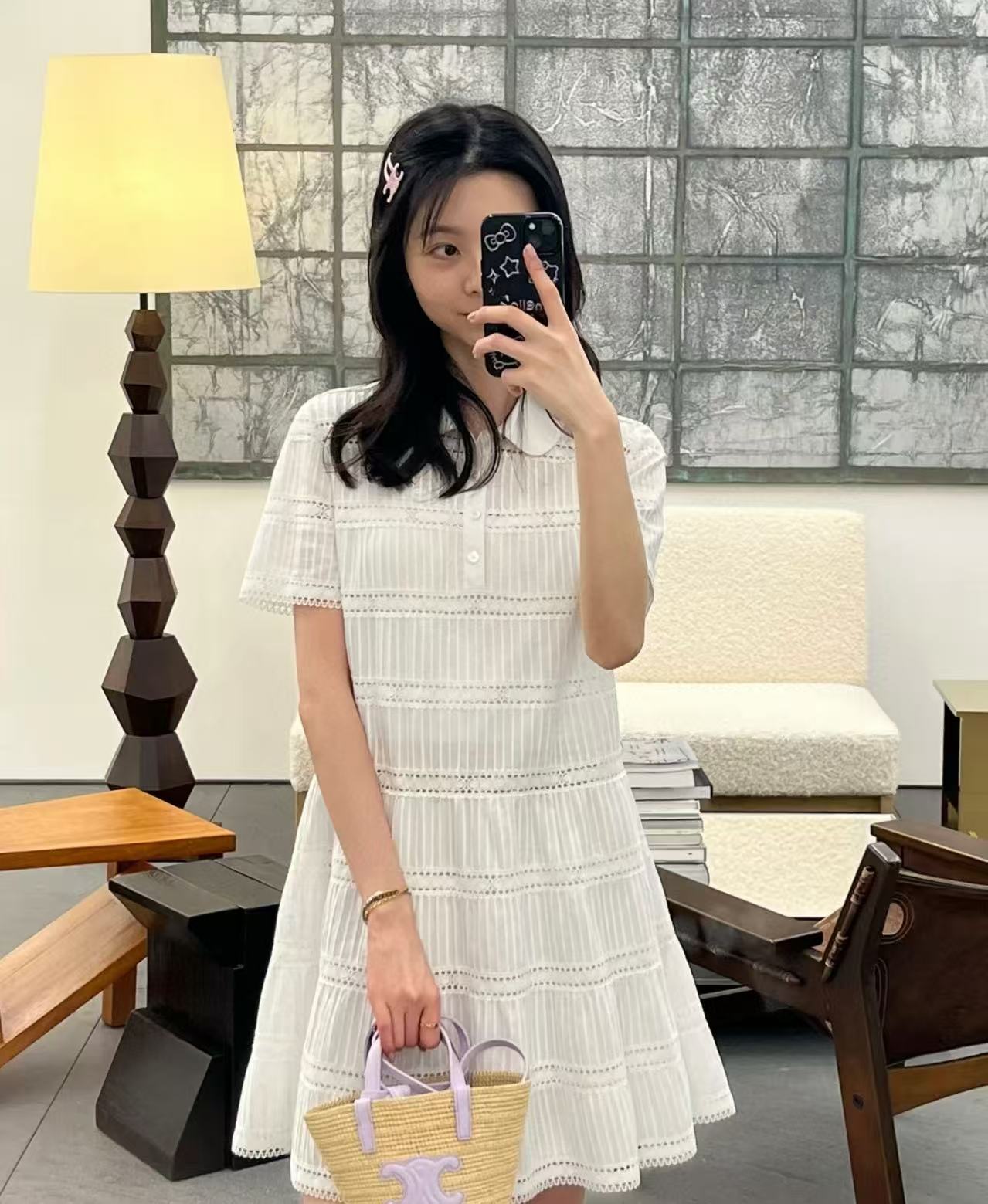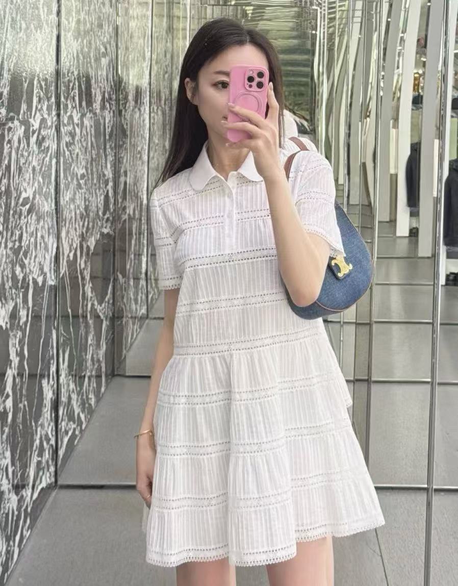 這款連衣裙以獨特的镂空凱旋門圖案設計,融合翻領剪裁與微寬鬆版型,完美展現慵懶高級的老錢風格。少女感十足的減齡設計,兼具時髦與優雅,無論日常出街或輕度假,都能輕鬆打造出低調奢華的造型,絕對是夏日衣櫥的必入單品!