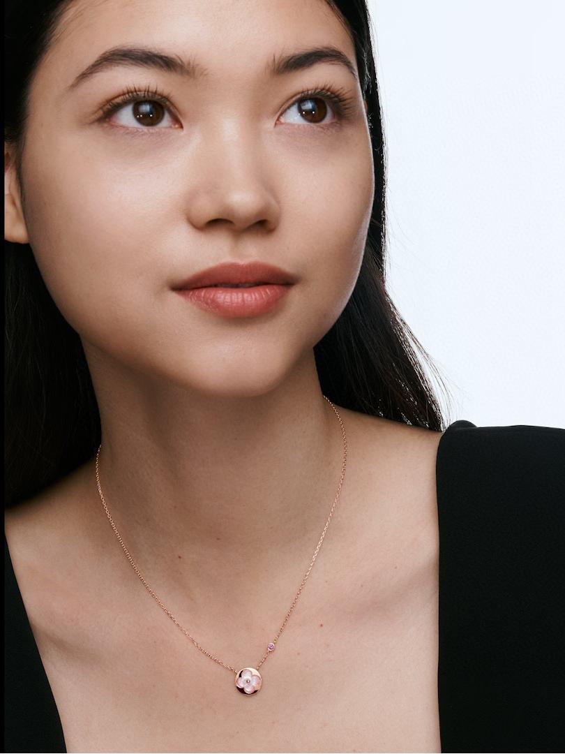 將象徵幸運的四葉草設計融入日常配飾,以天然粉貝與粉色藍寶石組合而成的圓形吊墜,不僅有氣質,更添一份柔和與甜美。
