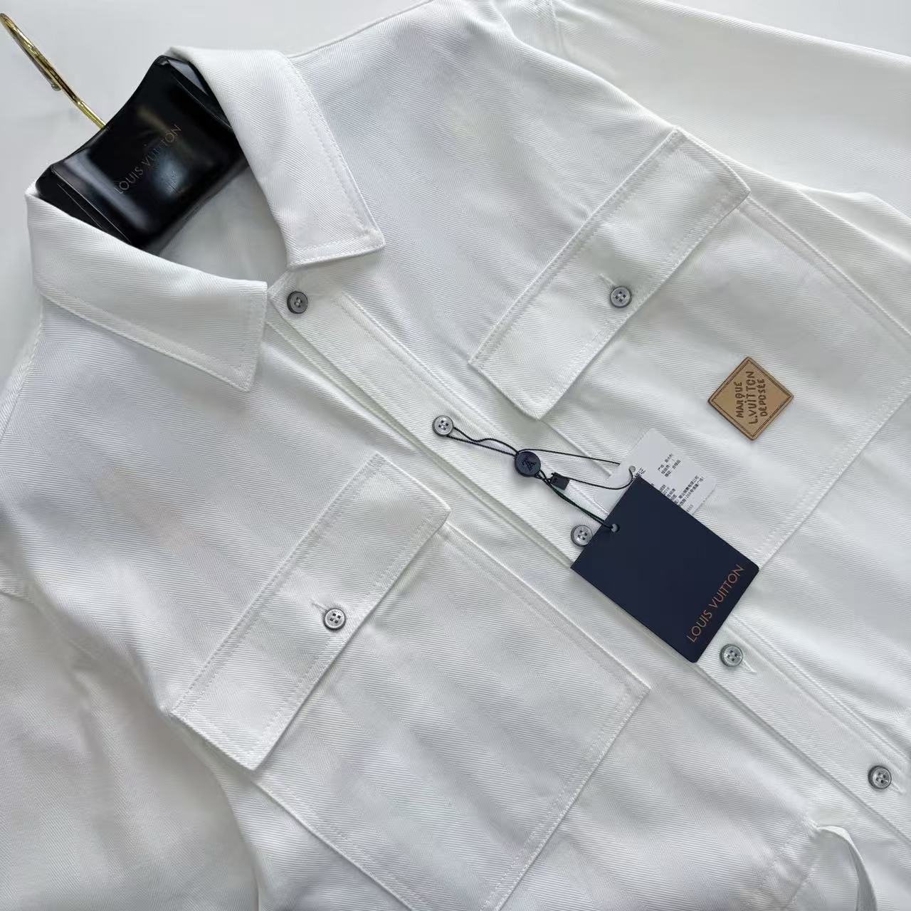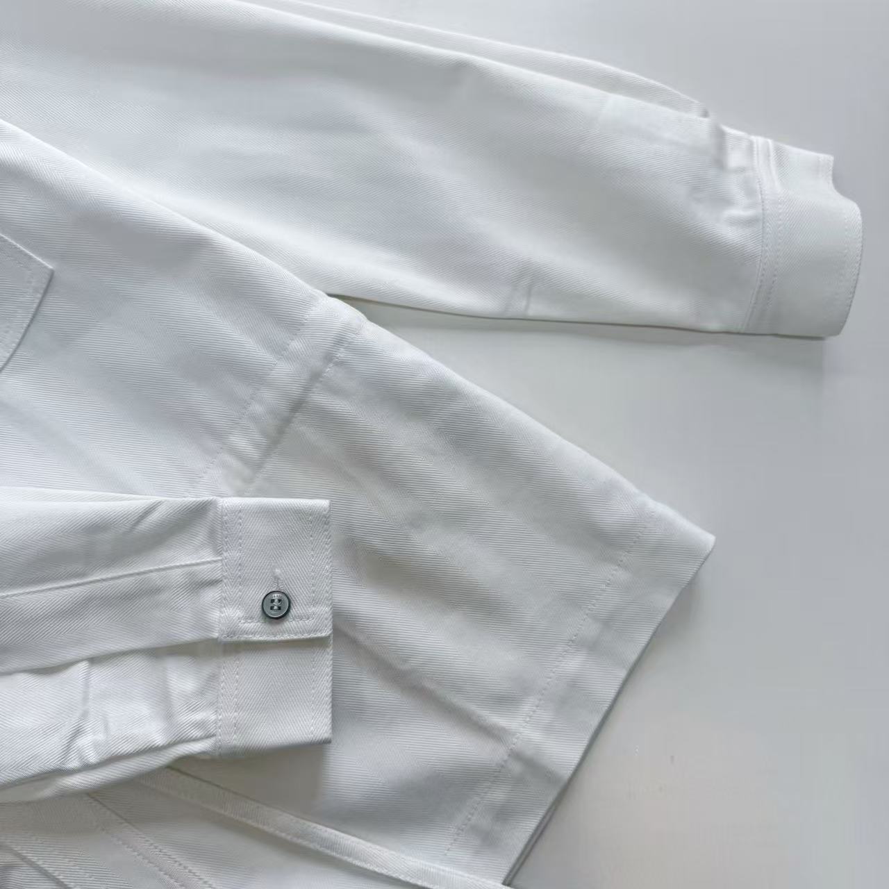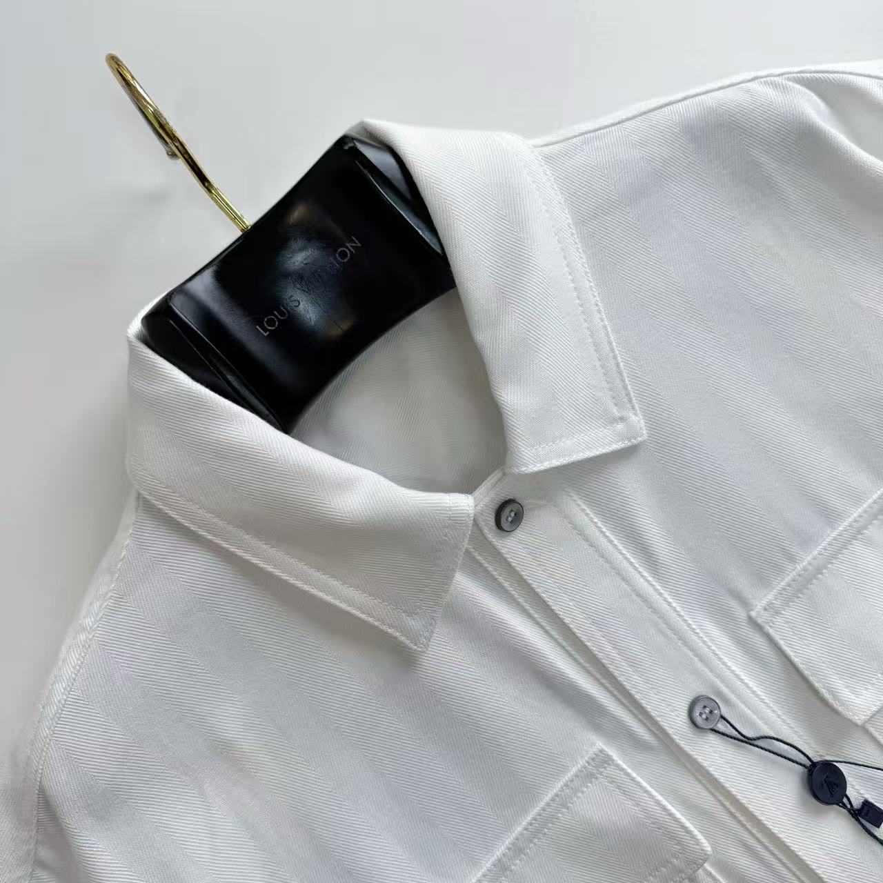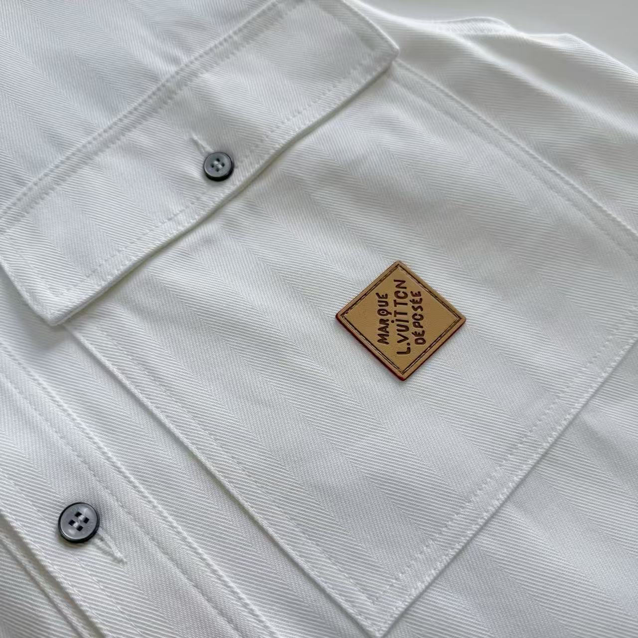 品牌專屬刻字鈕扣: 門襟鈕扣經過精細噴砂與刻字處理,開合感紮實,在開襟穿著時也能點亮視覺焦點。