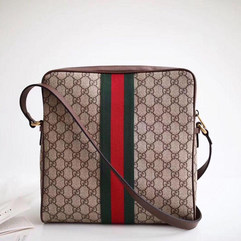 紅綠織帶老花男士斜揹包 經典紅綠織帶搭配老花設計