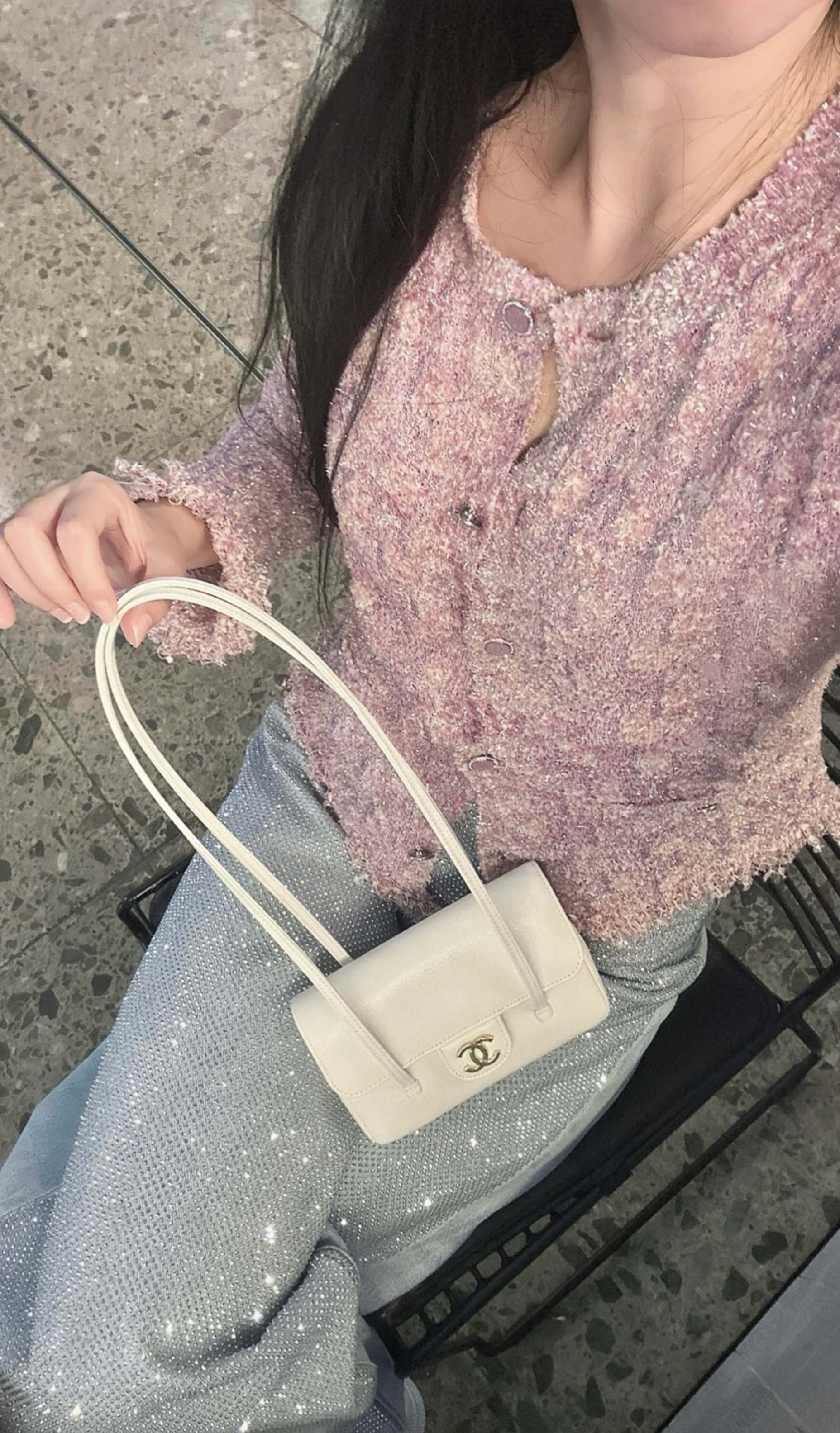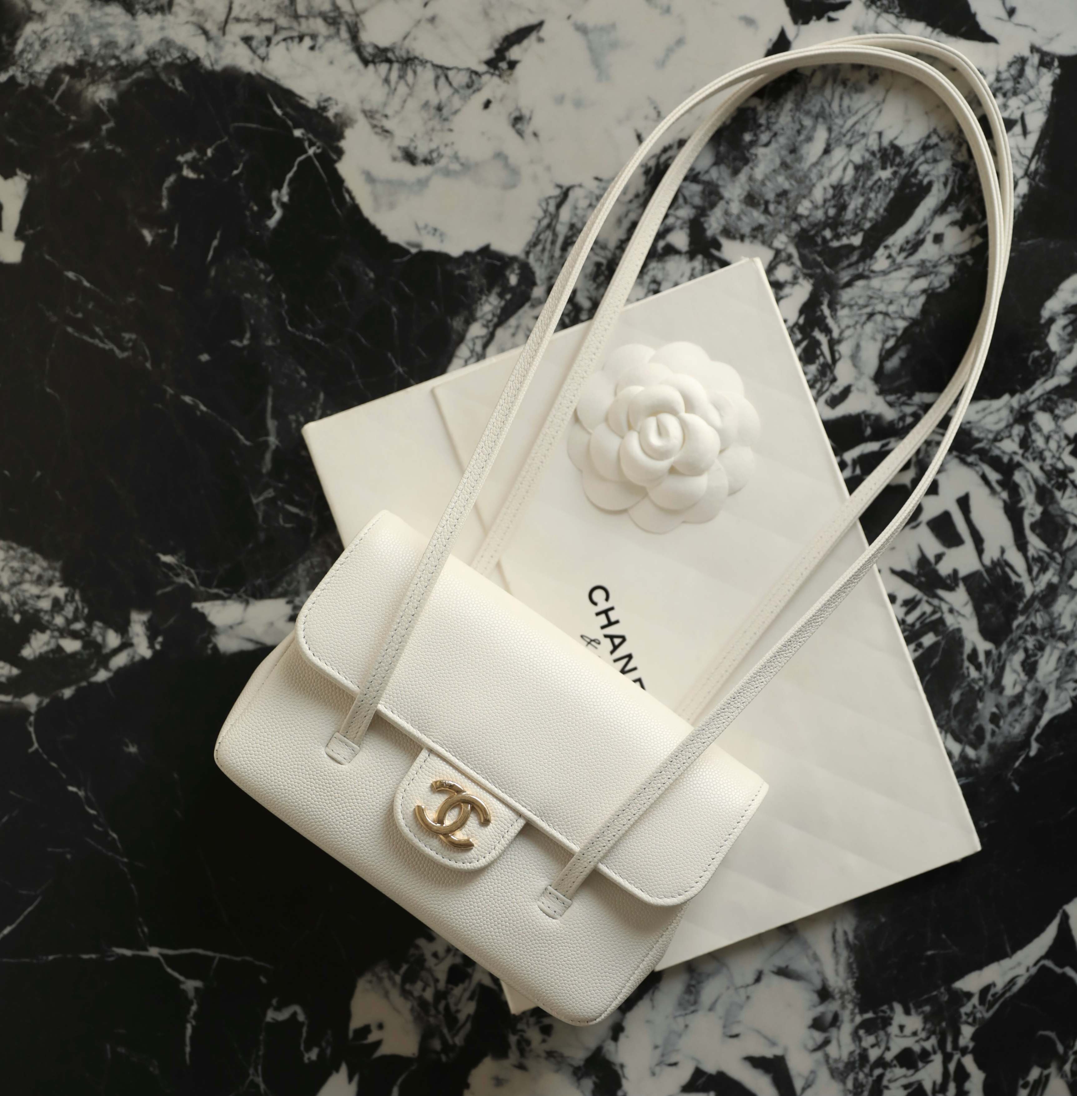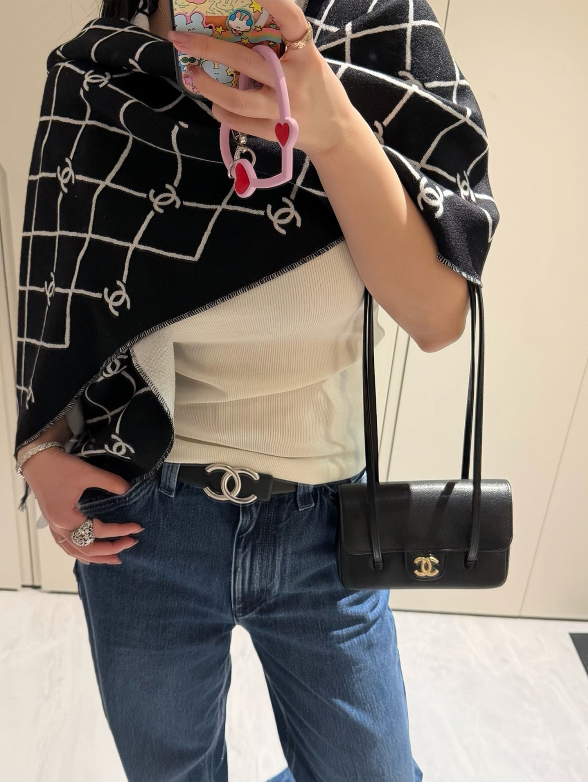 經典的雙 C 金屬標誌點綴在包身上,低調卻極具辨識度,為整體注入一抹剛剛好的奢華感。