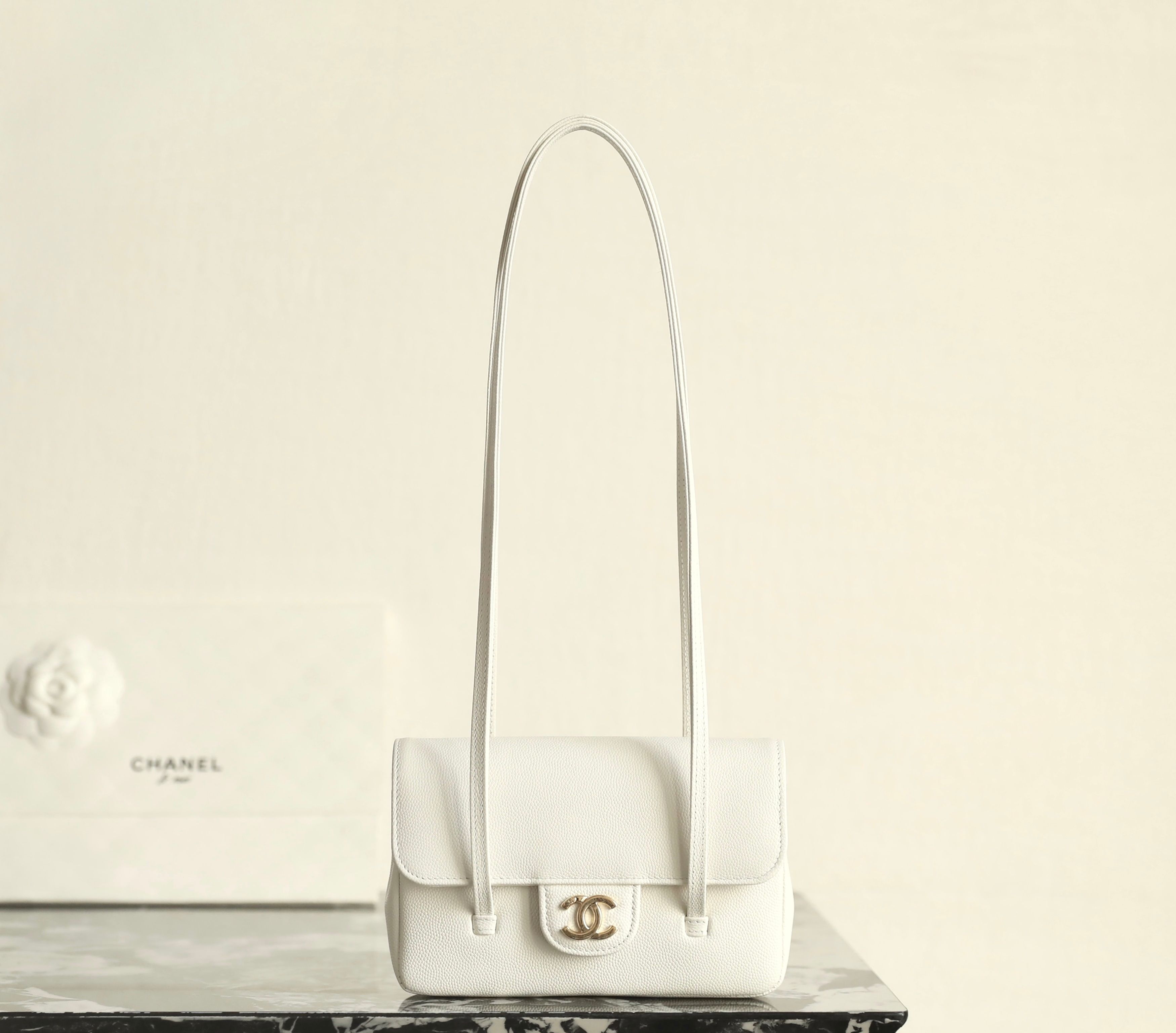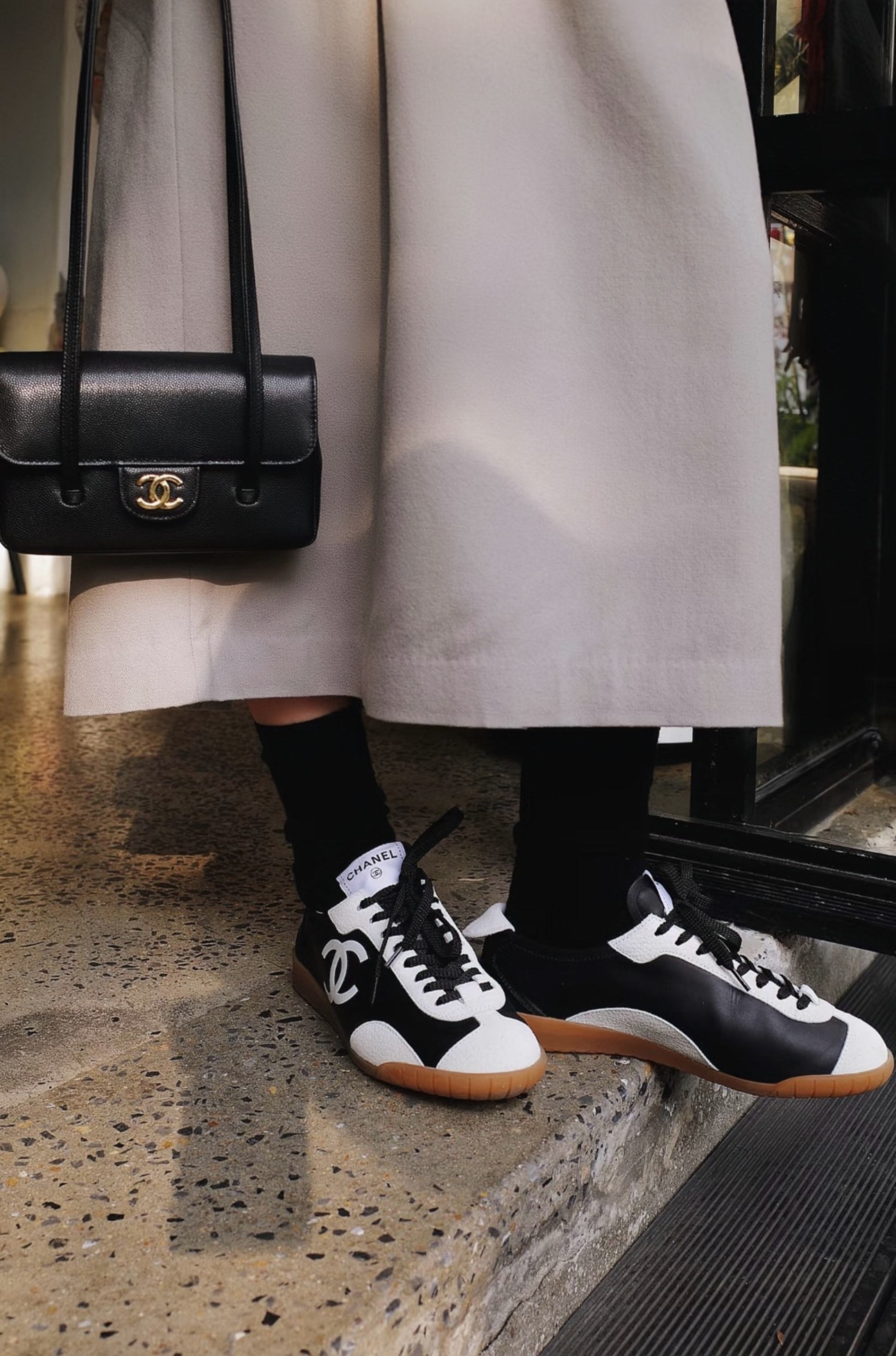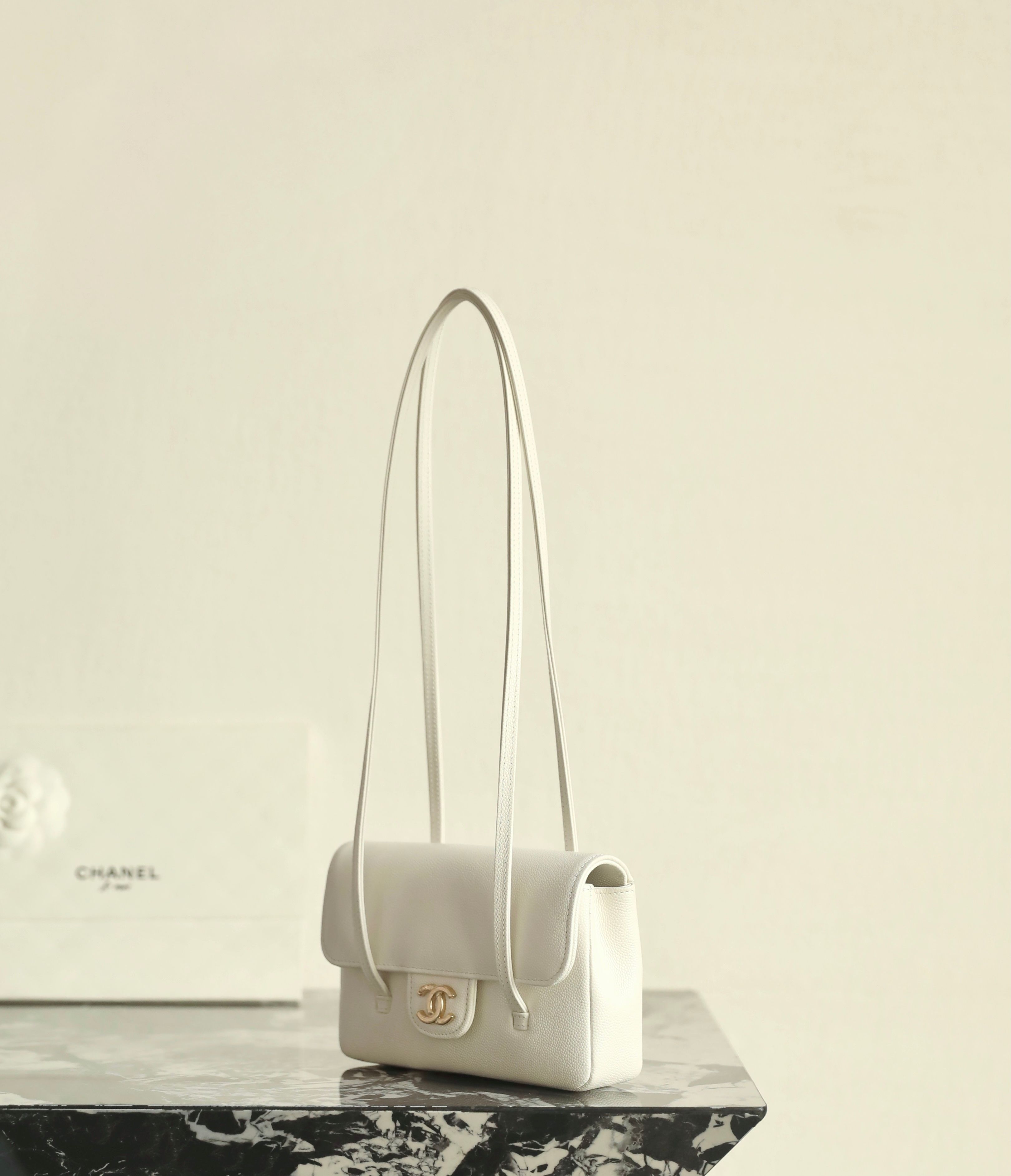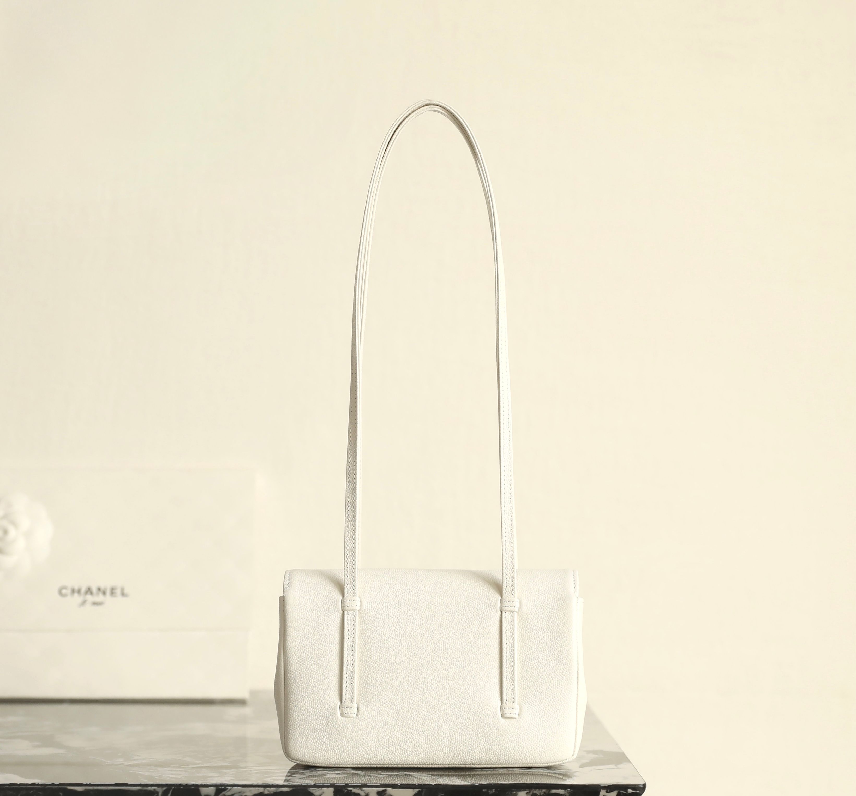 經典的雙 C 金屬標誌點綴在包身上,低調卻極具辨識度,為整體注入一抹剛剛好的奢華感。