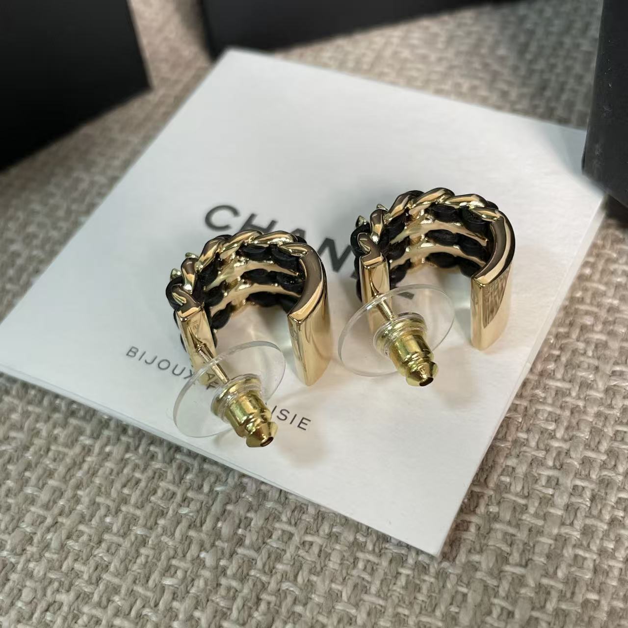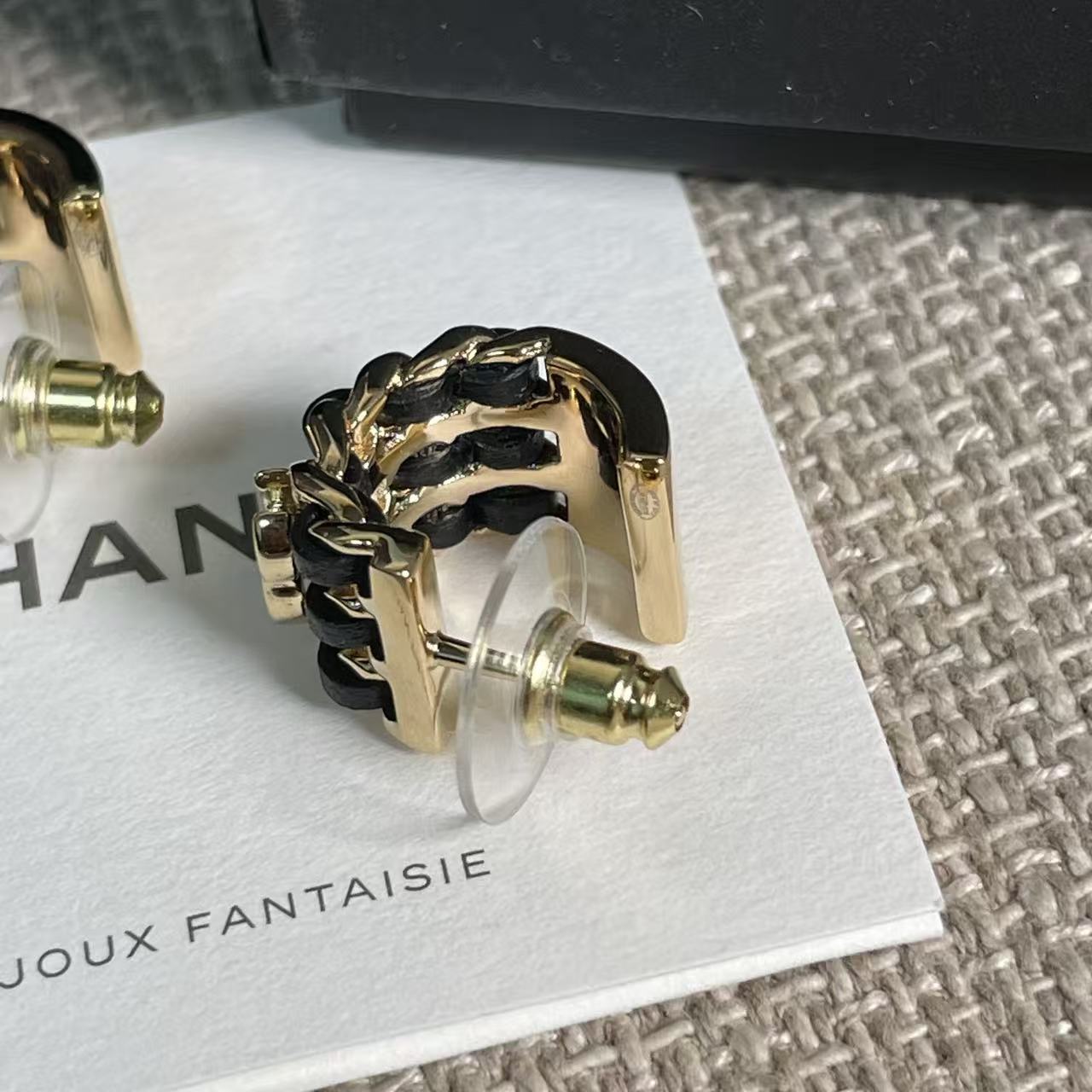 2026春夏新品 C家 三層穿皮鏈小圈耳環