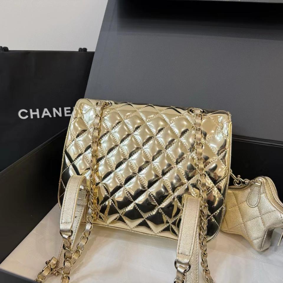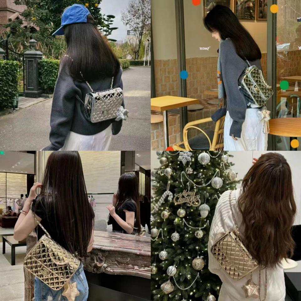 2024早春新品 C家24c金銀鏡面雙肩包 搭配星形零錢包