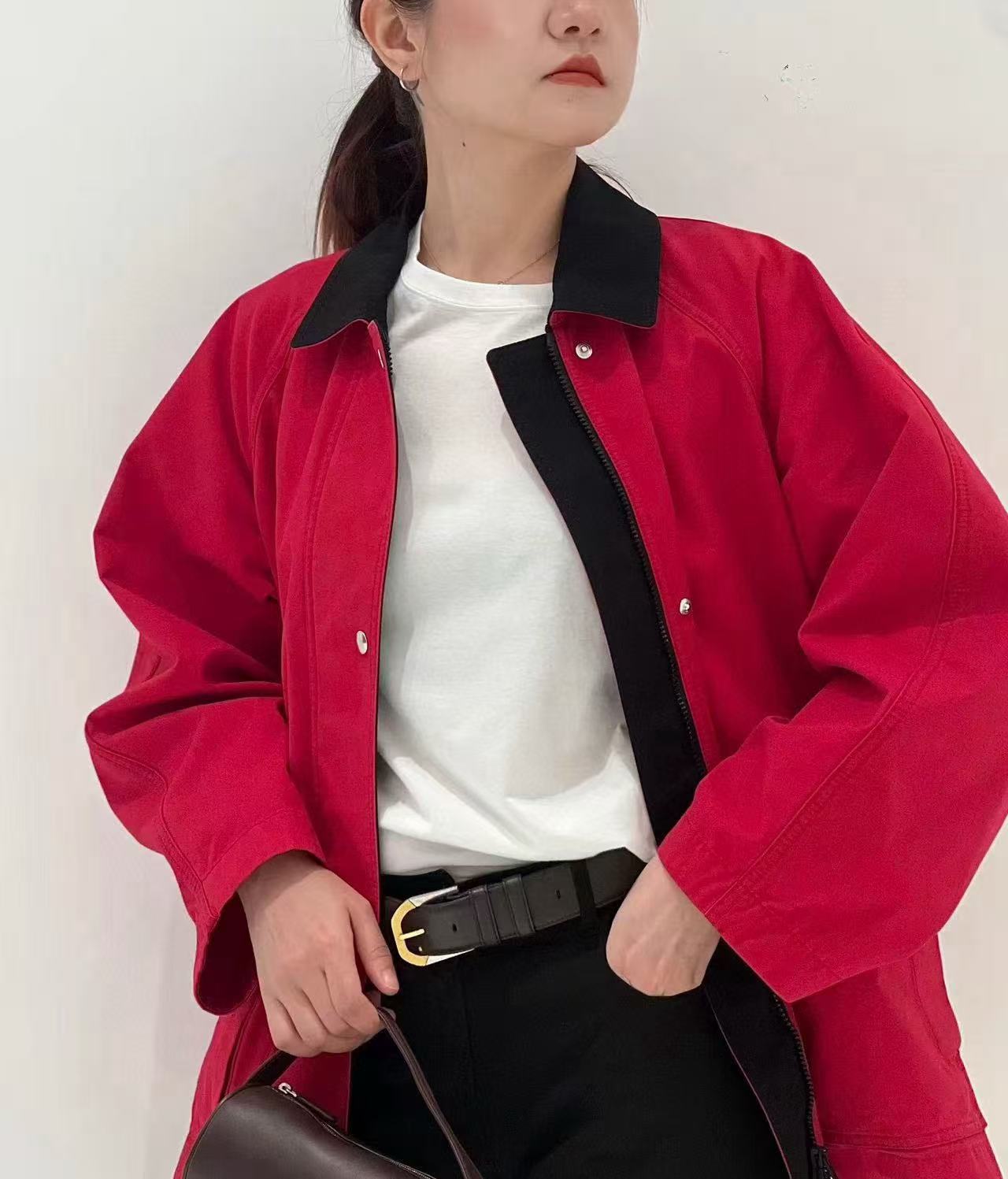 2025早秋 TR家 黑紅配色飛行員工裝夾克,高智感與時髦兼具的百搭單品