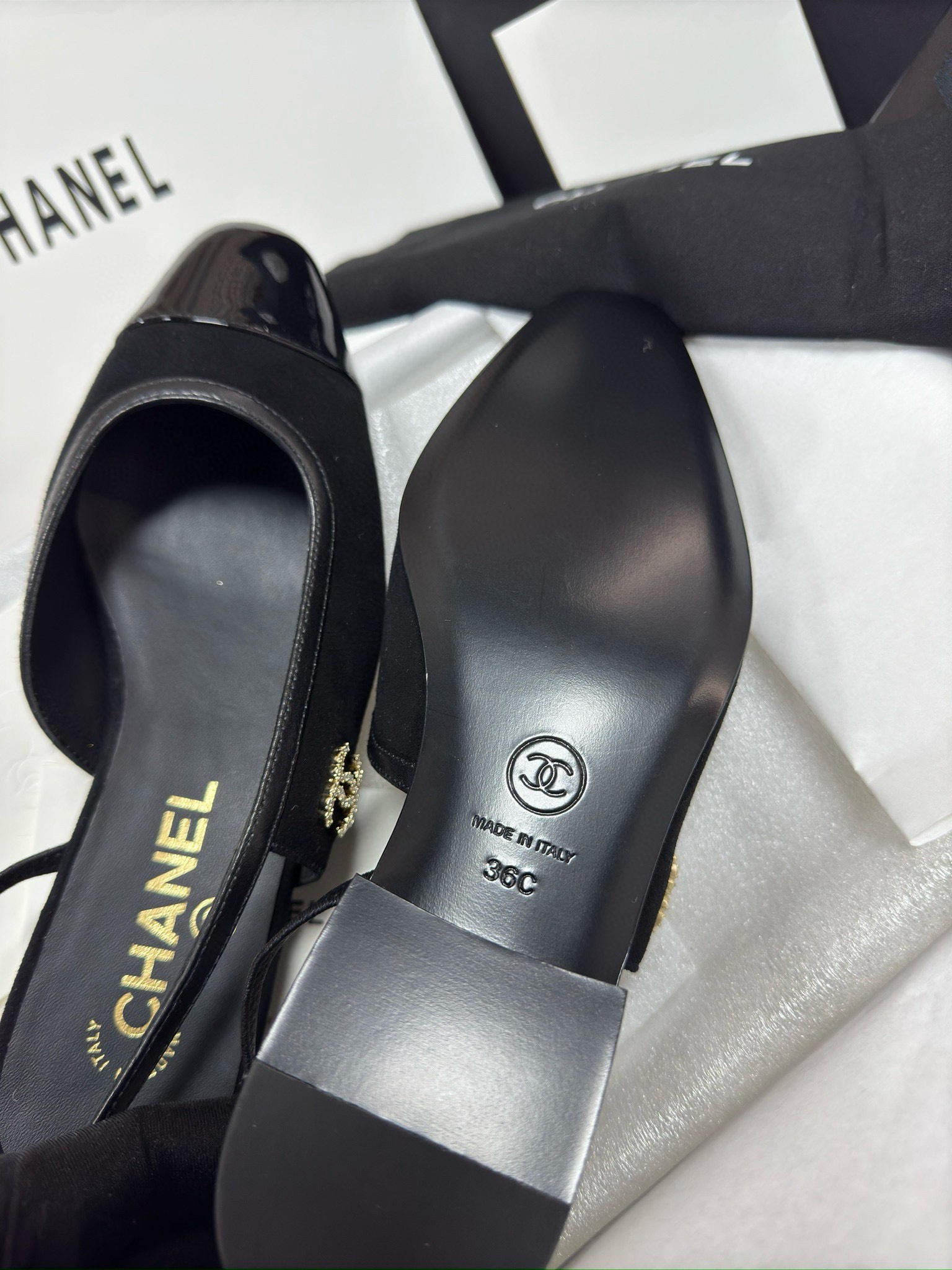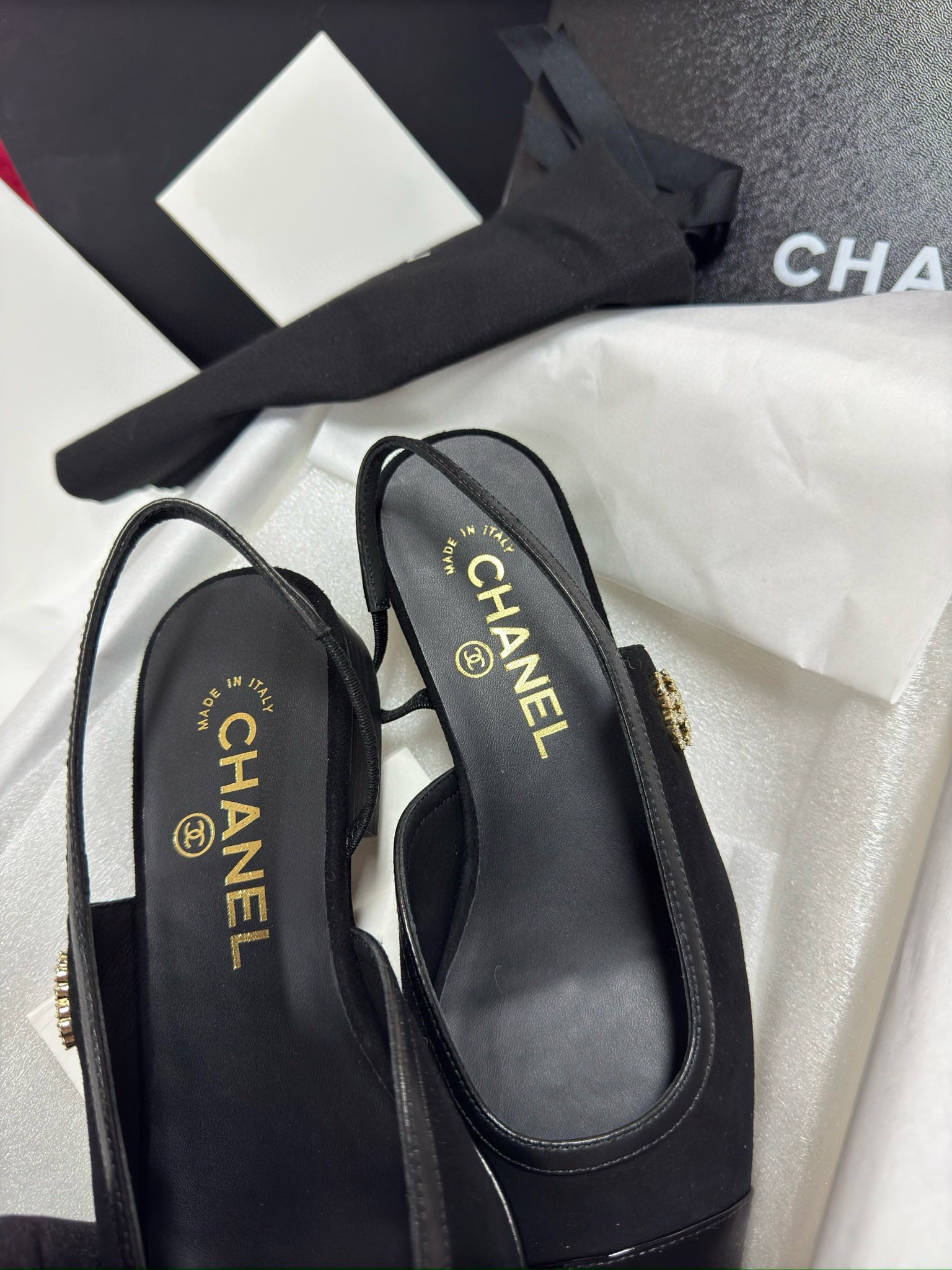2025早春新品 C家25c後空 Slingback 鑽扣涼鞋 經典優雅,舒適百搭